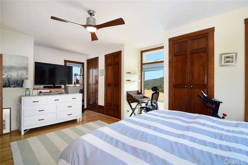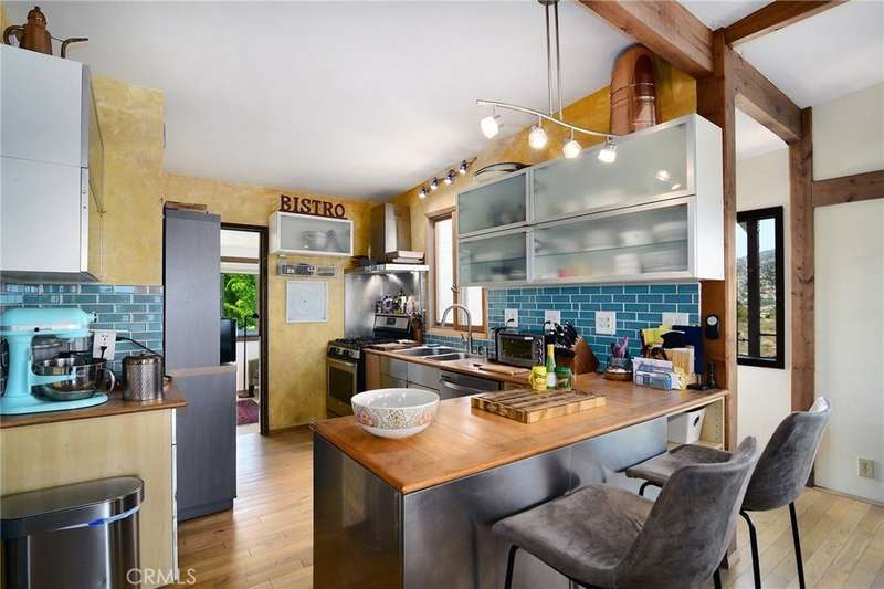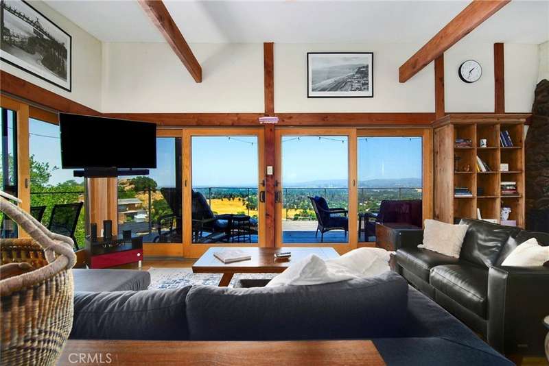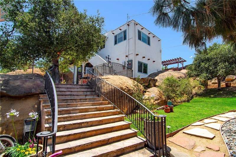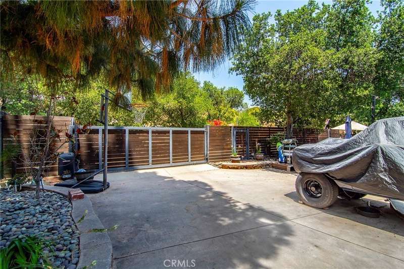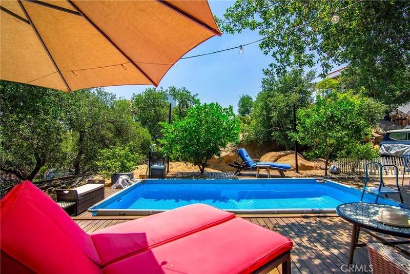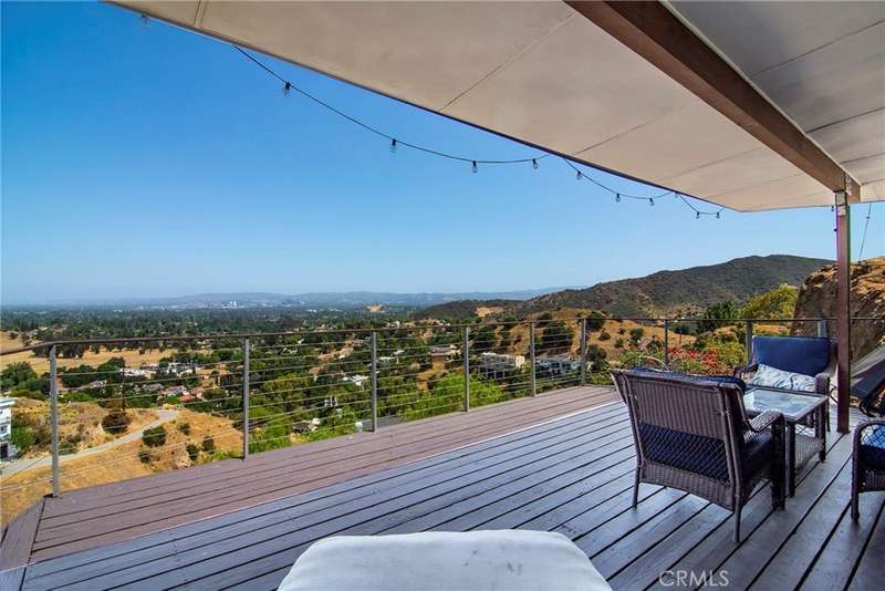 Hollywood Hills charm meets tranquil canyon living in West Hills. This one-of-a-kind Spanish adobe home is perched atop a sandstone ridge, offering unobstructed 360-degree views of the entire San Fernando Valley. Inside, you’ll find 3 bedrooms and 3 full baths across an open-concept floor plan featuring vaulted ceilings with exposed wood beams, creating a warm and airy ambiance. Enjoy seamless indoor-outdoor living with expansive sliding glass doors that open to a wraparound deck, sun deck, and a stylishly integrated above-ground pool with custom wood decking—perfect for relaxing, entertaining, or cooling off beneath the trees. The charming yard and sitting areas offer peaceful spaces to unwind while soaking in canyon and valley views. Modern upgrades include solar panels, a 200-amp electrical panel, landscape lighting, and a dedicated electrical panel by the pool. The property is fully fenced with dense Mangaris wood, and includes two sheds for extra storage, a one-car detached garage with carport, and ample parking. Smart home features include five Ring security cameras, a remote-controlled thermostat, and a WiFi-enabled deadbolt at the front gate, all easily managed from anywhere. Set at the end of a quiet, no-through street, this home offers ultimate privacy, European character, and direct access to incredible hiking trails. Other highlights include a mesh Wi-Fi system indoors and out, majestic oak trees, and the convenience of a main sewer connection (no septic). This rare architectural retreat seamlessly blends character, nature, and modern amenities.