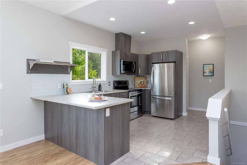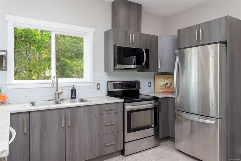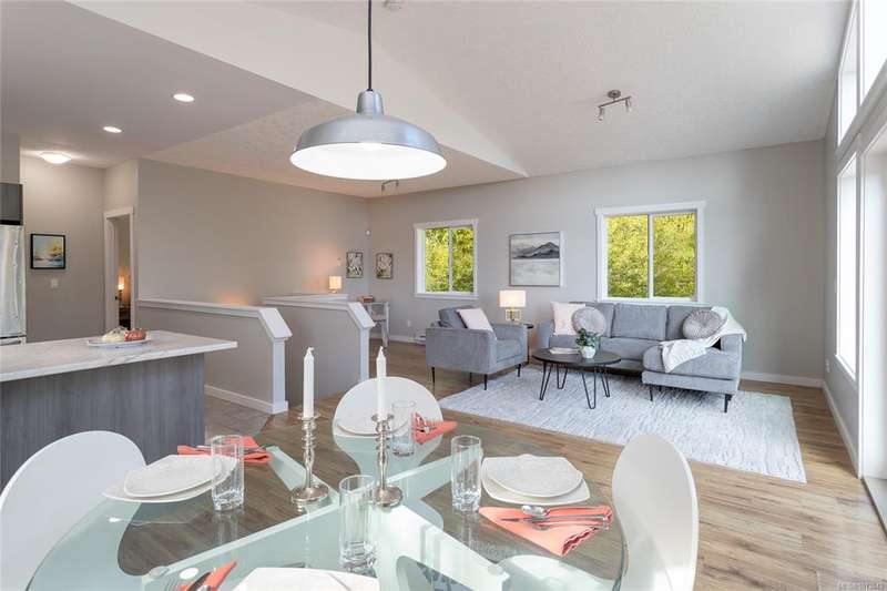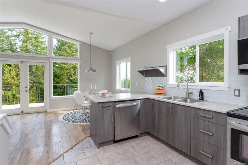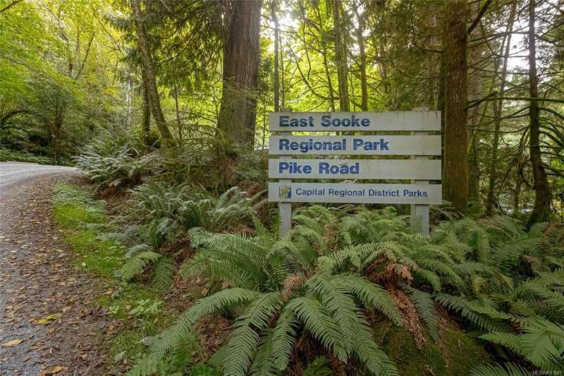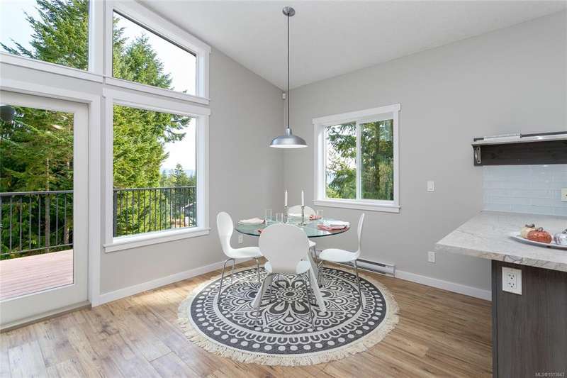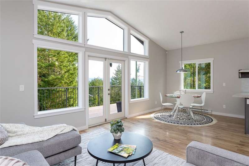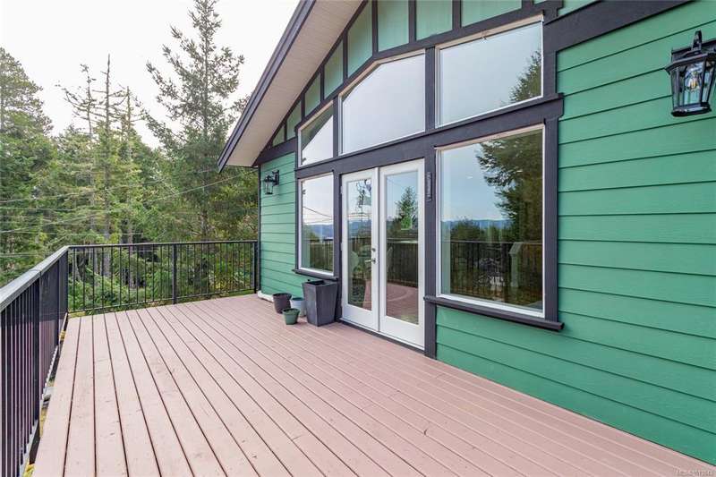 Stylish West Coast living meets modern comfort in this pretty 2014 home perfectly sited on a private 1.1-acre lot. Offering 1,503 sq ft, this 3 bed/2 bath home is illuminated by floor-to-peak windows & 11’ vaulted ceilings that showcase lush forest backdrops & year-round ocean views. 2025 updates include: new kitchen & bathroom countertops; freshly painted interior & new carpetStep outside onto the expansive 239-sq-ft deck to savor ocean vistas over morning coffee or sunset gatherings. Below, a sprawling lawn and fire-pit zone beckon summer play and al fresco soirées. Nature lovers will appreciate nearby East Sooke Park trails, Matheson Lake, Alyard Farm & Beach, Sooke Potholes, and Seaparc Rec Centre.With rich architectural details & unrivaled privacy, this move-in-ready home delivers exceptional value. Experience the perfect balance of style, comfort, and coastal serenity in East Sooke.