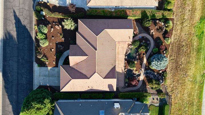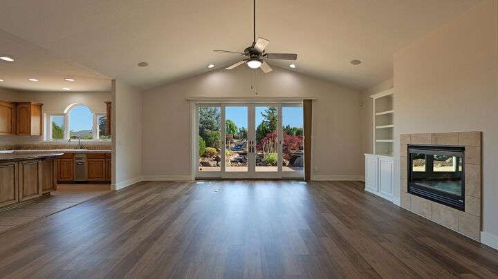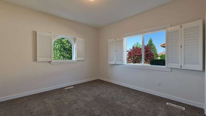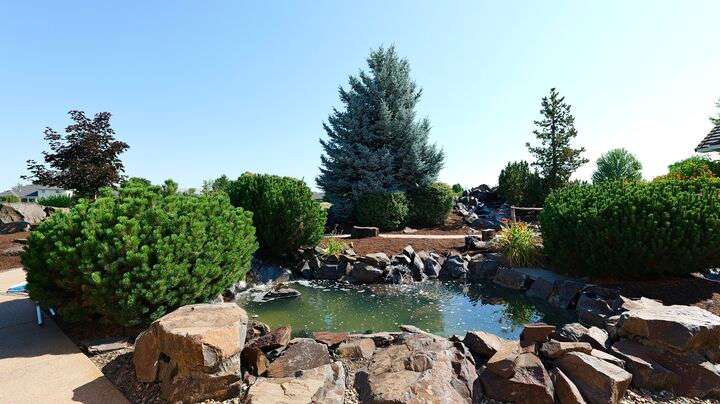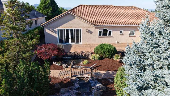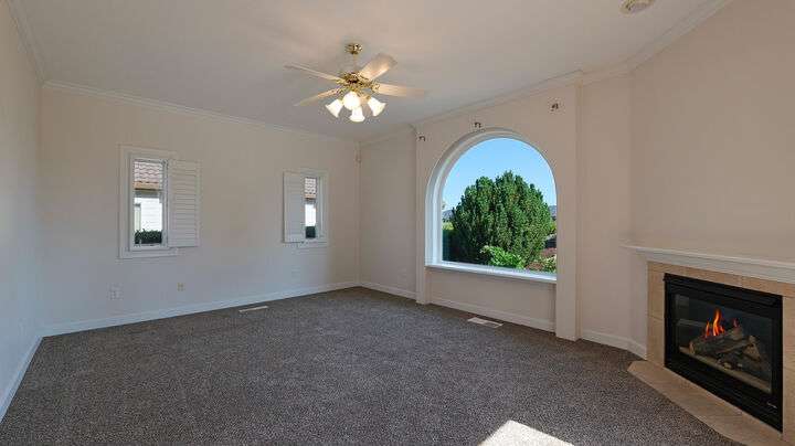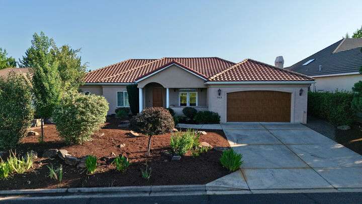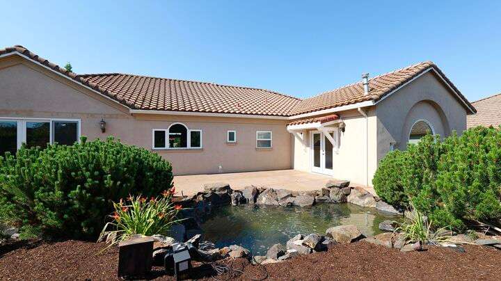 Exceptional location in the Eagle Point Golf Course Community with views of the 1st and 2nd fairways from the front and the 4th fairway from the back patio. This elegant single-level 4 bed, 3.5 bath, 2,522 sq. ft. home on a beautifully landscaped 0.25-acre lot features 9-ft and vaulted ceilings, a spacious living room with gas fireplace, and a well-appointed kitchen with granite countertops, abundant cabinetry, breakfast bar, tile floors, and formal dining room. The luxurious primary suite offers its own fireplace, walk-in closet, and French doors to a backyard oasis with a stunning water feature. Additional highlights include constant hot water and central vacuum.