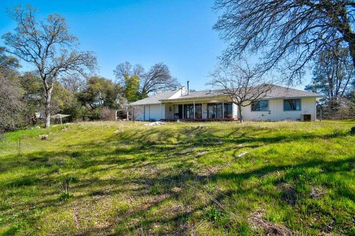 Privacy just comes with having acreage. And this idyllic ranch has plenty of both. Located on 10 rolling acres in Oroville, this property offers up unsurpassed views off the back deck perfect for starting the day with a cup of coffee and ending the night with a beer. Neighbors here relish their privacy and most folks keep to themselves. There will be no knocking on your door for a cup of sugar. The road to the home is windy and unpaved in areas which also leads to a quiet life and zero traffic. The house is single story and offers an open floor plan as well as three bedrooms and two full baths. Livestock is welcome here with Potato the Pig greeting you as you pull up the long drive. And, yes, this gigantic swine can convey with the property. There's also a fully stocked Koi pond, pasture, barn, chicken coops, seasonal creek, fenced and cross fenced, garden beds, fruit orchard, separate workshop/gym and 2-car garage. This home is ideal for those wanting to spread out, recharge and enjoy no restrictions on how they want to live (no HOA here!).