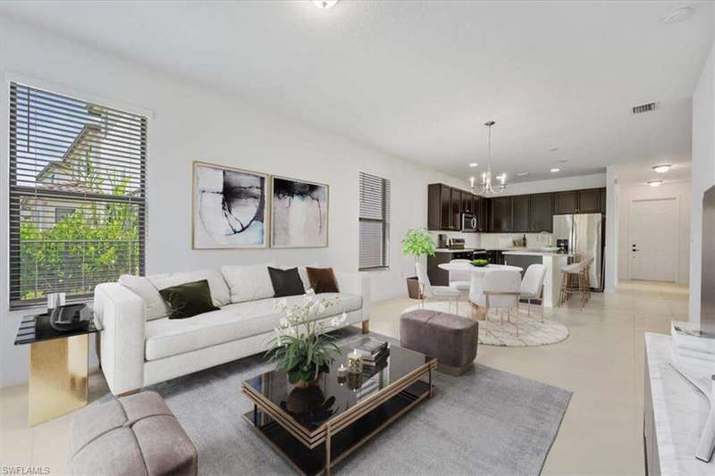 Welcome to this beautifully maintained one-story Fernwood model featuring 2 bedrooms + Den and a 1-car garage, perfect for comfortable living in the heart of Ave Maria. The stylish kitchen boasts 42" high-quality cabinets, stainless steel appliances, granite countertops, a backsplash, and a pre-wired island ready for your personal pendant lighting touch. The spacious primary suite includes a walk-in closet and en-suite bathroom with frameless glass shower, granite dual-sink vanity, and floor-to-ceiling wall tile in the shower. Tile flooring flows through the living areas and primary bedroom, and window treatments are installed throughout the home. Enjoy peace of mind with NO flood insurance required (Flood Zone X). Living in Maple Ridge at Ave Maria means access to top-tier amenities: Clubhouse with family entertainment, walking/jogging trails, tennis, pickleball, bocce courts, dog park, water park, soccer field, playgrounds, fitness center & more! Don't miss your chance to live in this award-winning master-planned community. Schedule your showing today!