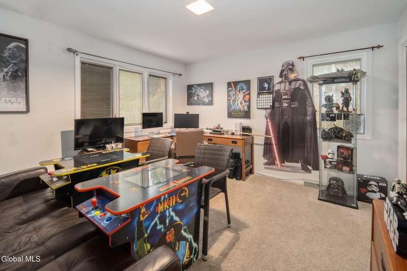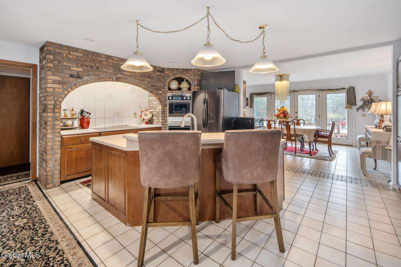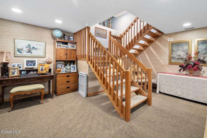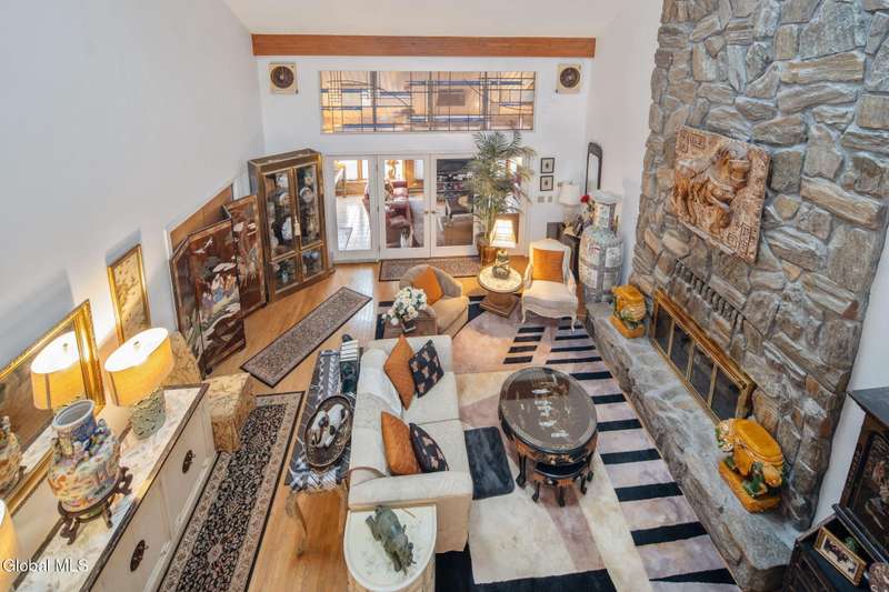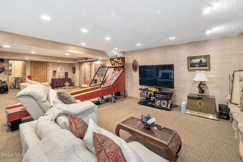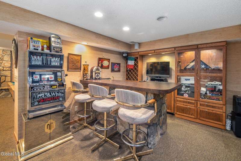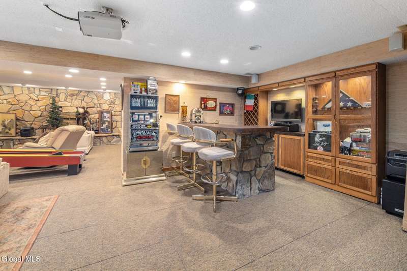 Experience the Perfect blend of luxury, comfort, & privacy in this stunning contemporary estate set on 28.17 acres. This spacious 4,333 sq. ft home features 5 BR, 4 1/2 baths, including a main-level primary suite w/generous closets, & beautifully appointed bathroom. The open Kitchen is ideal for entertaining. The great room with an entertainment center, wet bar, & pool table- perfect for gatherings and relaxation. Step outside through French doors to enjoy the inviting inground saltwater pool. Car Enthusiasts and hobbyist will appreciate both the attached 3 car garage, & 3 car detached garage that holds 6 cars, while the greenhouse offers exciting potential for gardening. Energy efficiency is a highlight, with OWNED Solar panels and a propane tank providing independence and savings. (Attached garage solar are rented) Recent updates include blue stone front retaining wall, newer sidewalks, foundational work, fresh exterior paint (2023), a newer awning, 2 new garage doors (attached) and accessible ramp to the front entrance. This Property is a rare opportunity for those seeking unique amenities, expansive grounds, private retreat.