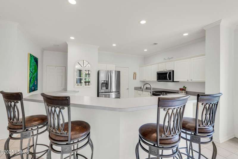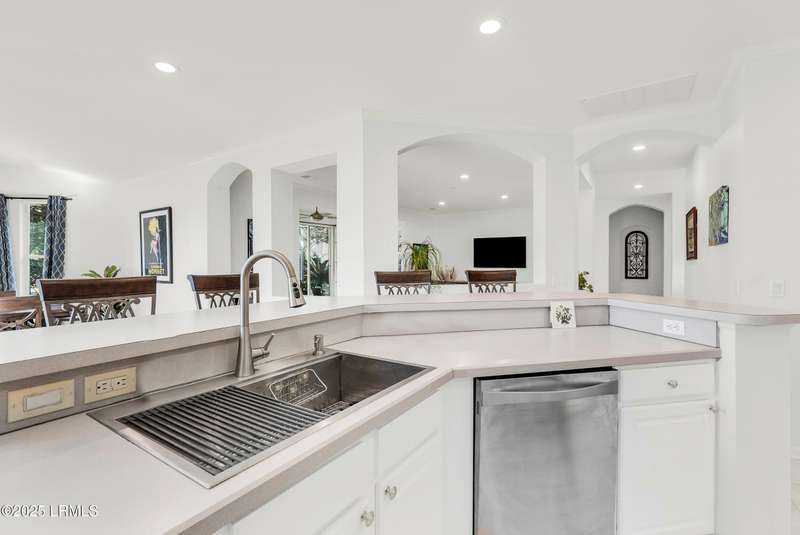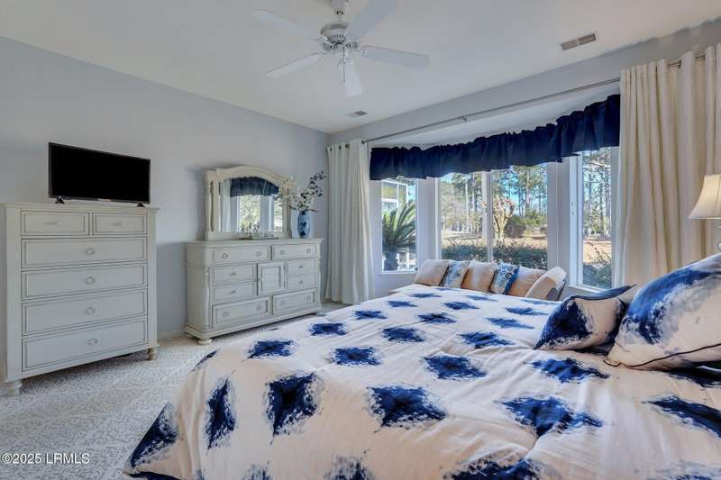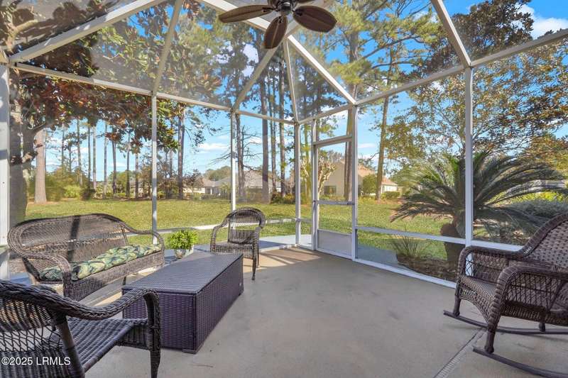 Enjoy serene views of the 8th green of the Okatie Creek golf course from this beautifully upgraded 3BD/2.5BA Charlotte Madison home in Sun City. Featuring an open-concept floor plan, this home offers a spacious great room, dining area & a Carolina room w/custom built-ins, perfect for relaxing or entertaining. The kitchen is well appointed w/stainless steel appliances, gas range & spacious pantry. Additional highlights include an oversized garage for extra storage, vinyl siding, smooth ceilings & bay windows in both the primary and guest bedrooms. This very private homesite is conveniently located b/w Town Square & Hidden Cypress.