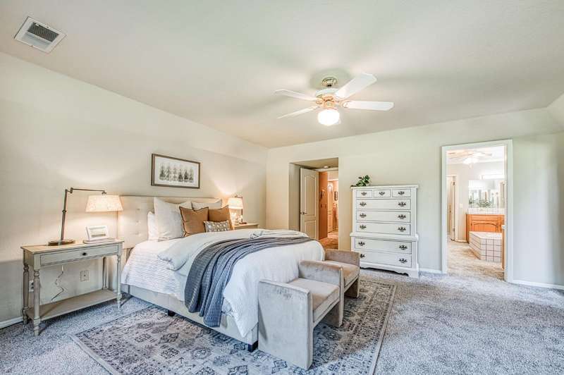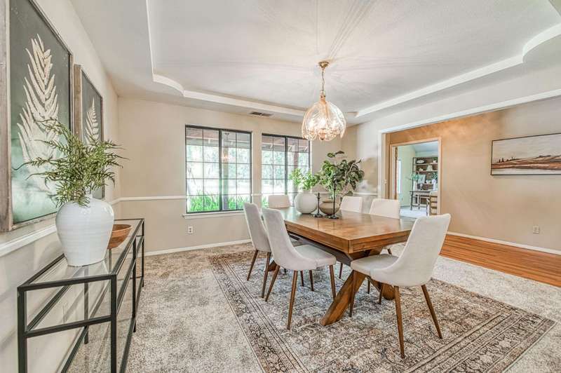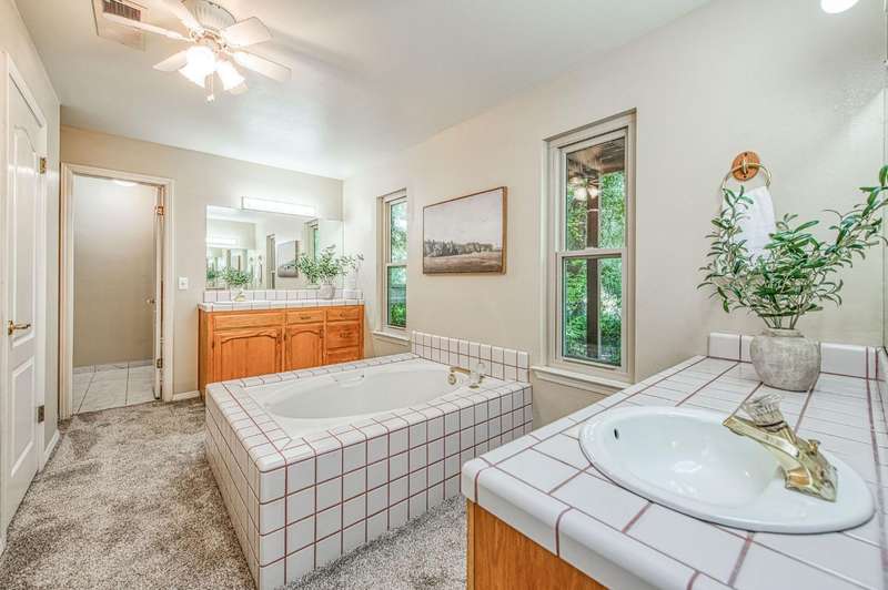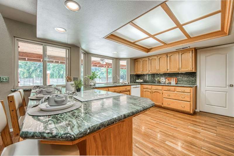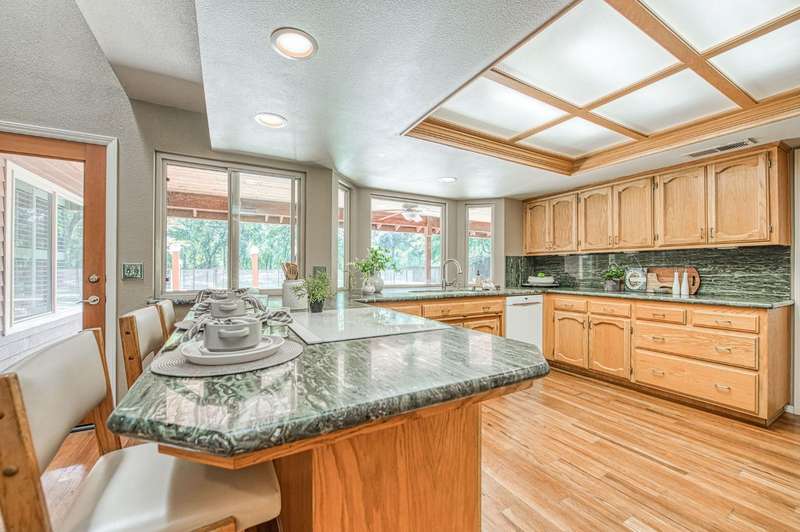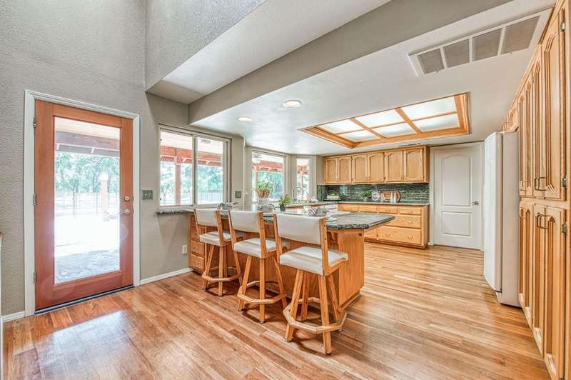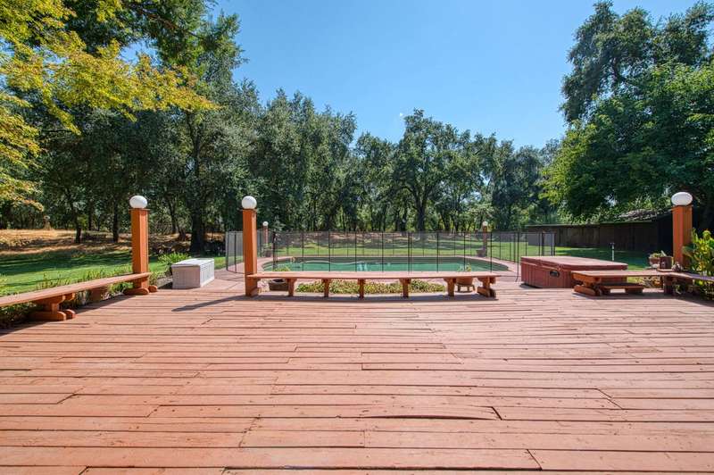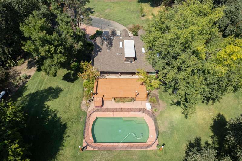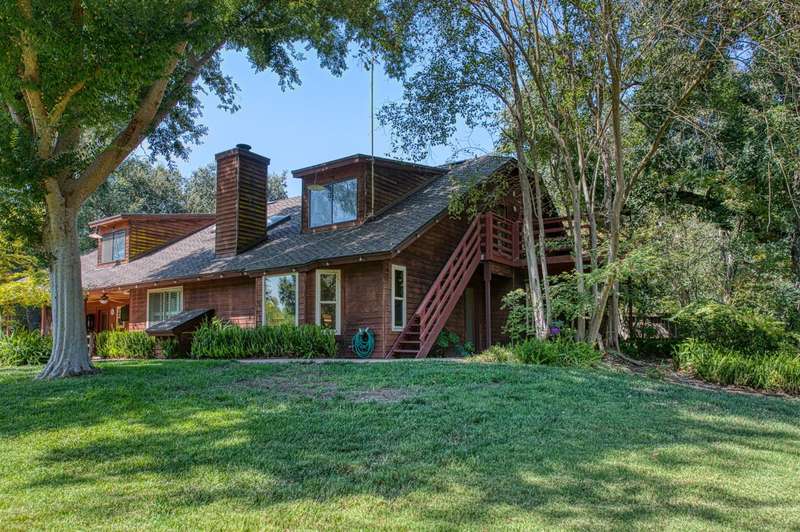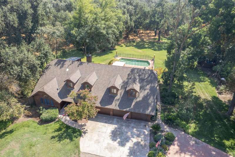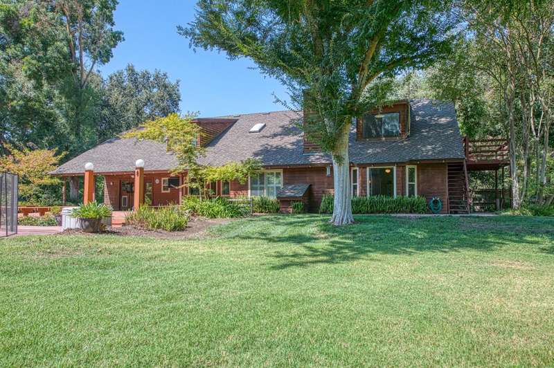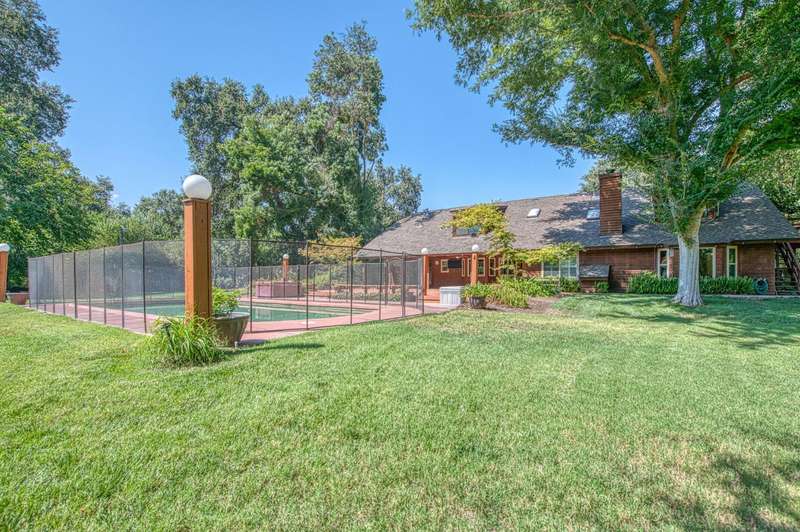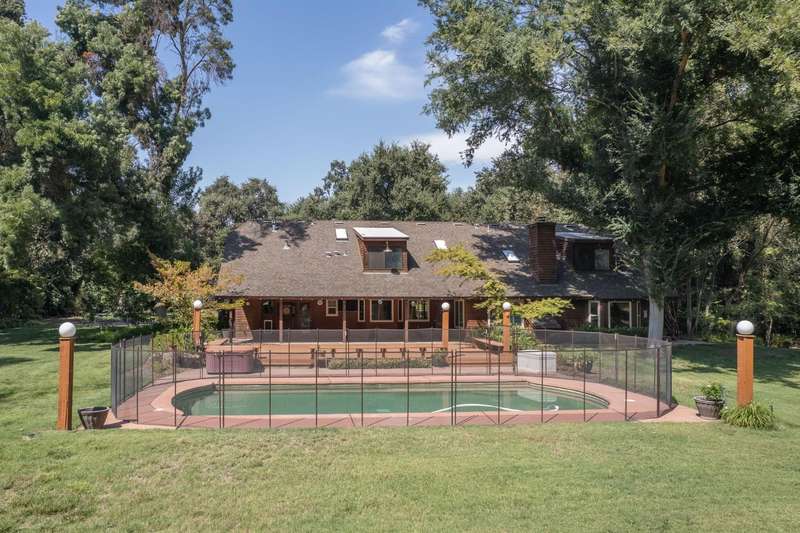 This custom-built 4-bedroom, 3.5-bath, +/-3,100 sq. ft. home is nestled in a private cul-de-sac with a gated entrance on a peaceful street along the River Bottom in Sanger. Situated on nearly 6 acres, it offers seclusion while being close to freeway access, shopping, and restaurants. Ideal for entertaining and spending time with friends and family. The property features a spacious shop/detached garage with room for a boat, cars, and a dedicated workshop. The property has space for a potential guest house, and a large lawn for outdoor activities.Property Features:Interior:4 bedrooms, 3.5 bathrooms3,100 sq. ft. of living spaceFormal dining roomLibrary/home officeLiving room with stone fireplaceKitchen with granite counters, extensive cabinetry, and views of backyard/poolLarge utility/laundry room with backyard accessUpstairs loft with skylights and sliding barn doorTwo upstairs bedrooms with deck accessDownstairs primary suite with two walk-in closets and ensuite bathExterior:Nearly 6 acres of landCreek along the back of the propertyPrivate cul-de-sac with gated entranceFenced pool with entertainment deckCovered patio3-car garage plus additional shop/garage with workshop~Space for boat storage and RV hookupsLarge lot with room for guest houseLocation:Peaceful street in Sanger's River BottomClose to freeway access, schools, shopping, and restaurants