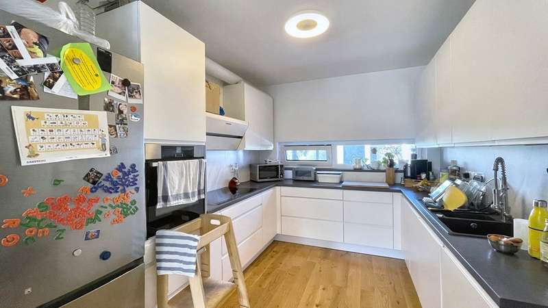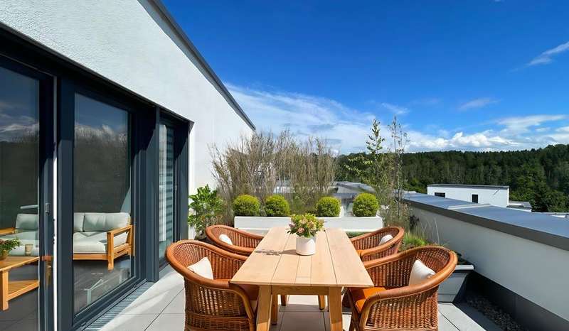 A place that grows with you - with life, with people, with your family. This house in the family-friendly residential area 'Am Illerbogen' combines what modern family life needs today: space to settle in, structure for everyday life and values that endure. As soon as you enter, you can feel the clarity of the architecture and the calm naturalness with which the rooms open up. The spacious living area on the first floor is much more than the functional center of the house - it is a meeting place, retreat and stage for everyday family life. Whether it's breakfast together, games evening or simply a moment of peace and quiet - there is space here for real togetherness. The open kitchen integrates harmoniously, but remains clearly structured. It combines with the dining area and the living room to create a living space that invites light and life. Direct access to the terrace and garden makes everyday life easy - children can play outside while dinner is prepared inside. On the upper floor and top floor, it is clear how well thought out this home has been planned. Five rooms offer plenty of flexibility - whether children's room, study or guest room: every family member will find their very own space here. Two bathrooms ensure that things don't get hectic in the morning - and that everyone has a place to retreat to. A special highlight for parents or those seeking peace and quiet: the private roof terrace. Here you can start the day with a coffee or end it under the wide open sky - a little piece of freedom in the middle of everyday life. The solid construction, efficient triple glazing, underfloor heating and sophisticated home technology create a pleasant indoor climate - without any climate-damaging heating systems. Thanks to the local district heating network, fed by combined heat and power plants using bio natural gas, the house is part of a climate-friendly energy concept. A home that not only works today, but also thinks ahead for future generations. This house stands for family life in balance - between openness and security, modernity and stability, everyday life and lightness.