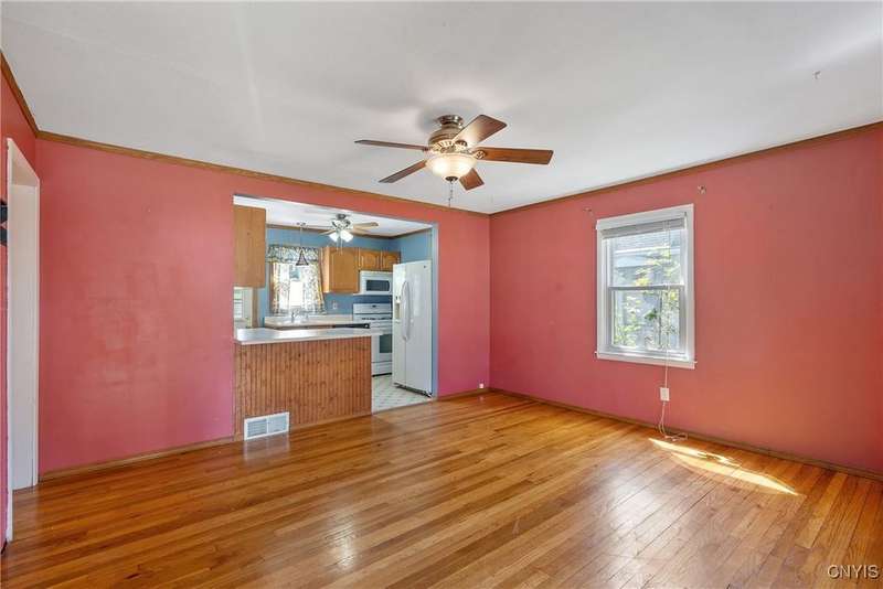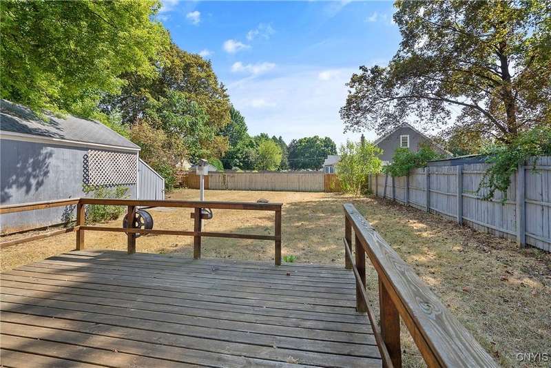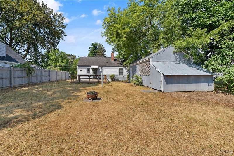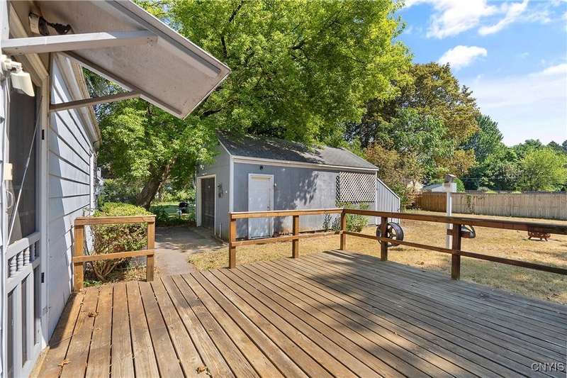 WELCOME TO YOUR DREAM HOME IN THE HEART OF NORTH SYRACUSE! THIS BEAUTIFUL 2 BEDROOM, 1 BATHROOM RANCH OFFERS MODERN COMFORTS AND ENDLESS POTENTIAL! STEP INTO A BRIGHT, FULLY APPLIANCED KITCHEN FEATURING A CONVENIENT BREAKEFAST BAR, PERFECT FOR MORNING COFFEE OR CASUAL MEALS. THE UPDATED BATHROOM BOASTS A LUXURIOUS SOAKING TUB, IDEAL FOR UNWINDING AFTER A LONG DAY. STAY COMFORTABLE YEAR-ROUND WITH A PROGRAMABLE THERMOSTAT TO CONTROL HEAT AND CENTRAL AIR. THE FULL BASEMENT WITH POURED FOUNDATION, OFFERS A CEDAR CLOSET AND PROVIDES AMPLE STORAGE OR THE OPPORTUNITY FOR FUTURE FINISHING, YOU CAN TAYLOR TO YOUR VISION. OUTSIDE, ENJOY THE LARGE DECK OVERLOOKING A HUGE YARD COMPLETE WITH COZY FIRE PIT AREA-PERFECT FOR ENTERTAINING OR RELAXING UNDER THE STARS! A 1 CAR DETACHED GARAGE WITH PULL DOWN STAIRS OFFERS ADDITIONAL STORAGE ALONG WITH THE ATTACHED SHED. LOCATED IN A PRIME NORTH SYRACUSE AREA, THIS HOME IS CLOSE TO SHOPPING, DINING, SCHOOLS, AND MAJOR HIGHWAYS, ALL WHILE ENJOYING THE BENEFIT OF NO VILLAGE TAXES. DON'T MISS OUT ON THIS MOVE IN READY GEM THAT COMBINES CONVENIENCE, COMFORT AND CHARM. SCHEDULE YOUR SHOWING TODAY AND MAKE THIS YOUR HOME!!