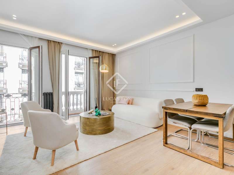 Lucas Fox presents this fantastic, newly renovated apartment in the prestigious Recoletos neighbourhood , located in a classic building with all the charm of traditional architecture and the comforts of a modern property . This bright, west- exterior property stands out for its two street-facing balconies, which add spaciousness and light to the space. The spacious and inviting living room features a modern, integrated designer kitchen. The layout is completed by a double bedroom , a full bathroom , and an elegant main bedroom with its own private bathroom. A unique opportunity to enjoy an exclusive property in one of Madrid's best areas . Contact us for more information.