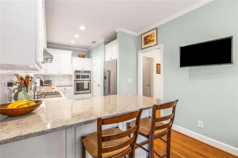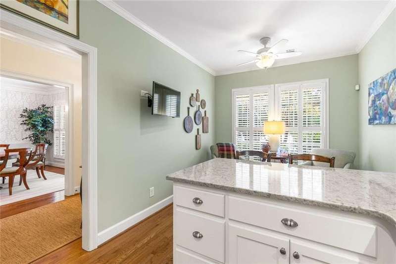 Welcome to #6 Huntington Park on Howell Mill Road. Living in this great location provides you with the cozy experience of enjoying one-level living with large master bedroom on the main, combined with the convenience of a lock and leave lifestyle. Enter the high-ceilinged foyer to find a lovely and neutral palette throughout. There is abeautifully lit dining room to your right, across from the renovated keeping room and kitchen on your left. New hardwood floors, new appliances, new hard surface countertops, new paint, and new lighting accentuate the charm and functionality of these spaces. Continue down the foyer, past the renovated powder room, to the light-filled living room, complete with fireplace with gas logs. This room opens to the uniquely handsome master bedroom, which features a sitting room, also opening to the pretty outdoor spaces. A large master bath with dual vanities, separate tub and shower, and a generous walk-in closet complete the main level space.Upstairs find 2 huge bedrooms, complete with larger than normal closets. A full bath serves these rooms. There is pull-down attic storage and other same -level storage off of one of the closets.Located in the Morris Brandon school district, this home is sure to attract a wide variety of buyers, all of whom will appreciate living in this small complex.Ample parking at the front door allows for easy entrance and egress at all times.
