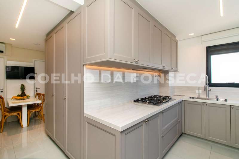 Apartamento em prédio novo, andar alto, com linda vista. Ambientes amplos, iluminação natural e acabamentos de primeira qualidade. Pé direito alto. Terraço integrado ao living com churrasqueira e lareira. Móveis planejados da Ornare, ar condicionado em todos os ambientes, automação de iluminação, áudio e vídeo. Condomínio com lazer completo.