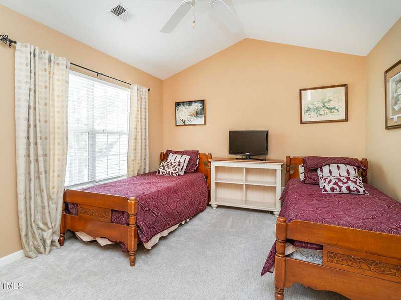 Charming home with a covered front porch and a back patio that overlooks a peaceful pond. Inside, you'll find an open floor plan with a spacious living room featuring a gas log fireplace. The kitchen offers granite countertops, a double oven stove, and all appliances remain including the washer & dryer. A half bath is located on the main level for guests. Both bedrooms have vaulted ceilings and attached full baths, providing comfort and privacy. This home is conveniently located near shopping and restaurants with easy access to I-85/40. Stoney Creek golf and pool are nearby but not included in the HOA. The pool is membership only & Stoney Creek Golf is semi private. HOA covers common areas, management services, general maintenance, trash removal, water, sewer & land scaping. Property is being sold subject to Court Order. Sale subject to 10-day upset bid period & subject to confirmation by the court.