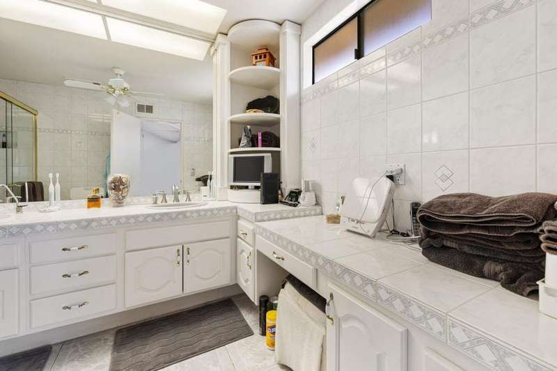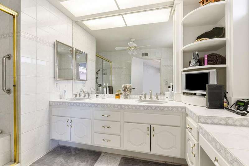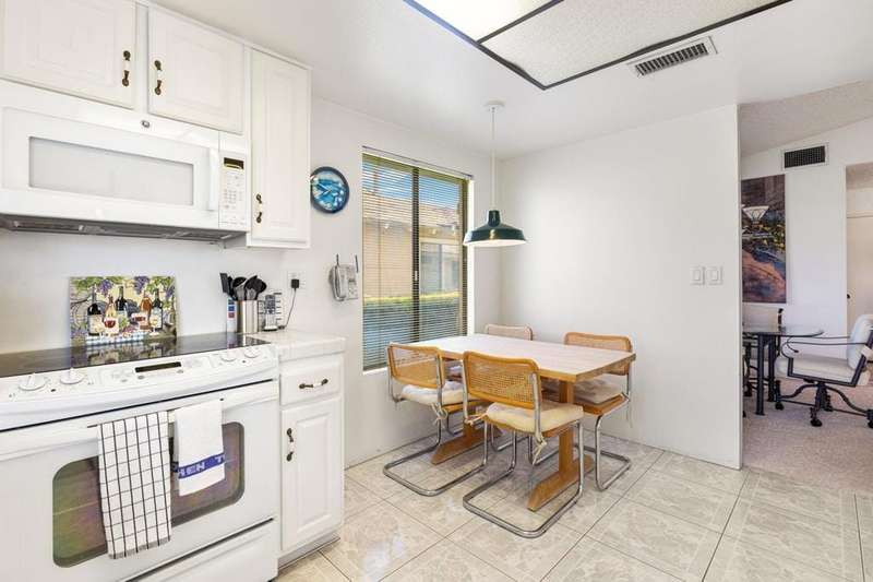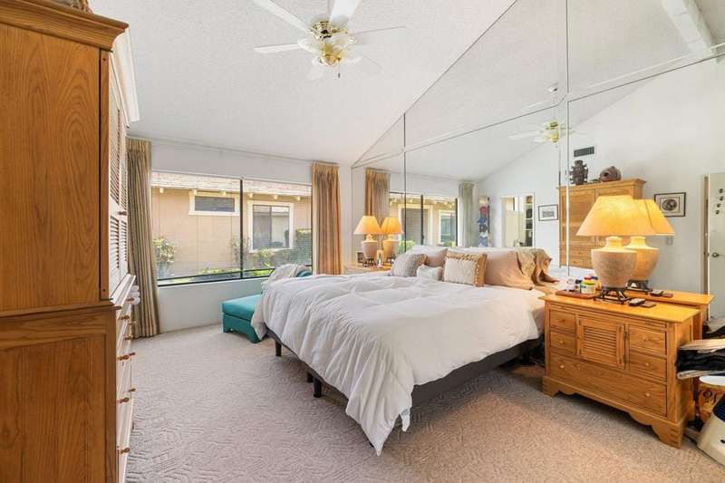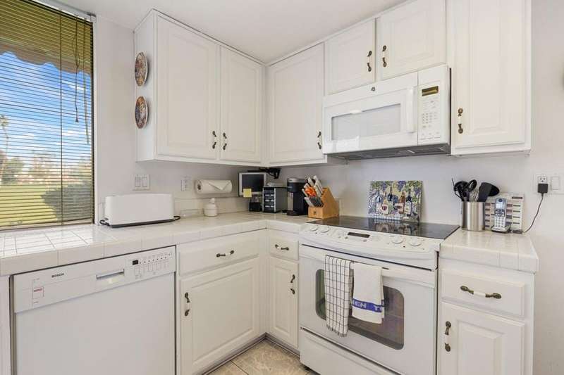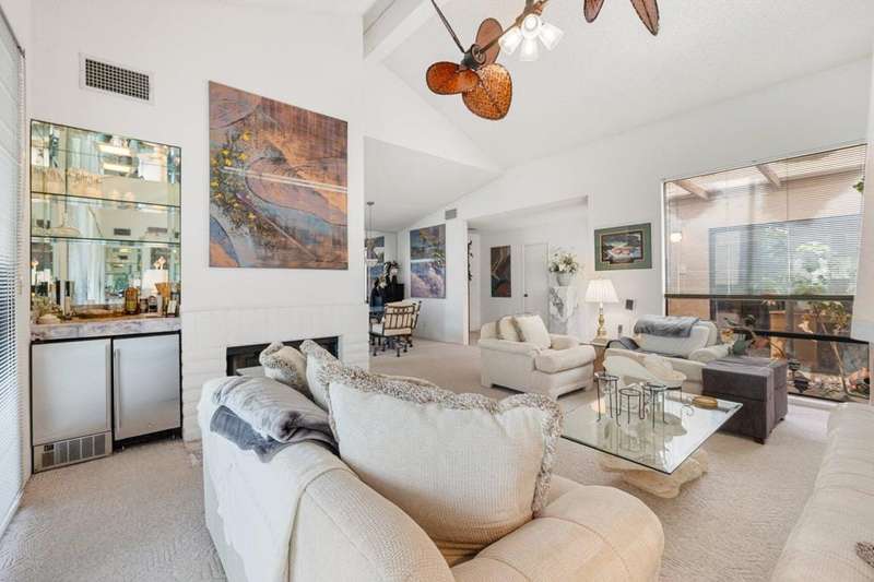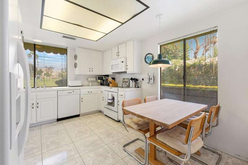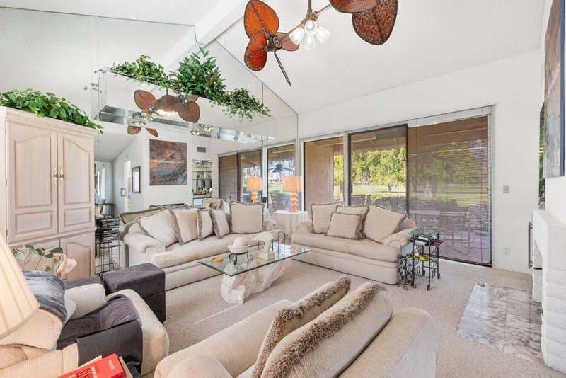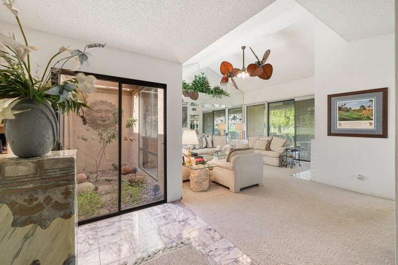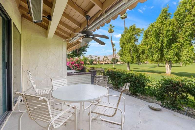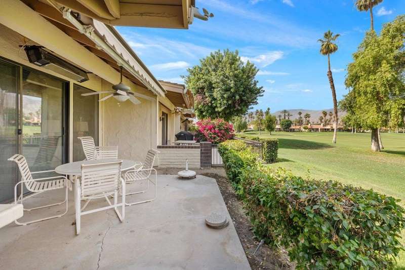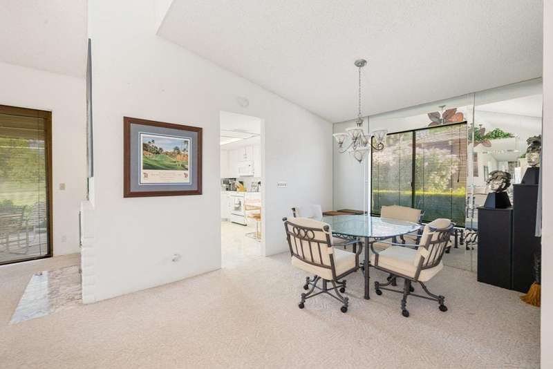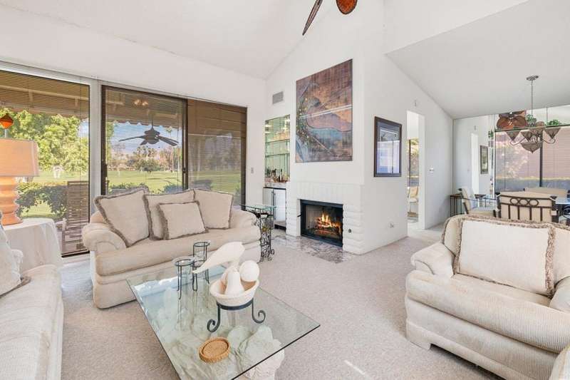 Incredible value and opportunity! Beautiful mountain and multiple fairway VIEWS from this 1584SF, 2BD+Den/2BA, 30 Plan with huge potential. Fantastic interior location on the 9th hole of South course, and just a short walk or golf cart ride to the clubhouse. Spacious living areas, high ceilings in living room and primary bedroom, neutral carpet & paint, gas fireplace, dry bar, updated hardware in baths, individual laundry room, and large 2-car garage with additional storage. New AC installed July 2025! 27 holes of Ted Robinson designed golf, 13 tennis courts, 20 pickleball courts, bocce, and 37 pools for your enjoyment. Centrally located in the heart of Palm Desert, Monterey CC is one of the most active clubs in the desert. Note: Annual golf course overseeding in progress. Course will be lush & green by November.