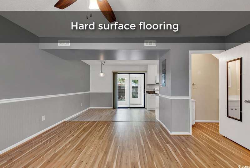 Golf cart to the beach! That's right, this NO HOA townhome is located east of Highway 17 Business and just an easy golf cart or bike ride over to the beach. Don't stop the day there, stop by the downtown Surfside district full of desired restaurants, parks, and activities. Yes, the location is great, but let's not forget those other ideal features like private backyard, and loads of recent updates. You're going to love this little salty beachside retreat. Location, Location, Location makes this listing a must see! BRAND NEW: Roof, Hardi Siding, Fencing, Deck, Sod, Laundry Flooring, & Slider on the porch.