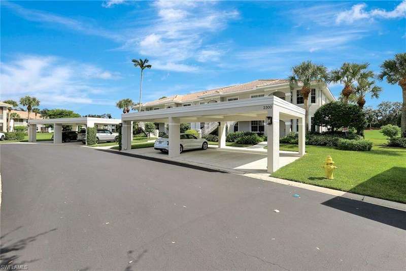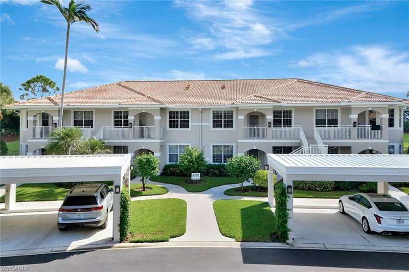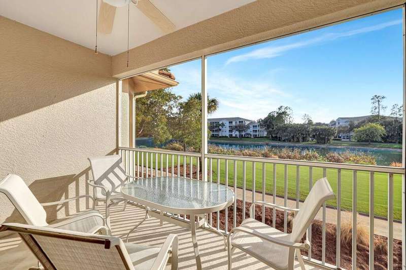 Welcome to your new home in the highly sought-after Stonebridge Country Club. This true bundled golf community is ideally located in prestigious North Naples-just minutes from world-class beaches, shopping, dining, and entertainment. This 2-bedroom, 2-bath second-floor condo is offered TURNKEY FURNISHED, for effortless living, and includes one covered-parking spot, as well. Step inside this light and bright residence to discover soaring volume ceilings, neutral ceramic tile flooring, plantation shutters, in residence laundry, and much, much more. The kitchen features stainless steel appliances, ample cabinetry, and generous counter space-perfect for everyday living or entertaining guests. The spacious primary suite and inviting guest bedroom provide comfort and privacy for residents and visitors alike. Relax on your screened-in lanai and take in the gorgeous eastern exposure with serene lake and golf course views overlooking the Par-4 14th hole. With newer AC and hot water heater, this home is ready for you to move in and start living your best Naples lifestyle today. Stonebridge is a community where every residence includes a full golf membership and access to an array of resort-style amenities. Enjoy the Gordon Lewis-designed par-71 championship golf course, featuring seven sets of tees for every skill level, a vibrant tennis community with five Har-Tru courts, a state-of-the-art fitness center, resort-style pool, and a beautifully renovated clubhouse offering multiple dining venues and social activities year-round. Opportunities like this in Stonebridge don't last long-schedule your private showing before it's gone!