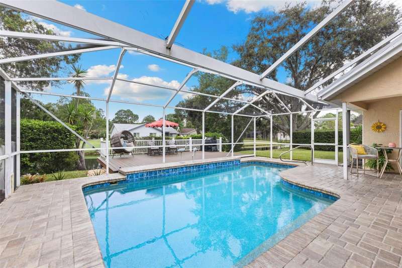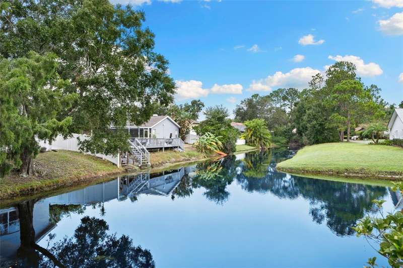BRING YOUR BUYERS! 20K PRICE DECREASE 10/30/25 Where do you find a peaceful backyard oasis with a WATER VIEW that is NOT in a flood zone? You’ve found it! Welcome to Whispering Lakes, a sought-after community surrounded by spring-fed lakes situated next to the Brooker Creek Preserve. Step into the grand entrance that sets the tone for this remarkable POOL home on an OVERSIZED LOT. Upon entry, you will find double front doors with artistic leaded glass open to vaulted ceilings and bright living spaces with pool and water views. This 3-bedroom, 2-bathroom waterfront home featuring newer stainless steel appliances offers a screened lanai with pool and pavers, perfect for outdoor living. The backyard provides seclusion and privacy, featuring a spacious deck - perfect for grilling and entertaining while overlooking the tranquil water. This home is complete with a desirable split floor plan and neutral colors with newer tile flooring. There is an inside laundry room for everyday ease. The second bathroom offers direct access to the lanai, providing added convenience for outdoor living and entertaining. In addition, the canal-fed irrigation system allows you to water your lawn without added expense! Whispering Lakes spans 60 acres, has a community park, pickleball, basketball, and tennis courts. The LOW HOA fee adds to the appeal, and the home is zoned for some of Pinellas County’s TOP-RATED SCHOOLS. Enjoy nearby outdoor recreation with hiking, birding, and equestrian trails at Brooker Creek Preserve, or take a short 23-mile drive to the award-winning Clearwater Beach. Tampa International Airport is just 20 miles away, with shopping, dining, and numerous local parks close by. Nestled in a hidden enclave of unique homes, this property presents a rare opportunity to live on the water without flood insurance and outside of a flood zone - a true gem that combines charm, exclusivity, and peace of mind.