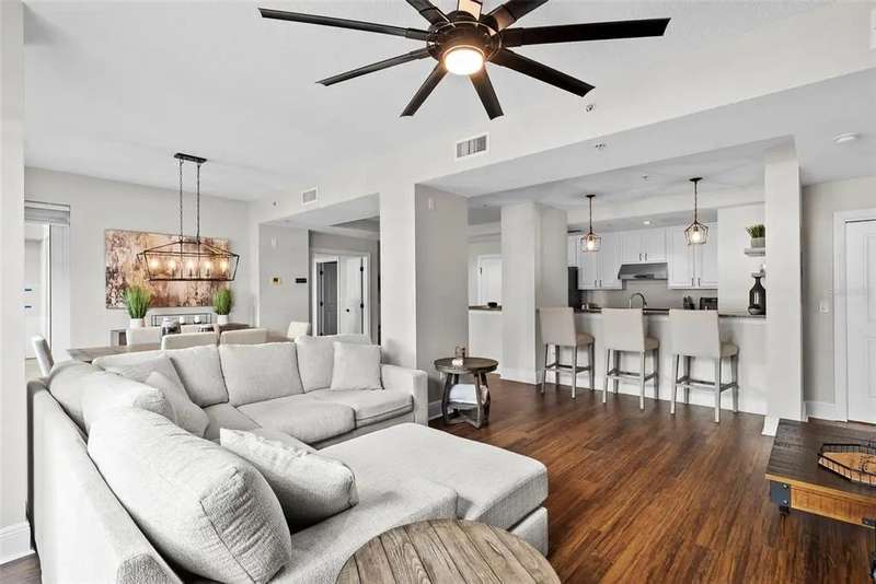 Step into luxury living at "The Ventana" located in the vibrant heart of Channelside! ASSESMENTS HAVE BEEN PAID IN FULLThis stunning 2-bedroom, 2-bathroom condo offers the epitome of modern elegance. From the sleek wood-lined elevators to the opulent marble floors in the lobby, every detail exudes sophistication. Enjoy breathtaking water and city views from every room of this split floor plan, open-concept living space, complemented by a spacious outdoor terrace (700+ sq.ft) perfect for entertaining. This corner unit has direct access to the amenity deck with pool, gym, club house and more. There are floor to ceiling windows with new blinds and chic engineered wood floors that add warmth and character, while designer paint colors enhance the contemporary aesthetic. The gourmet kitchen features solid wood cabinets, KitchenAid stainless steel appliances, and granite countertops, making it a chef's dream. Retreat to the primary suite, complete with sliding doors leading to the patio, a generous walk-in closet, and a luxurious bathroom featuring dual sinks and a seamless glass shower. Experience top-notch amenities including a sparkling pool with waterfront views, a spacious clubhouse, a state-of-the-art gym, and round-the-clock security and concierge services. With secured parking with 2 assigned spaces and ample guest parking, convenience is paramount. This condo comes with several upgrades including, a water softener, new refrigerator, new blinds, newly painted and new ceiling fans. Are you ready to elevate your lifestyle in the most stylish neighborhood in town? Don't miss your chance to call "The Ventana" home!