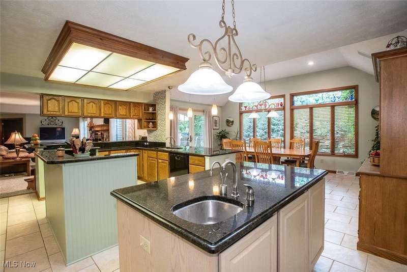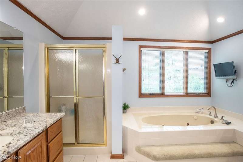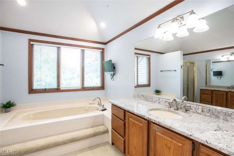 Nestled on a peaceful cul-de-sac in the highly sought-after High Point subdivision, this beautifully maintained 4-bedroom, 3.5-bath Colonial with a private home office offers over 3,100 sq. ft. above ground plus a finished walk-out lower level. The home's centerpiece is the impressive kitchen addition (2005), thoughtfully designed for both function and style?featuring rich granite countertops, an island with prep sink and instant hot/cold faucet, trash compactor, vaulted ceilings, abundant cabinetry, pantry, breakfast bar, and walls of windows that fill the space with natural light. The kitchen opens seamlessly to the inviting family room with a cozy wood-burning fireplace, plush carpeting, and doors leading to a spacious deck overlooking the meticulously landscaped yard adorned with colorful flower beds?perfect for outdoor relaxation and entertaining. Formal living and dining rooms provide elegant spaces for gatherings and holidays, while a private double-door office offers the ideal setting for remote work. A first-floor laundry room and half bath add convenience to everyday living. Upstairs, the vaulted primary suite offers a true retreat with two large walk-in closets and spa-inspired bath featuring dual granite vanities, a jacuzzi tub, and a separate walk-in shower. Three additional bedrooms boast generous closets and share a well-appointed full bath with double sinks and granite counters. The walk-out lower level extends the living space with a large recreation room, full bath, and access to a paver patio and built-in storage shed. Recent updates include a high-efficiency Lennox furnace and A/C with humidifier (2024), hot water tank (2024), and upgraded electric panel. Residents of High Point enjoy resort-style amenities including a pool, clubhouse, playground, walking trails, tennis, basketball, and an active swim team. Most rooms have been freshly painted, making this home truly move-in ready. The attached two-car garage completes this exceptional property