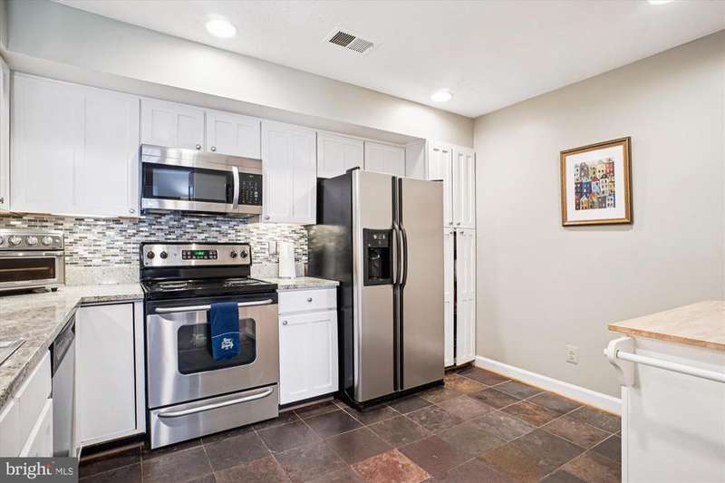 The ideal floor plan... Two separate and virtually equal primary suites in an entirely updated patio-level condo. This spacious 1,250 square foot condominium offers sophisticated living in Penderbrook, well known and sought after as a recreational community in the heart of Fairfax. The kitchen is completely remodeled, boasting white shaker-style cabinets, including a dedicated pantry cabinet, complemented by beautiful granite countertops with a coordinating tile backsplash and sleek stainless-steel appliances, all set on a stylish ceramic tile floor. A separate dining room is ideal for entertaining. Relax in the living room featuring a cozy wood-burning fireplace with marble surround and convenient built-in shelving with cabinet storage. Adjacent to the living room, a glass-sheathed sunroom with large windows provides a bright retreat or a home office and opens via a sliding glass door to a private patio with a handy storage closet. Walk out the sunroom door for a quick walk down to Mulligans Pub on the Green! The condo includes two generous bedrooms: the primary bedroom features two closets and an updated ensuite bath with a wide vanity, attractive quartz sink top, and contemporary fixtures. The second bedroom is equally appealing with a walk-in closet and direct access to the second full bath. This floor plan is ideal for so many lifestyles: two roommates sharing a kitchen and living space, or a parent and child. A dedicated laundry room with a full-size washer and dryer adds convenience. Penderbrook amenities are unrivalled, including a golf course, fitness center, pool complex, tennis and basketball courts, and tot lots. Its prime location near Fair Oaks Shopping Center, Fairfax Corner, and Fair Oaks Hospital, with easy access to Route 66 and a Metro-serving bus line, makes commuting and errands effortless. Reston Town Center is also just a short drive away. This isn't just a home, it's a lifestyle.