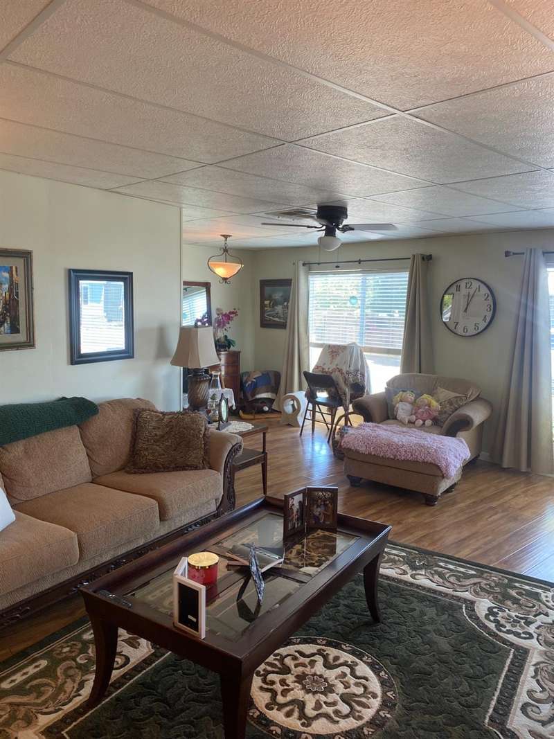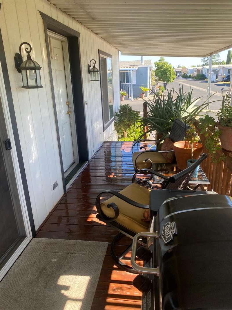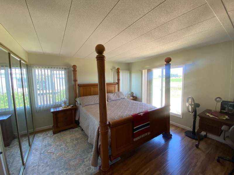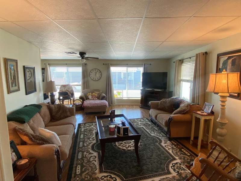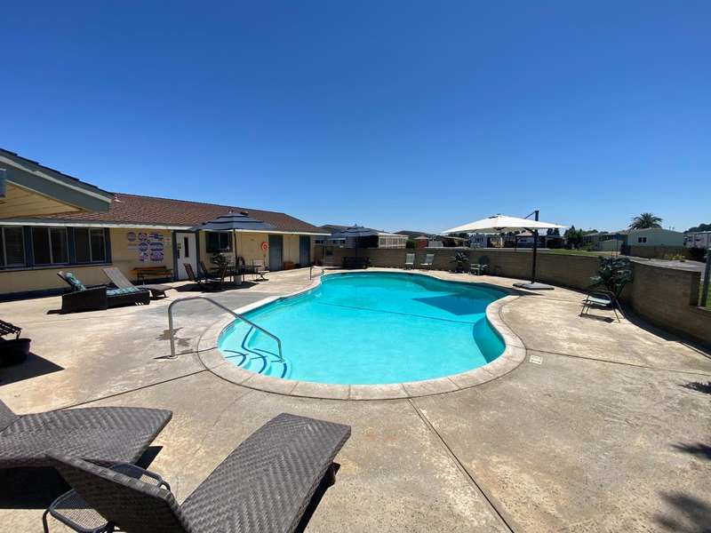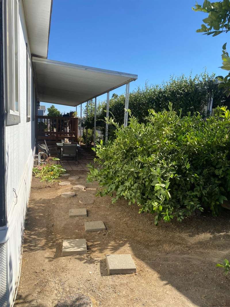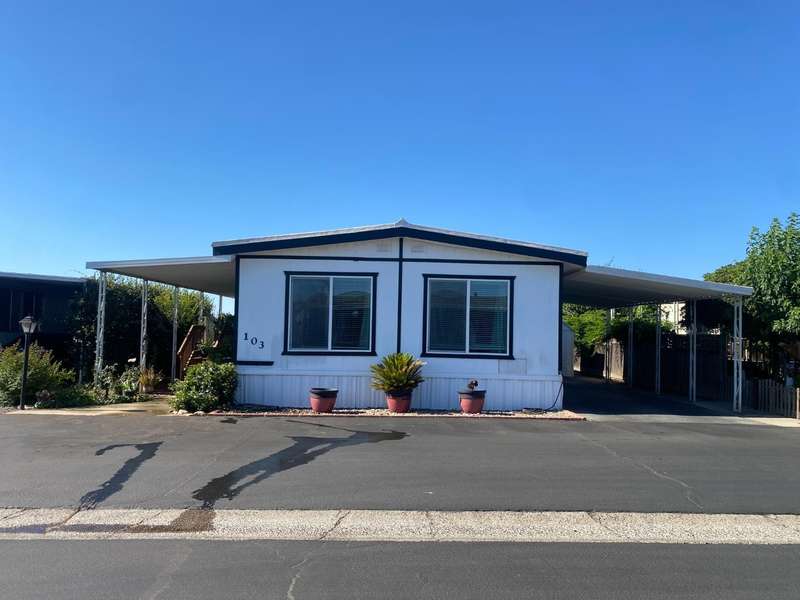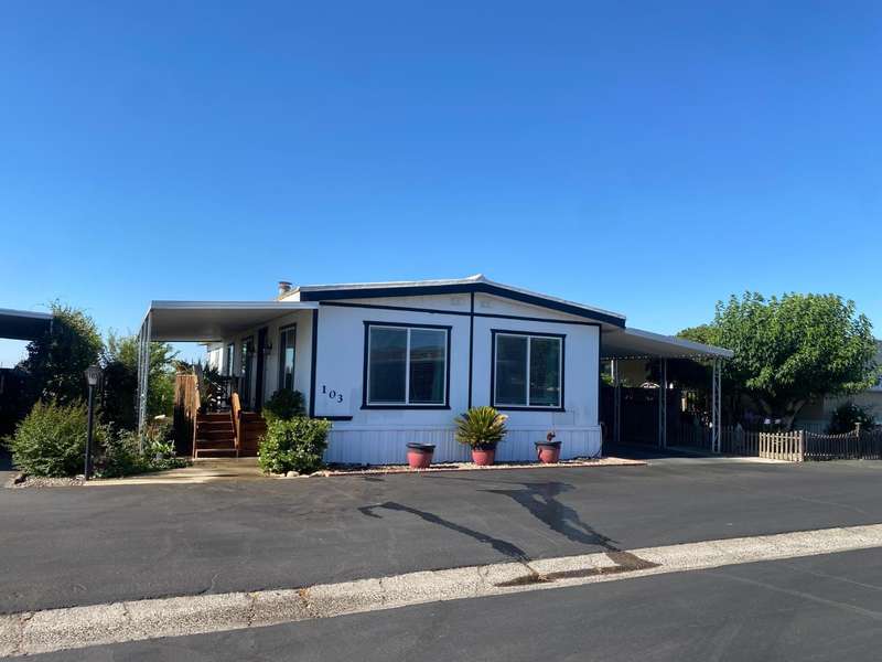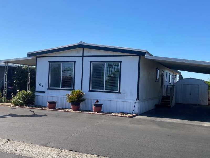 Welcome to this beautifully maintained 3/2 double wide home nestled in the peaceful 55+ quiet gated community. This spacious and inviting 1400+ sf home offers the perfect blend of comfort, convenience and country charm! Step inside to find gleaming vinyl floors, neutral paint and a layout that flows effortlessly from room to room. The open concept living dining areas are filled with natural light, creating warm and welcoming atmosphere ideal for relaxing or entertaining. Enjoy a well-appointed kitchen, with great counter space, nook area and pantry closets. The generous bedroom sizes and two full baths all designed for easy living. A slider off dining area to covered patio/deck area for easy access to outside space. The inside laundry area makes it convenient for daily needs. The raised garden beds, two lemon and orange trees to enjoy and a quaint sitting area for entertaining. The sparkling pool, lush grass areas are available for your enjoyment but not the hassle and up keep. Two outside storage sheds to keep your extras orgainized and out of the outside elements. Spacious carport offers shade for your vehicles or comfortable area for large gatherings. Schedule your private showing today. Your picky buyers will fall in love with Space #103!