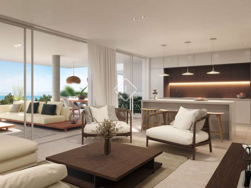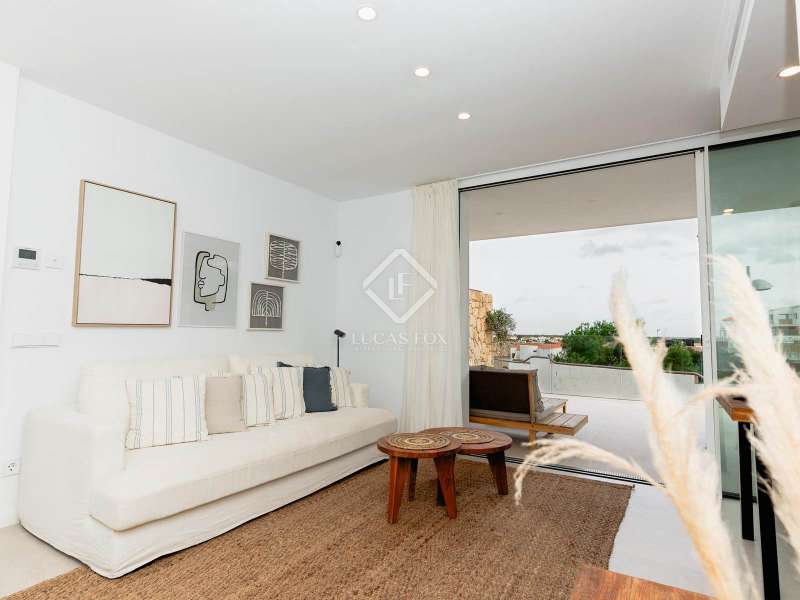 This duplex penthouse is part of Arenal Beach, a new build with a privileged location, very close to the beach and overlooking the sea, on the fantastic island of Menorca, with its enviable climate. All this without sacrificing access to all the necessary daily amenities . This is a gated community with various security measures for the peace of mind of its residents. It will also offer a wide range of community amenities and facilities. These include a reception area, a spa with a jacuzzi, sauna, and cold baths, a fully equipped gym, and a swimming pool with a beach area, a chill-out area , and a children's play area. The apartment benefits from a modern, elegant, and minimalist design with open spaces and white tones, as well as large windows that allow in abundant natural light and offer excellent sea views. The property features a large living-dining room with an open-plan kitchen and access to a huge, partially covered terrace with a dining room and chill-out area, perfect for hosting meetings, entertaining, or simply relaxing while enjoying Menorca's magnificent climate. The night area has a total of two bedrooms: the main bedroom with its private bathroom and a double bedroom . The property is completed with another bathroom to serve the remaining rooms. On the upper floor , there is a huge open terrace with a solarium area and a private pool. Among its features, we can highlight the Technal aluminum exterior carpentry with thermal break and double glazing, the home automation system, the aerothermics system for domestic hot water production, and the ducted air conditioning with heat pump. The kitchen and bathrooms are fully equipped. The kitchen includes top-of-the-line appliances from Bosch, Neff, and similar appliances, along with a Neolith countertop, while the bathrooms feature Porcelanosa fixtures. Contact us for more information.