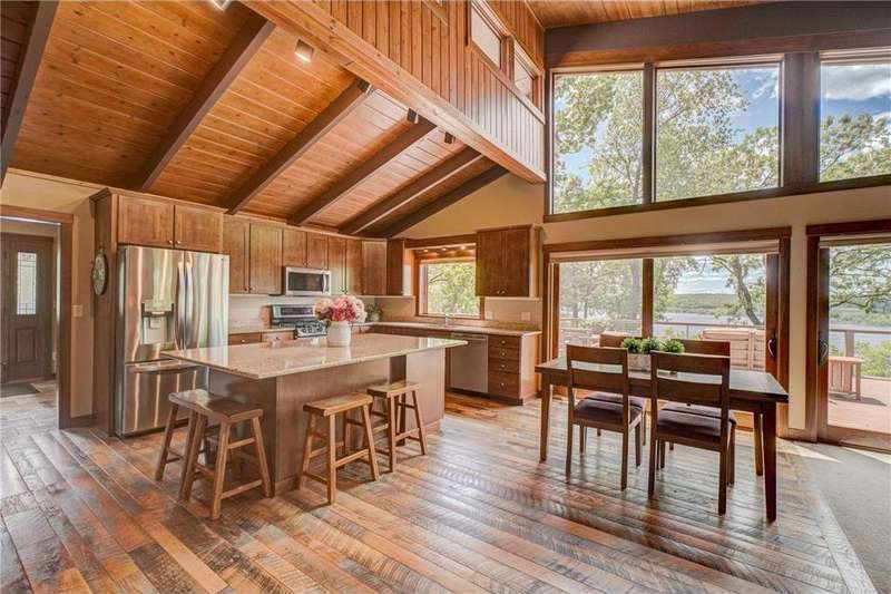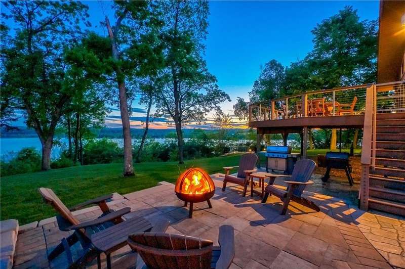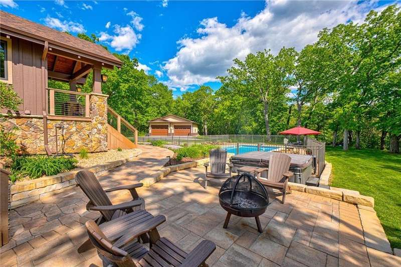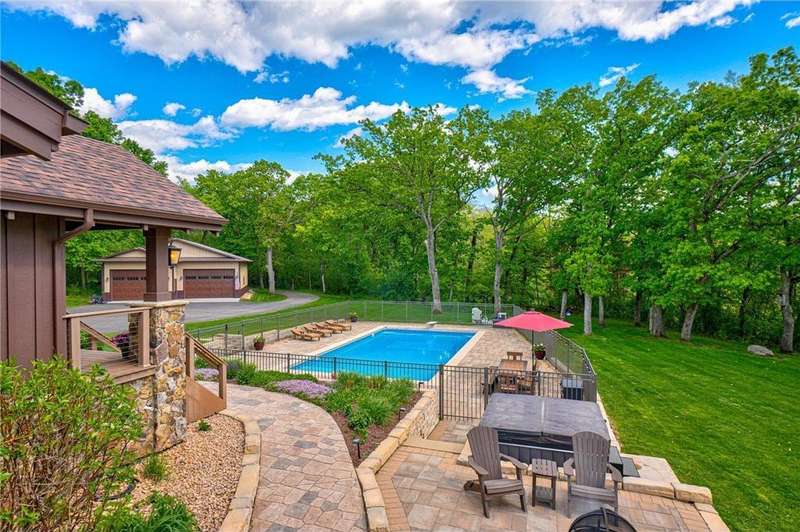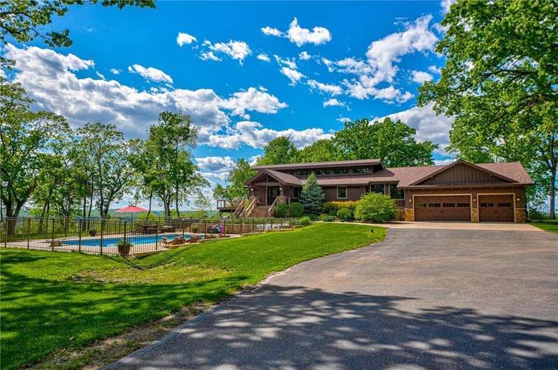 Welcome to one of the most extraordinary private retreats on the St. Croix River—where timeless rustic elegance meets unmatched riverfront living. Nestled on a premier stretch of shoreline with one of the best sandy beaches on the river, this stunning estate offers the river lifestyle of your dreams! Crafted with intention and rich character, this custom 5 bed, 5 bath rambler impresses with exquisite woodwork by renowned craftsmen Al and Wally Hines, rustic white oak floors, and walls of windows that flood the home with natural light while framing picturesque views of the river. An open-concept main level is anchored by a striking stone, wood-burning fireplace in the living room and a gourmet kitchen with Cambria countertops, a generous pantry, and access to the expansive walkout deck for seamless indoor/outdoor living. The thoughtful design continues with a spacious loft overlooking the main living space & offering breathtaking views of the river. Wake up to captivating river sunrises in the private primary suite, complete with a walk-in closet and a spa-like ensuite featuring heated floors, a jetted tub, and a natural stone tile shower. Two additional main-level bedrooms offer spacious layouts, stunning river views, and share a well-appointed Jack & Jill bath. The home’s purposeful layout also includes two laundry rooms, making everyday living effortlessly convenient. Retreat to the lower level, designed with entertaining in mind, where a striking stone fireplace anchors the light-filled living area. A luxe bar with granite countertops invites gatherings, while heated floors add comfort and warmth throughout. You'll also find generous storage space, including an unfinished area full of potential—ready to be customized to fit your lifestyle. Outdoors, a brand-new lift offers easy access to your private beach spanning 300ft of shoreline, where you’ll find 20–30 ft of soft sand extending into the river—perfect for launching a boat, paddleboard, or simply relaxing by the water. The outdoor amenities continue with a cozy firepit, heated pool, expansive patio & walkout deck, generous yard, and a massive 40x40 shed with loft storage—ideal for storing toys, gear, or diving into your favorite hobbies. Tucked at a peaceful bend in the river, this property enjoys rare north and south views, including unforgettable sunsets and the twinkling lights of Stillwater in the distance—all just minutes from Hudson and Stillwater’s top-tier dining, shopping, and recreation. This is more than a home. It’s a lifestyle—private, luxurious, and unforgettable.