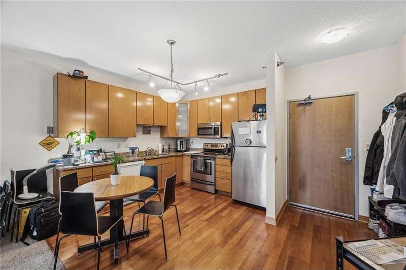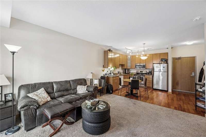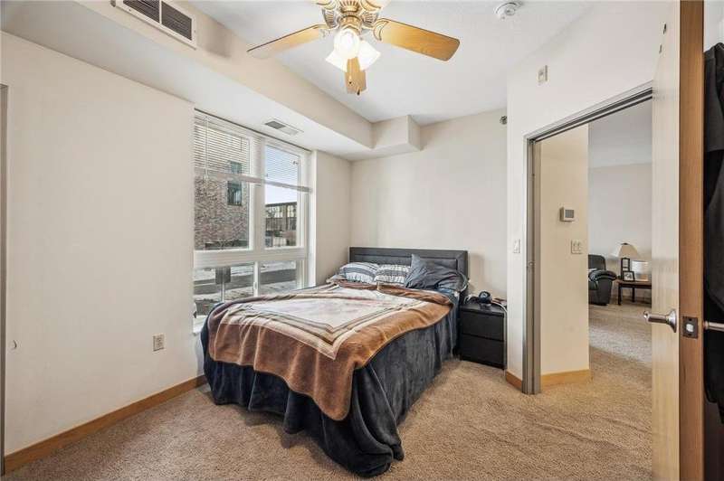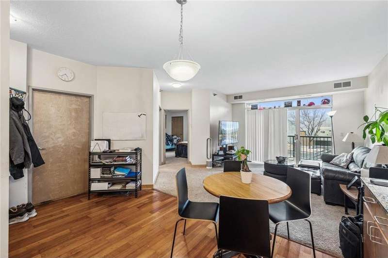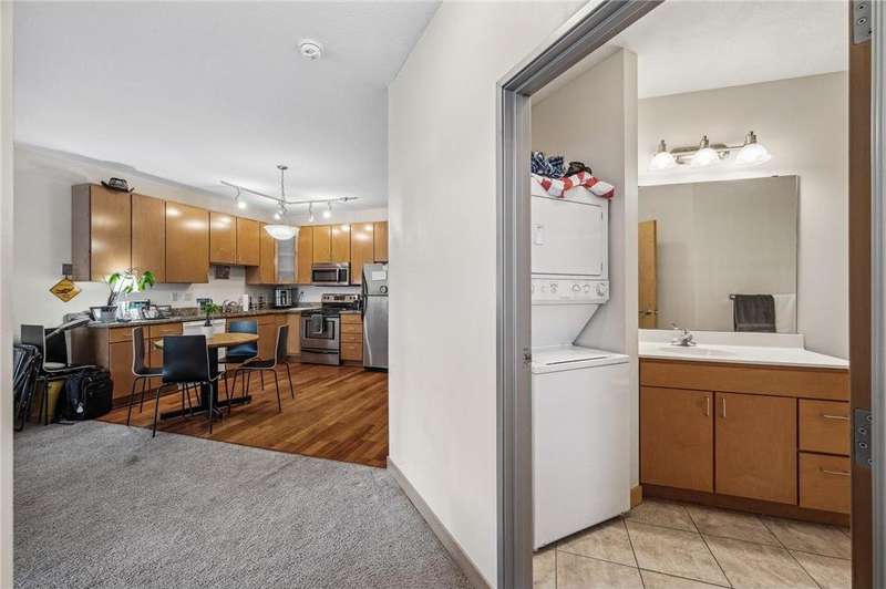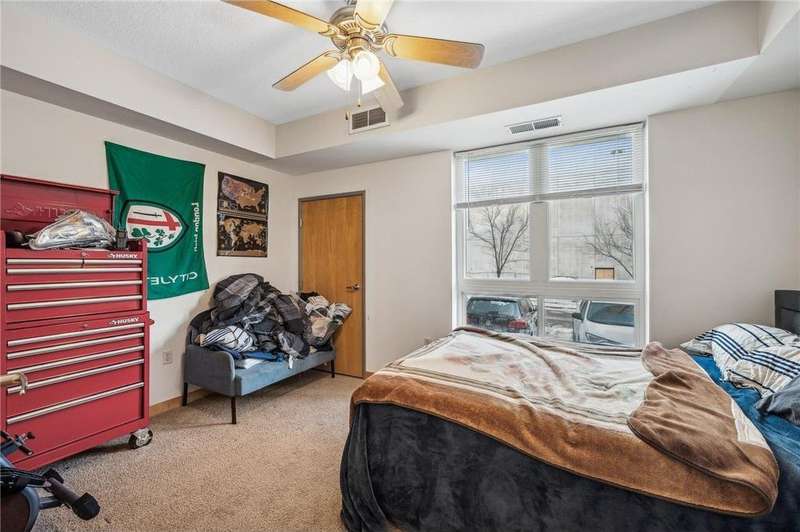 Fantastic opportunity to own in the desirable University Flats on the East Bank near the U of M. This sun-filled first-floor unit offers open concept living, dining, and kitchen area. The kitchen features sleek granite countertops, stainless steel appliances, and wood floors. The spacious bedroom includes good sized closet and the versatile den area is perfect for a home office, den, or even a non-conforming guest bedroom. Additional features include in-unit washer/dryer and a great deck which offers an ideal space for outdoor relaxation. Rentals are allowed, making this an excellent investment opportunity. Building amenities include a shared fitness room and game room. HOA includes internet. The unit comes with a heated underground parking stall. Location provides unmatched convenience with easy access to both the U of M campuses and downtown areas by light rail, bus, car, or bike. Walk to nearby restaurants, grocery stores, TCF Bank Stadium, the Mississippi River, and much more!