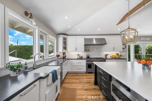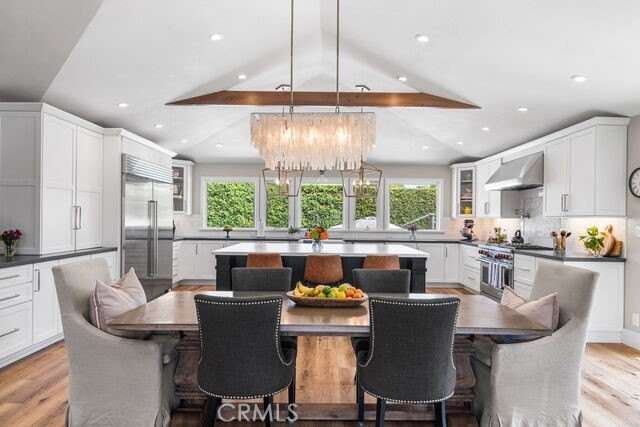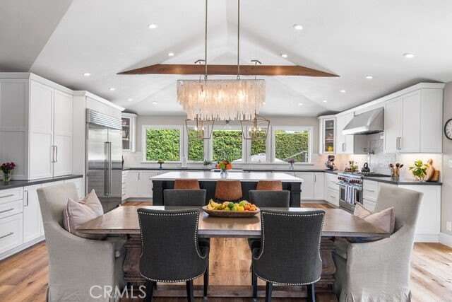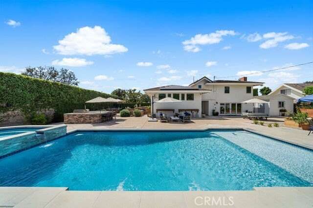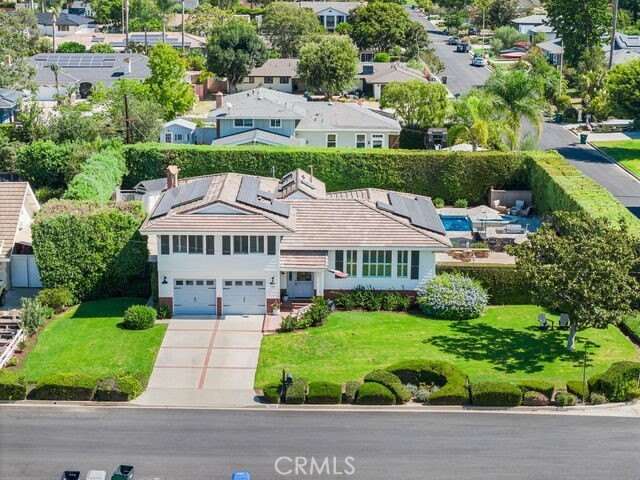 Welcome to 1301 Landfair Circle, a highly upgraded home in one of North Tustin’s most desirable neighborhoods. This Meredith-designed home is like none you’ve ever seen before—completely reimagined, opened up, and thoughtfully crafted to maximize every inch of space. Blending timeless architecture with modern updates, it offers the perfect balance of style, comfort, and functionality. Inside, soaring vaulted and coffered ceilings, wide-plank waterproof flooring, custom millwork, and plantation shutters create a refined yet inviting atmosphere throughout the 5-bedroom, 3-bath, 3,526 sq. ft. floor plan. The fifth bedroom, currently designed as a home office, sits just steps from the fully equipped movie theatre room—perfect for working by day and entertaining by night. The chef’s kitchen is the true centerpiece of the home with Wolf and Sub-Zero appliances, an oversized island, beverage peninsula with wine fridge and ice maker, quartz counters, and expanded cabinetry, all flowing seamlessly into the open living and dining spaces for effortless entertaining. The fully finished split basement transforms into a true destination with a private office and state-of-the-art home theatre featuring tiered seating, a 102” screen, and immersive surround sound. All four bedrooms are located upstairs and offer custom closet organizers, while the bathrooms blend travertine, ceramic tile, and modern finishes for spa-like comfort. Outdoors, discover a backyard retreat designed for both entertaining and everyday living: a remodeled pool and spa with a Baja shelf, Pentair system, multiple patio areas, built-in BBQ, and a cozy fire pit. For those who love to garden and live sustainably, enjoy self-watering fruit and vegetable raised garden beds and a custom chicken coop—all surrounded by lush privacy hedges. With a 56-panel Tesla solar system, upgraded plumbing, Fujitsu and Carrier HVAC systems, and fresh exterior finishes, this Meredith masterpiece blends thoughtful design with modern efficiency. And with its prime location, it’s just steps from the walking path to award-winning Red Hill Elementary, as well as within walking distance to two other top-rated Tustin schools—making this home a rare North Tustin offering that perfectly unites high-end upgrades, versatile living spaces, and the charm of a timeless, family-friendly neighborhood. Welcome home!