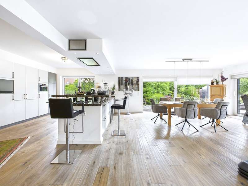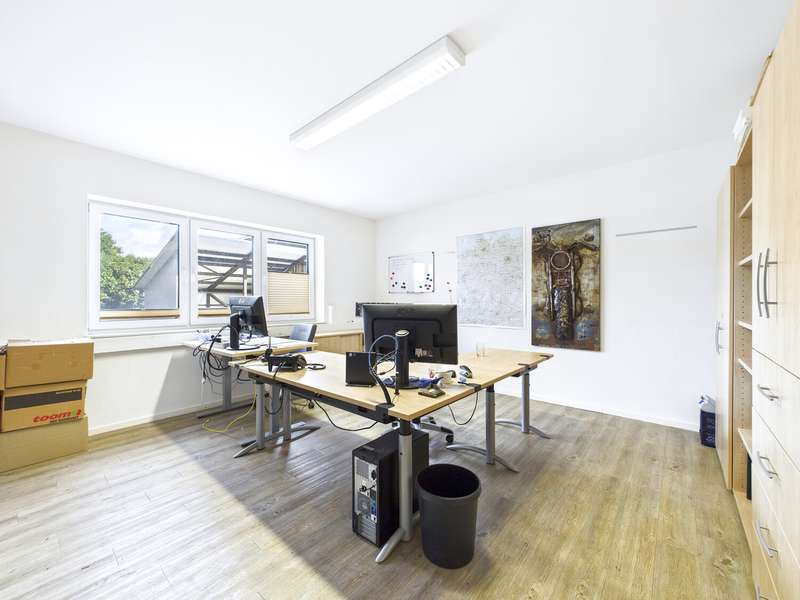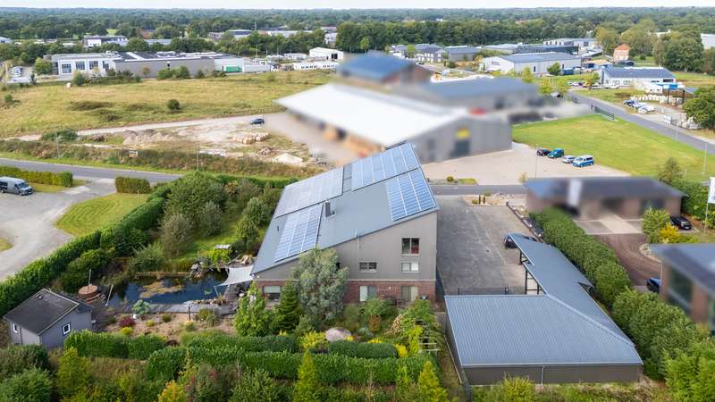 This exceptional property in the Schirum II industrial estate in Aurich combines modern commercial space with exclusive living comfort - a perfect symbiosis for entrepreneurs who want to realize their visions and enjoy the highest quality of life at the same time. A modern commercial building was constructed on a spacious plot of approx. 3,334 m² in 2013 and extended again in 2015. It offers around 236.53 m² of versatile space on the first floor and a further 276 m² of reserve space on the upper floor, which is ideal for storage or future expansion. Thanks to an integrated lifting platform, extensive storage space in the shed roof and a spacious garage solution, logistical and technical requirements are also optimally covered. The property not only impresses with its functionality, but also with its prestigious fittings. Modern office and commercial space with underfloor heating in all units, a sophisticated security system including outdoor cameras and a gas/pellet heating system underline the high standard. A large carport and numerous parking spaces for employees, customers and owners ensure perfect conditions for day-to-day business. The private living area puts this property in a very special league: an exclusive interior with a high-quality fitted kitchen, open-plan design and modern living accents awaits you in a living space of around 268.16 m². A total of four high-quality fitted kitchens and an additional kitchenette are available throughout the property - ideal for flexible use by residential units, offices or commercial spaces. The lavishly landscaped garden with swimming pond, garden shed and recreational areas invites you to relax and creates an oasis of peace alongside the business use. This can be accessed directly from the living room through large windows. This property is also an economic investment in the future: a high-performance photovoltaic system with 64 kW ensures a monthly feed-in tariff of around €523.00 gross (as of 2024), which is guaranteed until 2033. This means you benefit from predictable income and a sustainable energy supply. This property is far more than just a location - it is a platform for entrepreneurs, freelancers and visionaries who want to combine living, working and living. Whether as a company headquarters with a prestigious residential solution, as a modern service center or as a combination of office, workshop and exclusive private residence - individual concepts can be perfectly implemented here. A 3D tour is available on request!