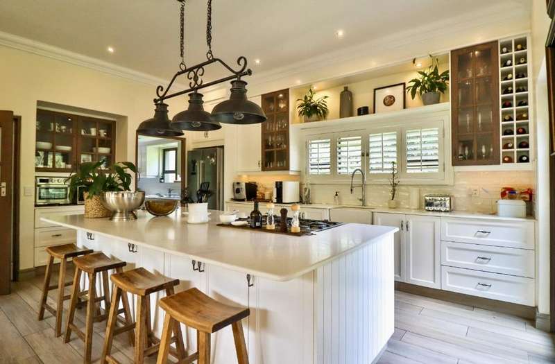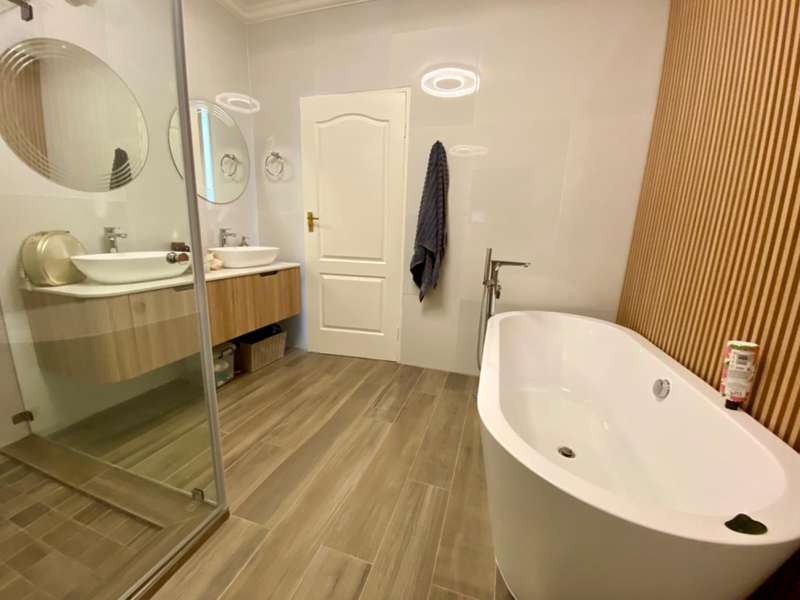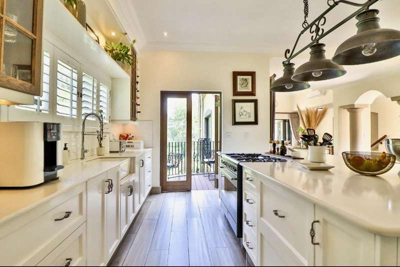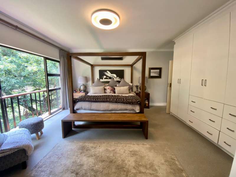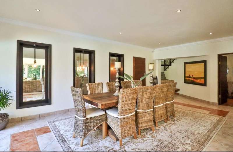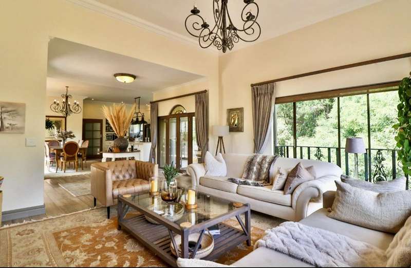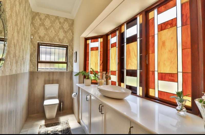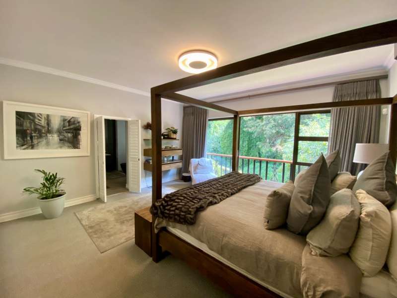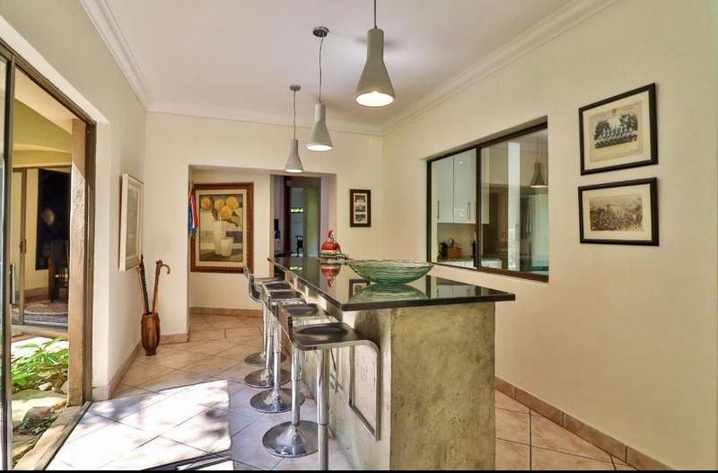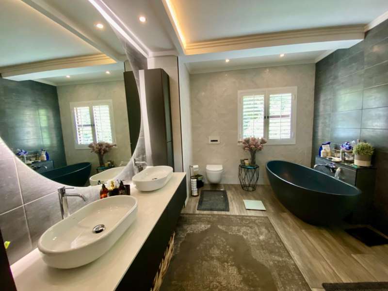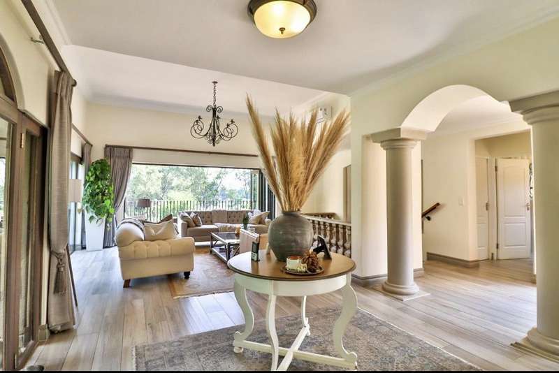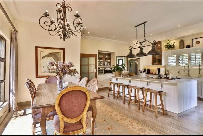 Contemporary with stunning finishes, this spacious family residence is crafted to impress, featuring expansive areas and impressive entertainment spaces, along with a great location and views in a desirable Waterkloof Estate. The residence features two kitchens; one is located in the main living area, elegantly designed with classic finishes, while the other is on the ground level, recognized as the entertainment space complete with its own TV room, dining areaarea,bar bar and access to a swimming pool for enjoying both indoor and outdoor living, plus a guest suite and a wine cellar. The residence features an excellent 12 solar panel setup with 15kwa batteries and inverter, two fireplaces (one gas and one wood), and an indoor barbecue. Cooling system installed everywhere. A high-quality security system along with automatic irrigation and secure living at a fine Waterkloof estate.