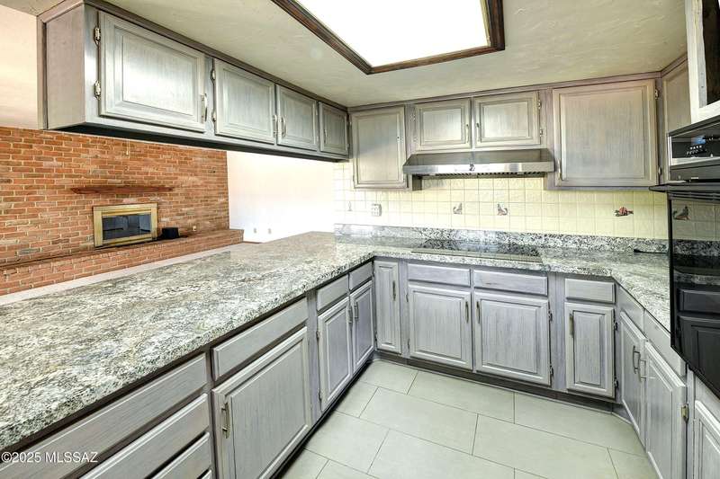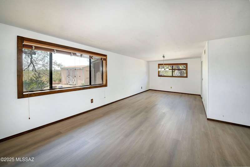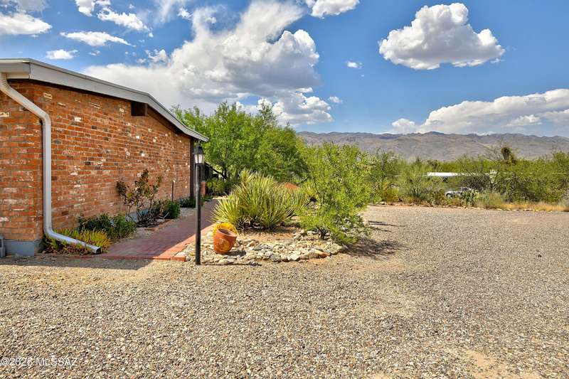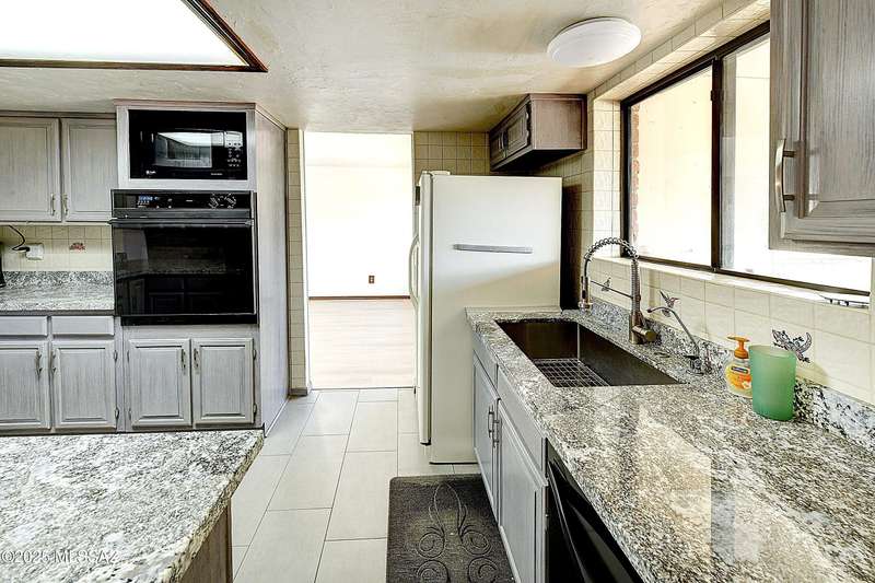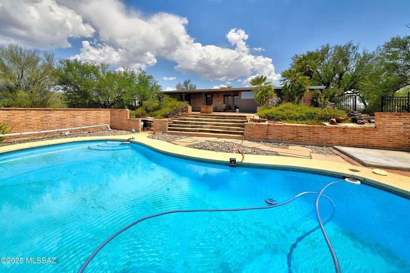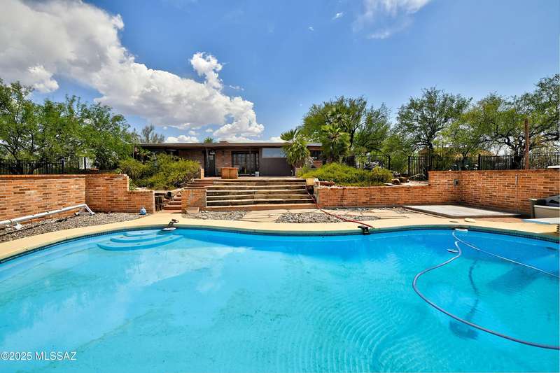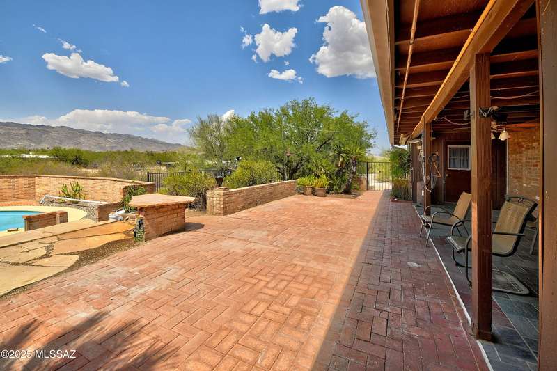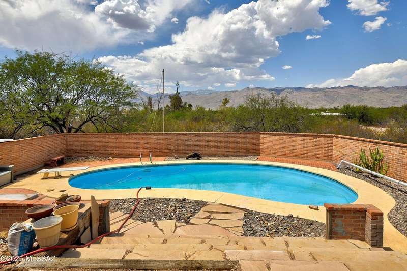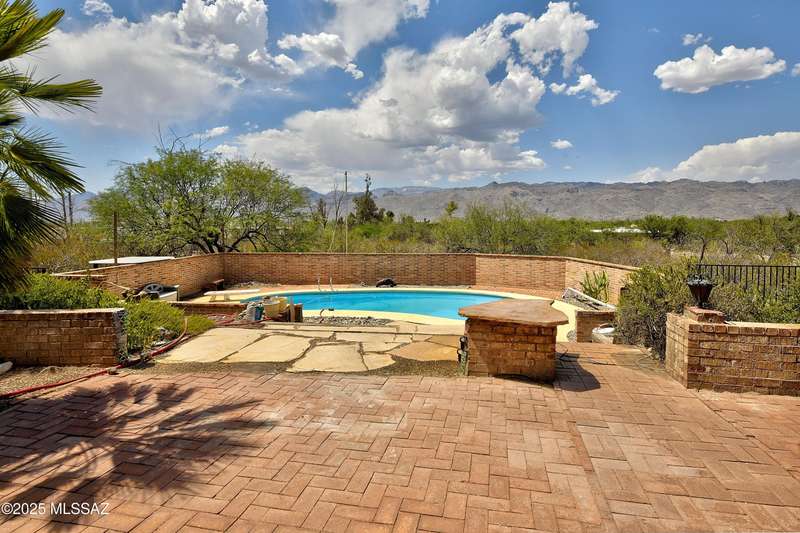 EXPANSIVE MOUNTAIN VIEWS, new LVP flooring and fresh paint welcome you to the desirable Bel Air Ranch Estates. This eastside gem offers comfort & privacy. Charming double-door entry brings you into the spacious living room w/lovely brick fireplace, perfect for cozy evenings. Generous kitchen w/granite counters, induction cooktop, wall oven and plenty of workspace. Primary suite includes large walk-in closet & walk-in shower. Outside, enjoy a sparkling pool, expansive covered patio, brick pavers & dedicated dog run, ideal for outdoor living & entertaining. 1000-gallon rain harvesting tank supports water-wise gardening. Fresh interior paint & new flooring give the home a crisp, move-in-ready feel. With a 2-car garage, ample storage & newer AC, this home offers both comfort & practicality.