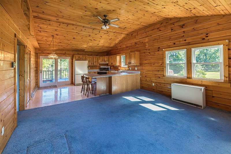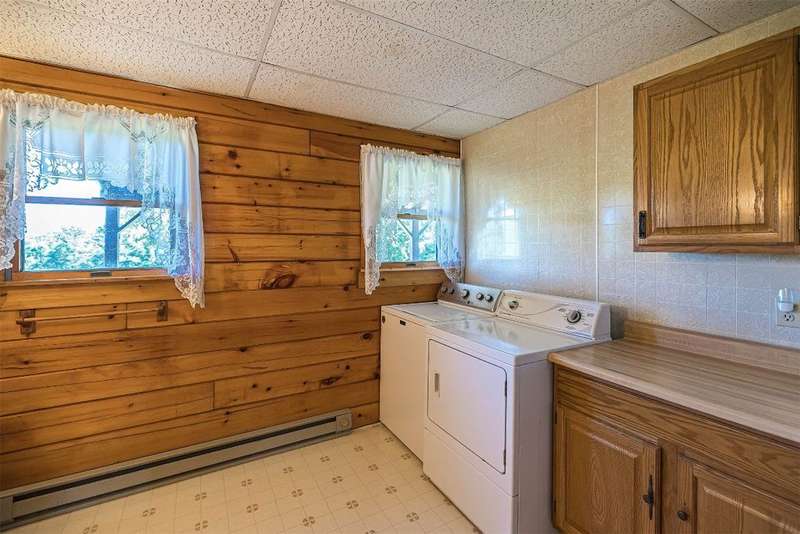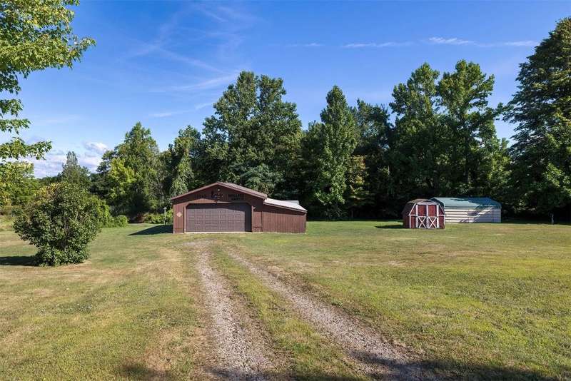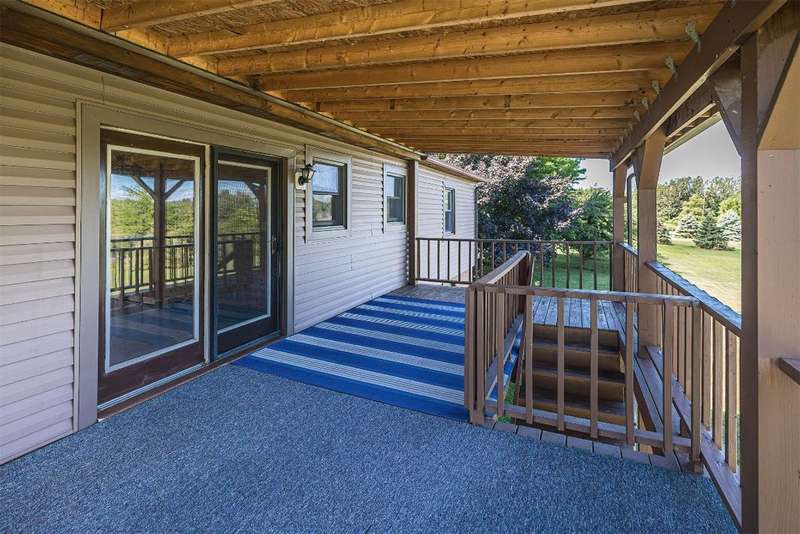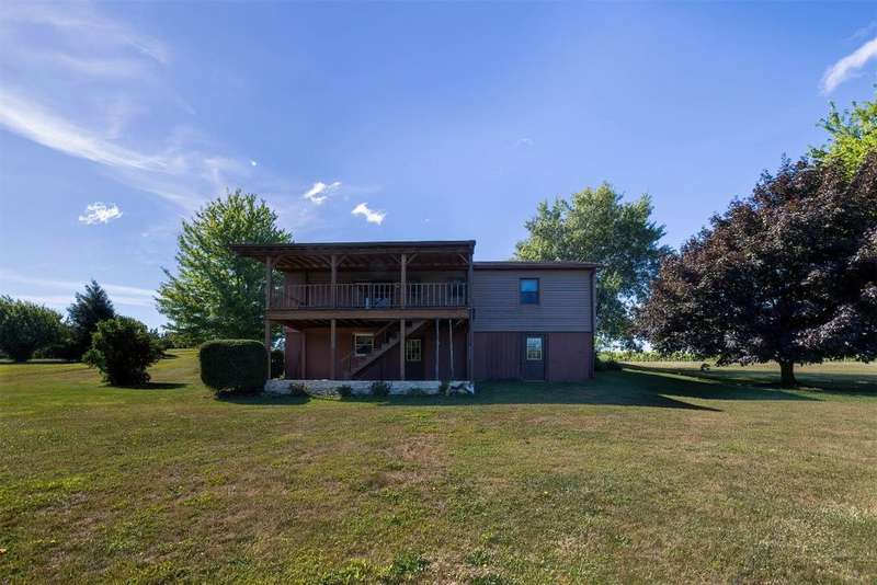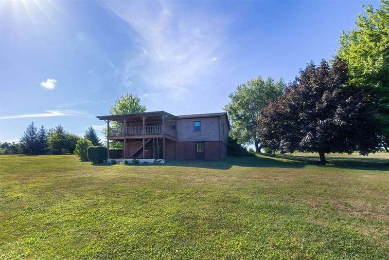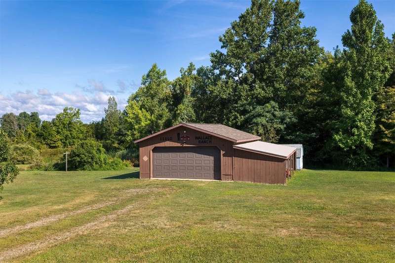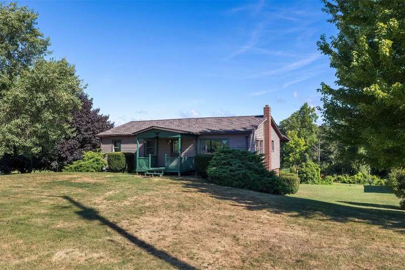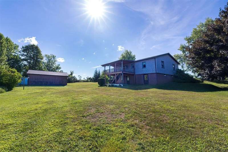 Single owner countryside ranch sitting on over 26 acres of land! Picturesque and private landscape surroundings - includes 2 ponds and plenty of wildlife. First floor features an open layout kitchen and living room with vaulted ceilings and a cabin-like aesthetic. Also includes a large primary and secondary bedroom and full bath/laundry and attached deck with stunning countryside views. Fully finished ground level basement includes an additional kitchen area, living room, full bath and storage area with walkout to the back yard. Add your finishing touches to truly make it your own. Home includes a pole barn with full electric and lean-to covered storage as well as three additional storage sheds - plenty of space for boat storage. Minutes away from the NE marina, public beaches and local wineries. 6.5 acres are located in Chautauqua county, NY and will convey with purchase. Home currently enrolled in Clean and Green. Ideally suited for year round living and for use as a hunting camp.