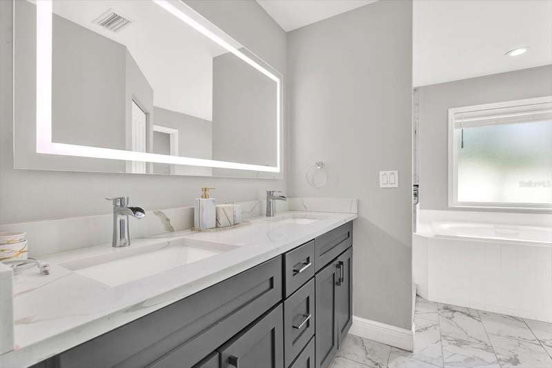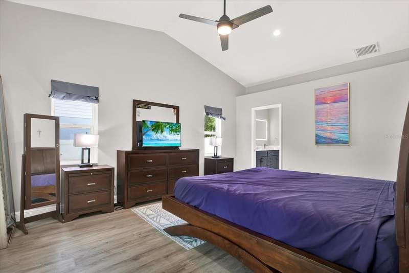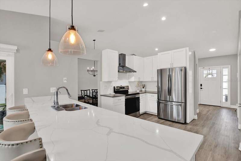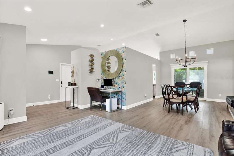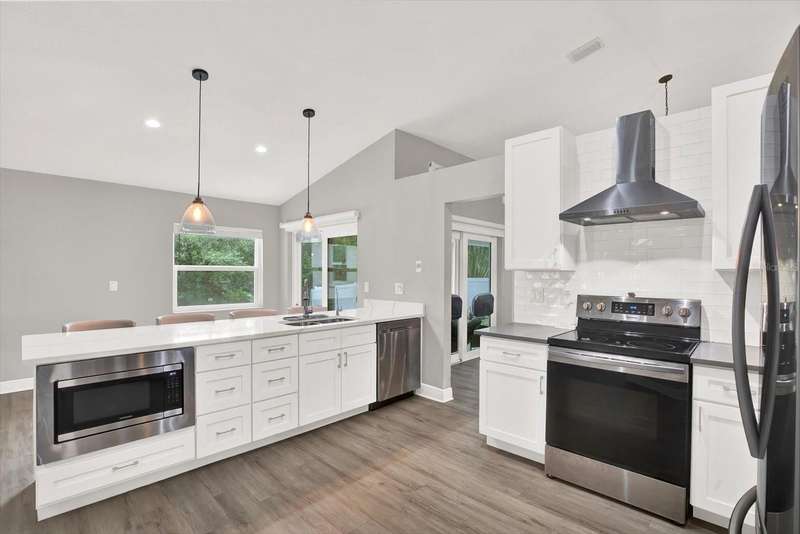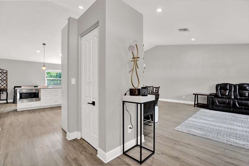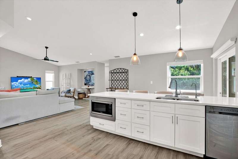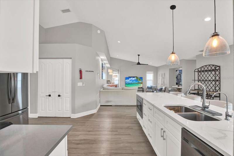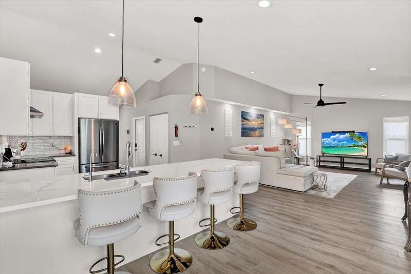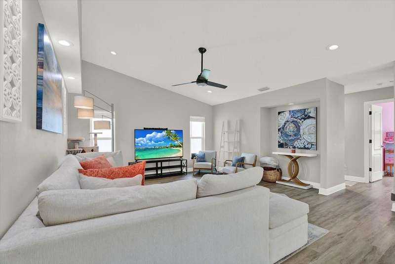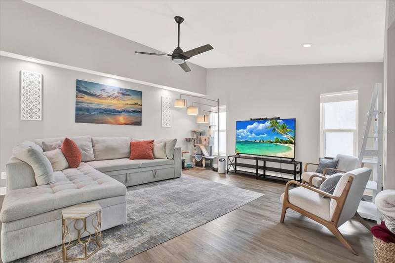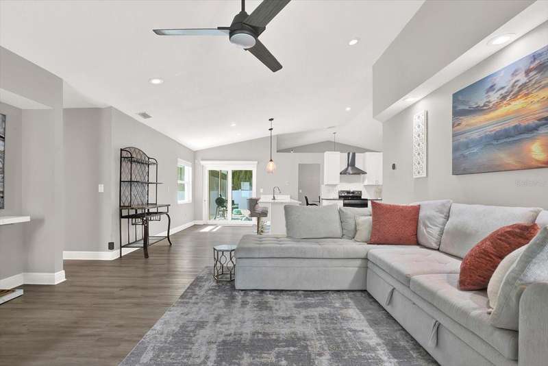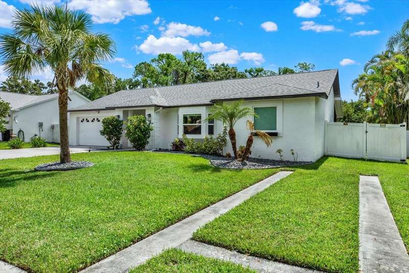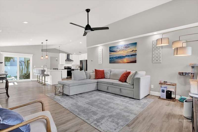 Welcome to this BEAUTIFUL, updated 3-bedroom, 2-bathroom, 2-car garage home located in the highly sought-after Cedar Woods community of Pinellas Park! This meticulously maintained residence offers a spacious open-concept, split-bedroom floor plan with VAULTED CEILINGS AND LUXURY LAMINATE FLOORING throughout. The stylish kitchen is a chef’s dream, featuring sleek stone countertops, a breakfast bar, pantry and stainless-steel appliances. Entertain with ease in the expansive living room, family room and formal dining area. The generously sized primary suite boasts a LARGE WALK-IN CLOSET and a spa-like ensuite bathroom complete with marble floors, walk-in shower and a luxurious soaking tub. Two additional bedrooms are well-appointed and share a beautifully updated full bathroom with dual sinks. Additional highlights include a LARGE INTERIOR LAUNDRY ROOM, water softener, reverse osmosis system in the kitchen, and a full security system with cameras. Enjoy ultimate privacy in the fully fenced backyard, featuring a screened-in porch, cozy fire pit, and ample space to add a pool. Major updates include NEW ROOF, A/C, and WATER HEATER (all 2021) plus HURRICANE IMPACT WINDOWS AND DOORS THROUGHOUT! Ideally situated close to top-rated beaches, shopping, downtown St. Petersburg, Tampa, and more. NO FLOOD DAMAGE FROM HURRICANES! Don’t miss this exceptional opportunity—schedule your private showing today!