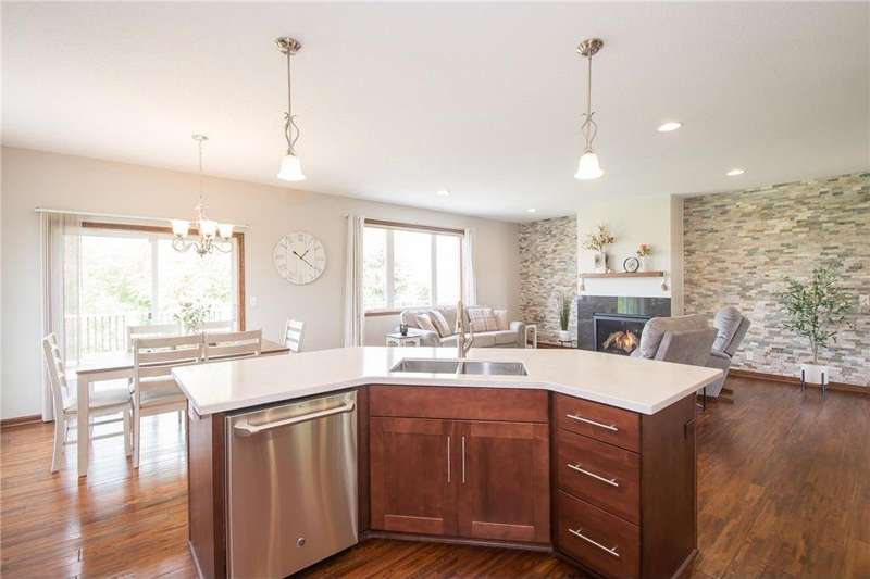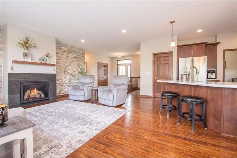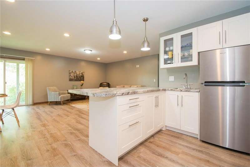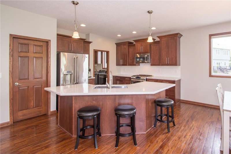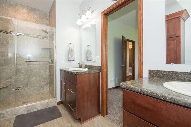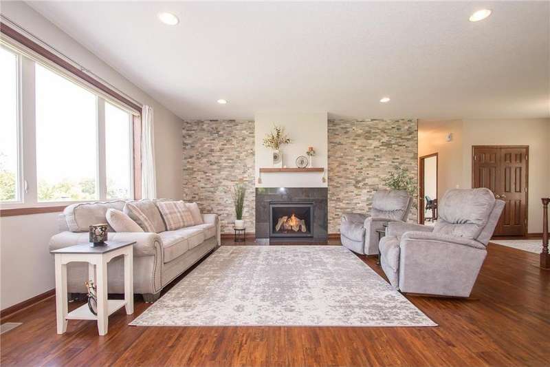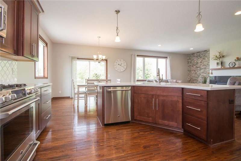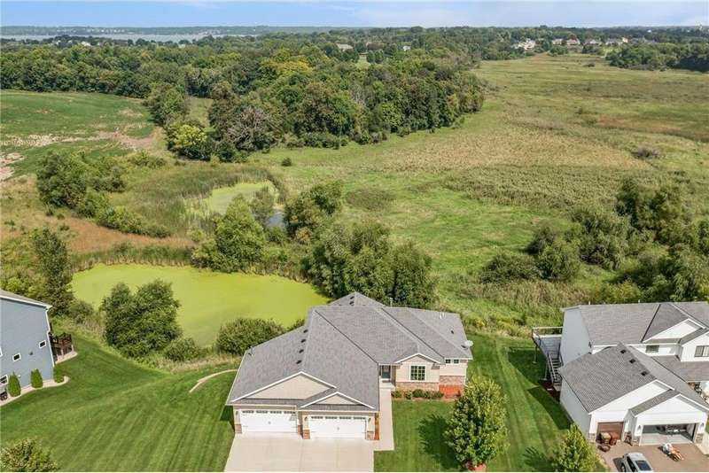 Discover this stunning executive 4-bed, 3-bath walkout rambler in a prime Buffalo location, custom-built by the well-known JP Brooks Builders! Nestled on an oversized 0.46-acre lot, this home offers spectacular nature views, abundant wildlife, and no backyard neighbors – all visible through expansive windows that fill the home with natural light. The open-concept layout seamlessly connects the spacious living, dining, and kitchen areas, with a striking stone accent wall and beautiful fireplace as the centerpiece of the main level living space! The modern kitchen boasts quartz countertops, high-end GE stainless steel appliances, a large island, abundant cabinetry, and a walk-in pantry. The dining area opens to a spacious deck – perfect for entertaining or simply enjoying the outdoors. Two bedrooms are located on the main level, including the primary suite with a walk-in closet and private ¾ bath, featuring a tile-surround shower, dual sinks, and generous storage. A second bedroom and a full bath with tile-surround complete the main floor. The convenient laundry room includes an LG washer/dryer, utility sink, and closet space. Solid-core six-panel doors and French-style closet doors throughout highlight the home’s quality craftsmanship! The finished walkout lower level is ideal for entertaining, complete with a wet bar featuring a sink, fridge, extensive counter space, and additional IKEA® cabinets. A spacious family room offers a cozy retreat, and two large bedrooms with ample closets provide flexibility. A full bath with a tile-surround tub, solid-surface countertops, and extra storage completes the lower level. A spacious insulated and heated 4-car garage (40’ x 26’) is equipped with a sink and floor drain, and the large concrete driveway, storage shed, in-ground sprinkler system, perennials, brick and stone exterior accents, and beautifully designed landscaping elevate the exterior appeal! The home’s maintenance-free vinyl siding has been professionally cleaned along with the windows. Recent updates in 2025 include a brand-new water softener, A/C, and sump pump – all giving peace of mind for years to come. With 2,858 finished square feet, this second-owner home is move-in ready, thoughtfully updated, and includes a one-year home warranty. Conveniently located just minutes from golf courses, lakes, parks, and downtown Buffalo with retail, schools, medical, and more!