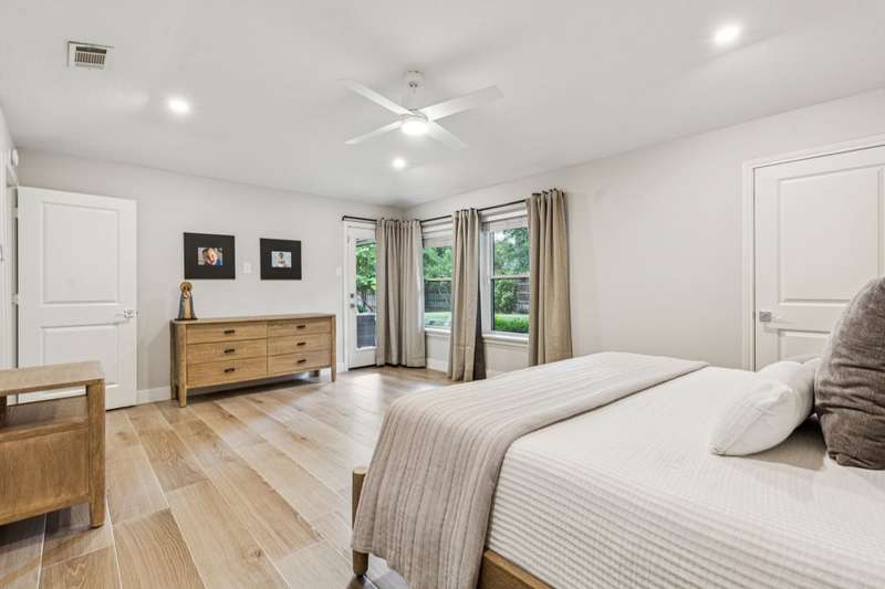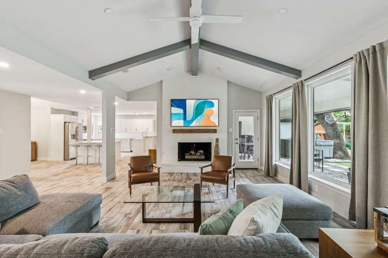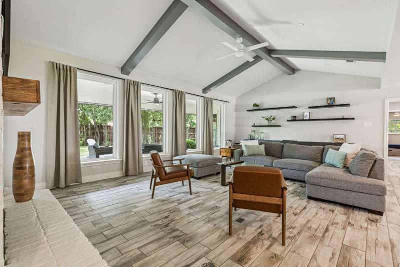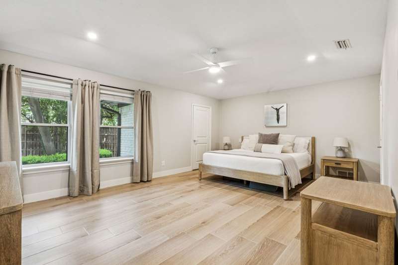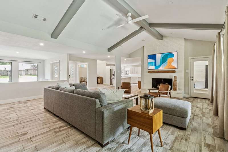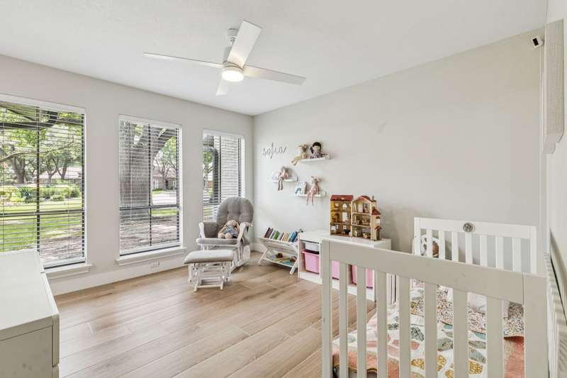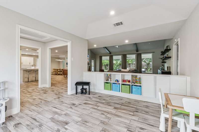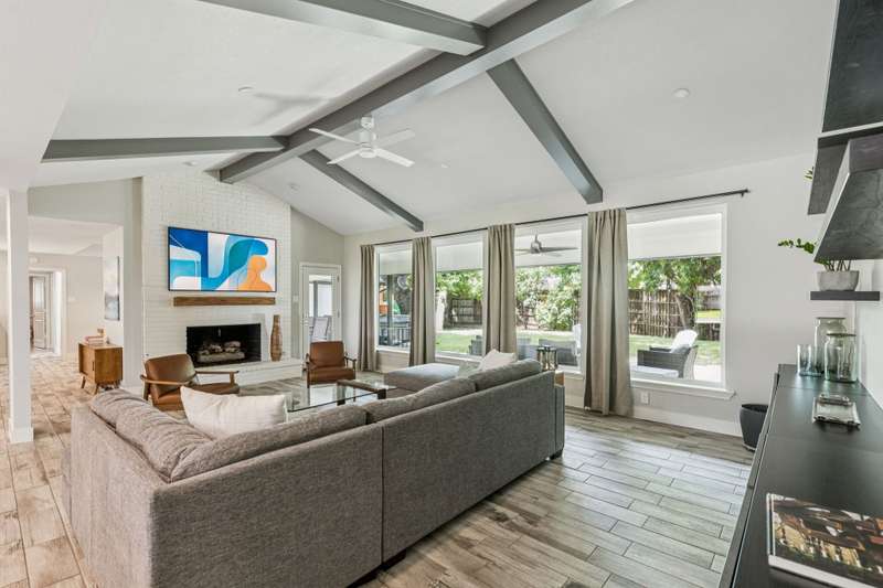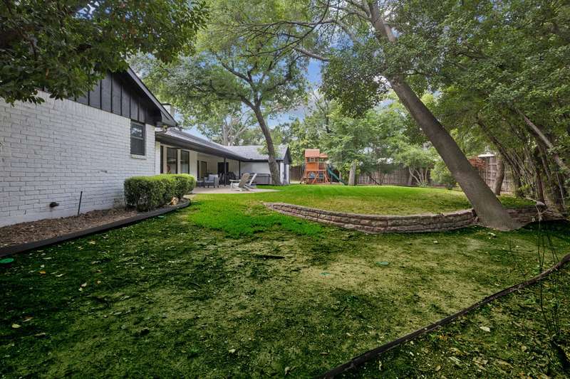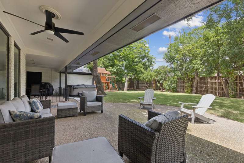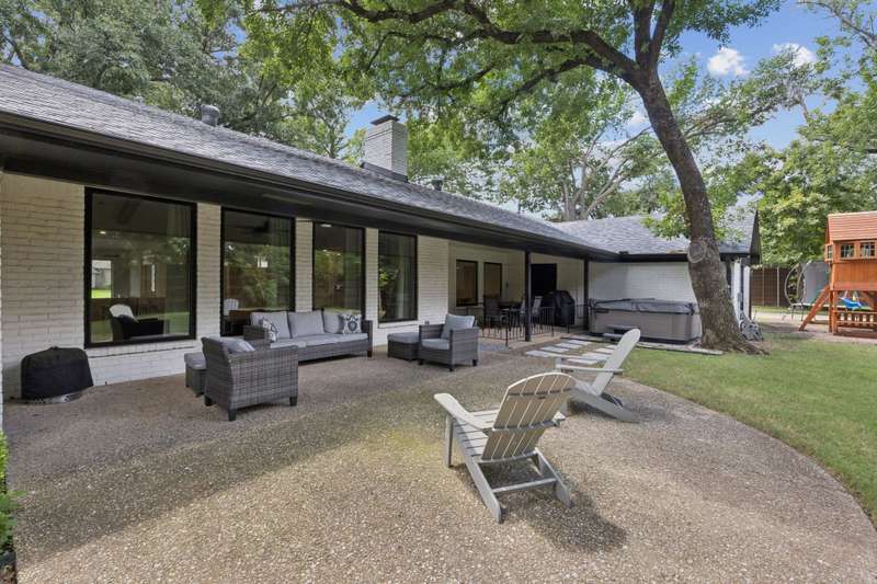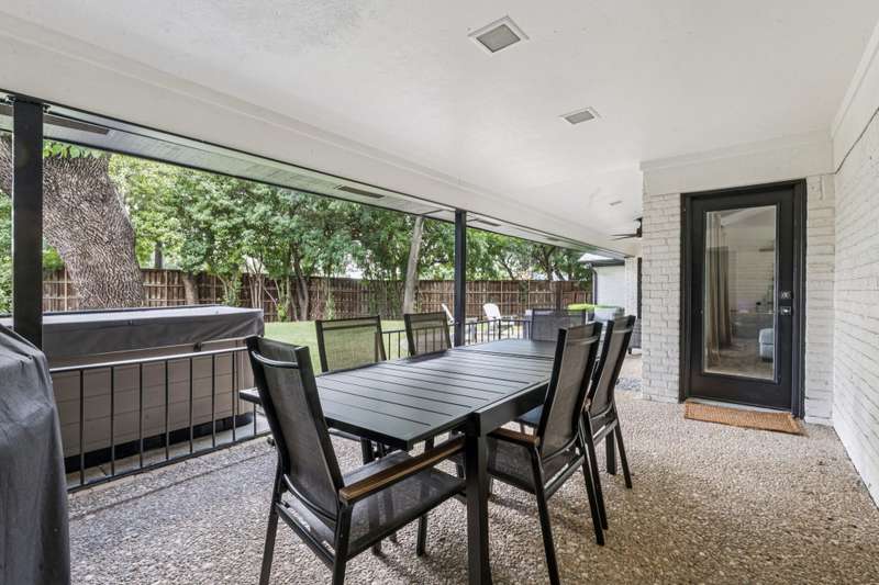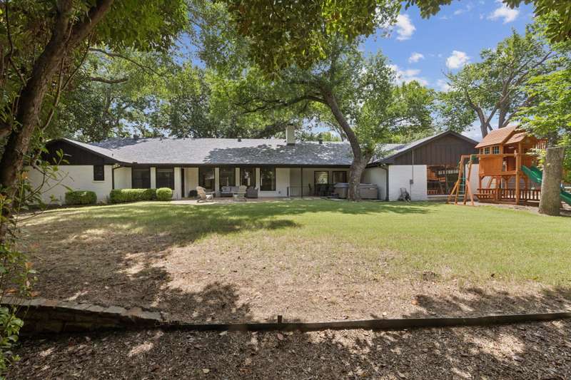 Combining timeless ranch style with modern finishes, this home sits on nearly half an acre of land at the end of a quiet cul-de-sac, surrounded by majestic, mature trees. Its truly a must-see property that wont last long! Step inside to an open floor plan designed for modern living and effortless entertaining. The spacious living room features vaulted ceilings, a cozy gas fireplace, and expansive windows overlooking a beautiful backyard. Large windows bathe the space in natural light while framing the lush, tree-filled views. The gourmet kitchen is the heart of the home, showcasing quartz countertops with a striking marble island, stainless steel appliances, and ample white cabinetry for storage. The primary suite is a true retreat, complete with a private sitting area, direct access to the covered patio and backyard, a fully updated bath with dual vanities, and an oversized walk-in closet. Relax and unwind in style with an outdoor oasis right outside your bedroom door.This flexible layout includes four oversized bedrooms, plus don't miss the exercise room adjacent to the primary. The guest bedroom with a dedicated full bath is ideally separated from the other bedrooms for privacy. The outdoor space is just as impressive as the interior, with nearly half an acre to enjoy, featuring a shaded, tree-filled setting ideal for gatherings or quiet evenings on the covered patio, extra green space, and a gated garage entry. Meticulously updated, this home offers peace of mind with a long list of improvements, including the roof, HVAC units, air ducts and attic insulation, HVAC system, exterior paint, and updated back windows and patio doors. Updated light fixtures inside and out complete the modern look. Enjoy a fantastic location close to top-tier private schools with quick access to the tollway and 75, and just minutes from shopping, restaurants, and entertainment.