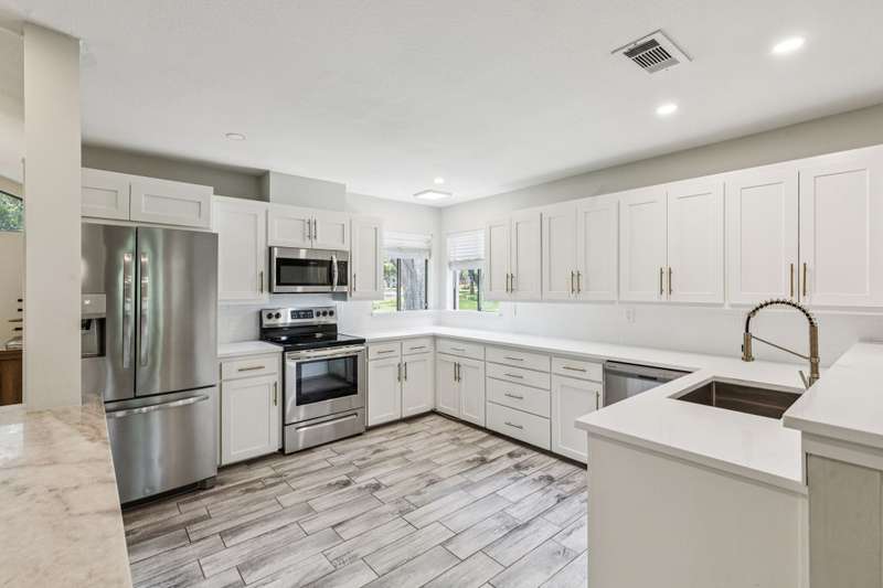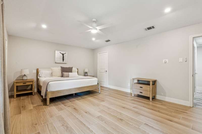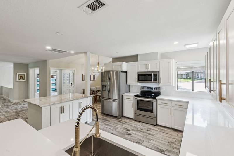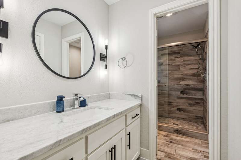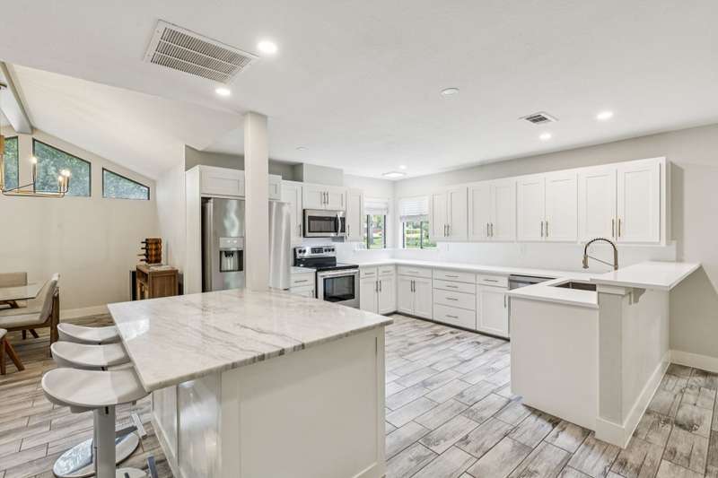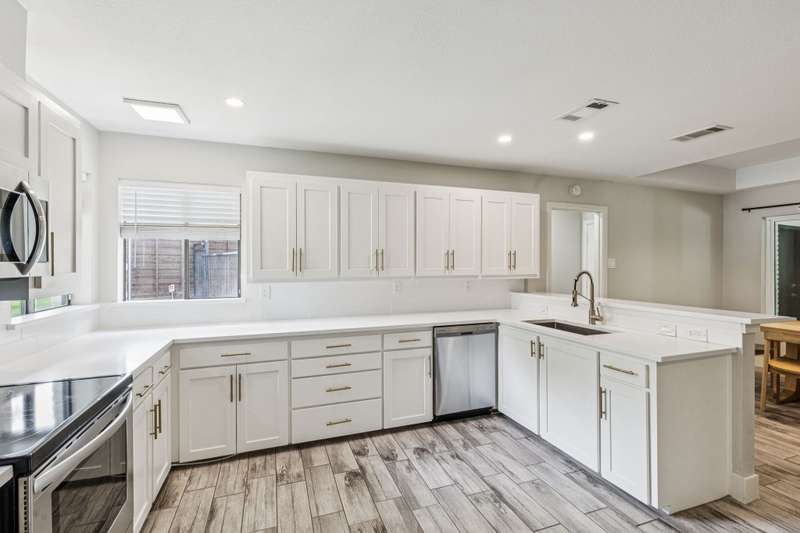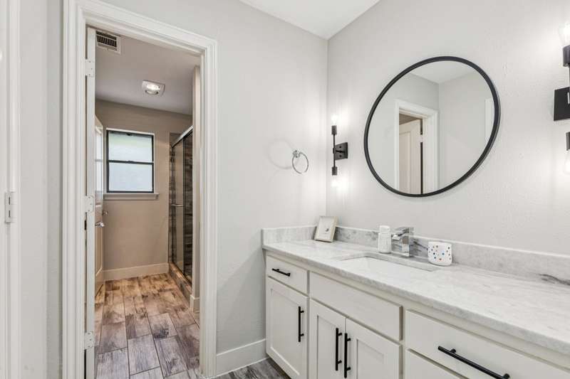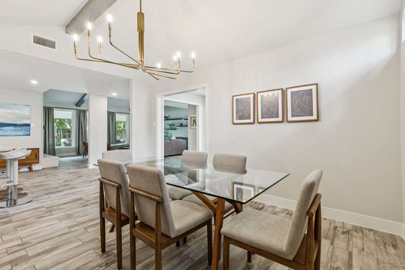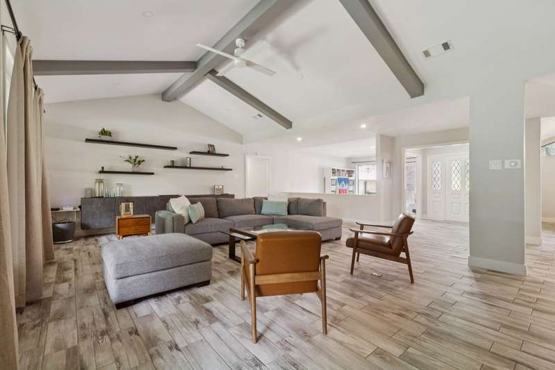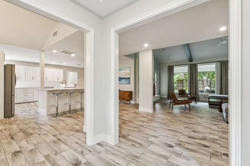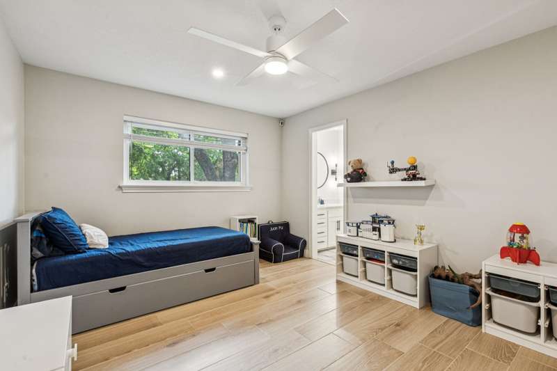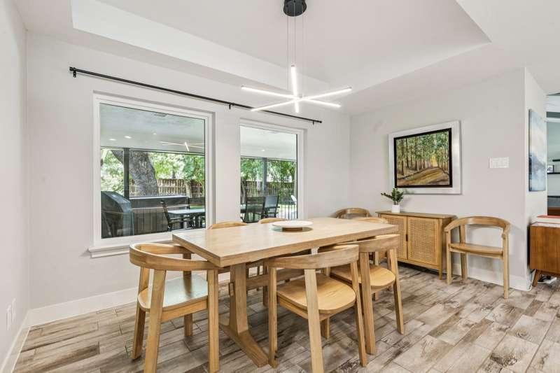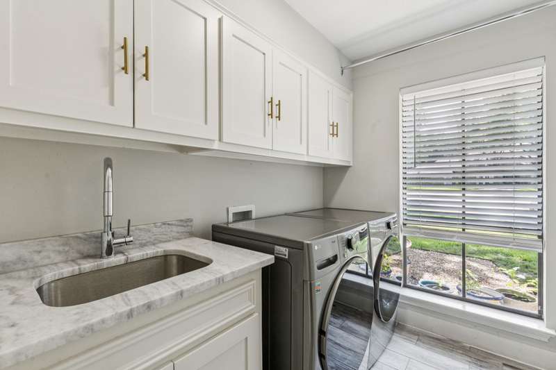 Combining timeless ranch style with modern finishes, this home sits on nearly half an acre of land at the end of a quiet cul-de-sac, surrounded by majestic, mature trees. Its truly a must-see property that wont last long! Step inside to an open floor plan designed for modern living and effortless entertaining. The spacious living room features vaulted ceilings, a cozy gas fireplace, and expansive windows overlooking a beautiful backyard. Large windows bathe the space in natural light while framing the lush, tree-filled views. The gourmet kitchen is the heart of the home, showcasing quartz countertops with a striking marble island, stainless steel appliances, and ample white cabinetry for storage. The primary suite is a true retreat, complete with a private sitting area, direct access to the covered patio and backyard, a fully updated bath with dual vanities, and an oversized walk-in closet. Relax and unwind in style with an outdoor oasis right outside your bedroom door.This flexible layout includes four oversized bedrooms, plus don't miss the exercise room adjacent to the primary. The guest bedroom with a dedicated full bath is ideally separated from the other bedrooms for privacy. The outdoor space is just as impressive as the interior, with nearly half an acre to enjoy, featuring a shaded, tree-filled setting ideal for gatherings or quiet evenings on the covered patio, extra green space, and a gated garage entry. Meticulously updated, this home offers peace of mind with a long list of improvements, including the roof, HVAC units, air ducts and attic insulation, HVAC system, exterior paint, and updated back windows and patio doors. Updated light fixtures inside and out complete the modern look. Enjoy a fantastic location close to top-tier private schools with quick access to the tollway and 75, and just minutes from shopping, restaurants, and entertainment.