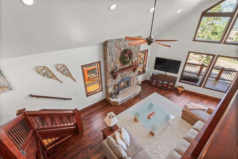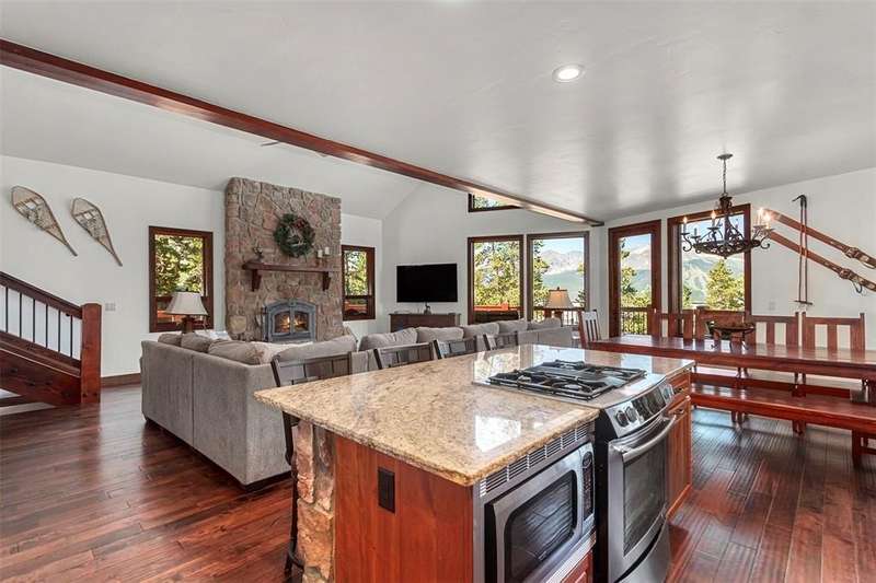 This home has all of the features you're looking for in a mountain sanctuary. Perched high and boasting massive views of Breckenridge Ski Area and the Ten Mile Range. The large wraparound deck has a covered grilling area and a protected hot tub. The floor plan features 5 bedrooms that are well spaced across three floors and a large open great room. Perfect for gathering and then retreating to your private quarters. The bonus loft space works well for extra sleeping space, office space, or an additional living. Downstairs you'll find an additional living space as well as a large mud room perfect for gear storage. High end finishes throughout. This home also features a large, detached two car garage. Easy walk to the free bus to town and the ski area.