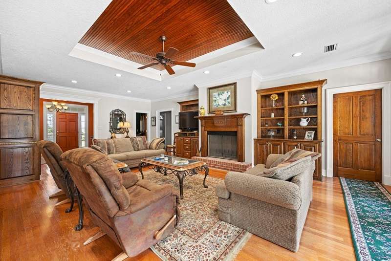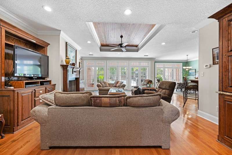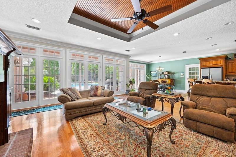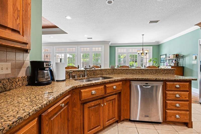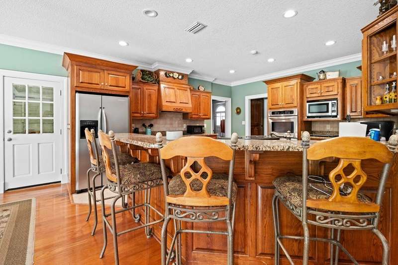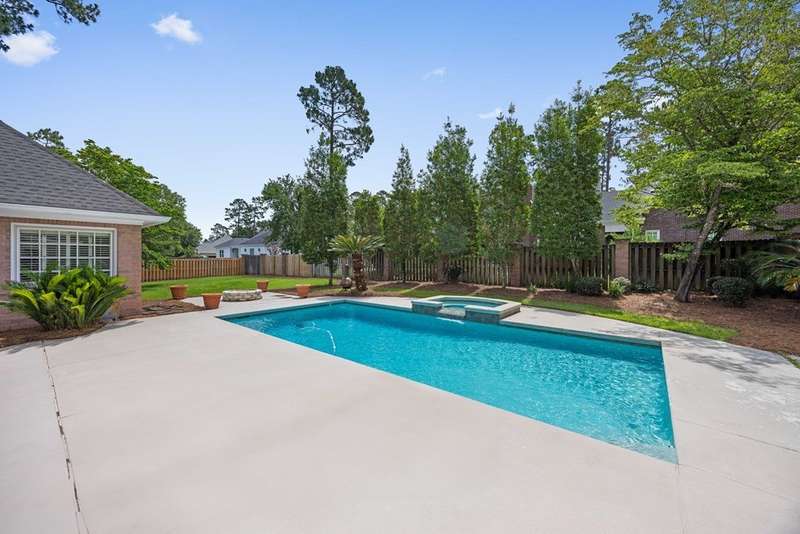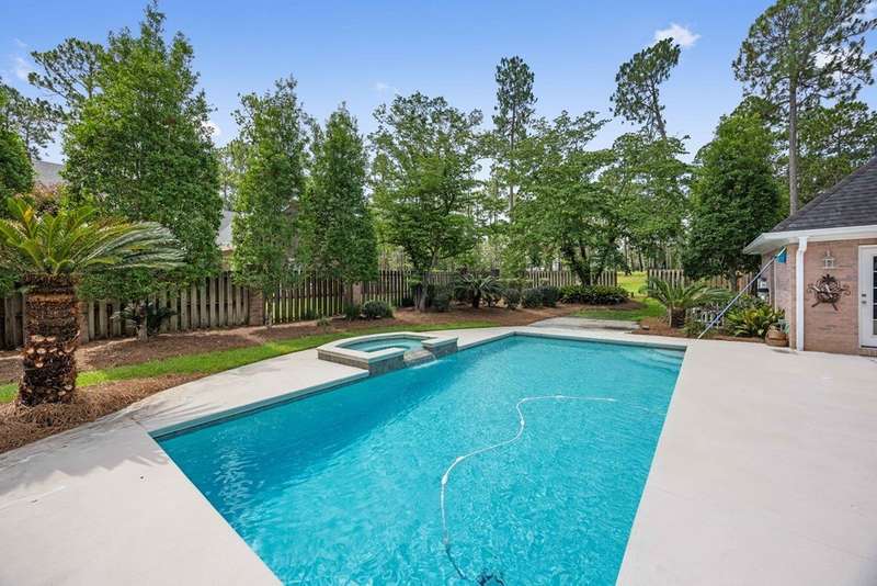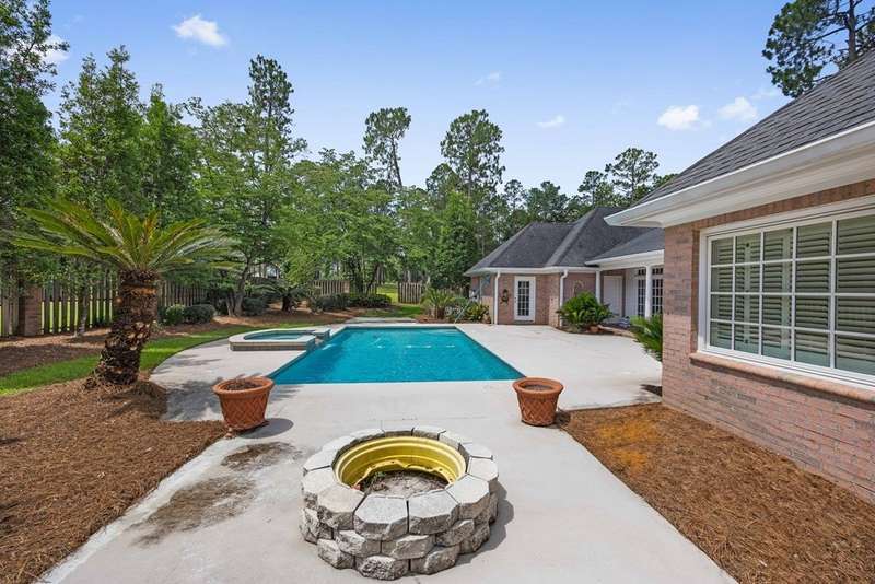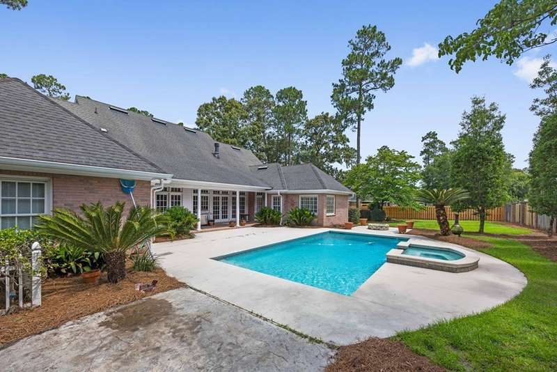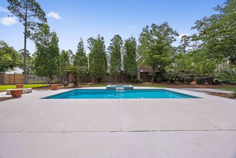 Custom built all brick home located on a nice private corner lot with 4 bedrooms and 3.5 baths that offers a open floor plan and flows with style and comfort. Spacious kitchen with granite counter tops, double ovens, eat at bar all overlooking the breakfast area and large great room with fireplace and wet bar that offers a relaxing view through the numerous windows of the private backyard, gunite pool with hot tub and adjacent fire pit surrounded by saga palms and holly trees. Very nice hard wood flooring through-out, spacious master suite with walk in closet and master bath with double vanity, garden tub and extra large tile shower. All other bedrooms are a very nice size with walk-in closets and the 4th bedroom is located upstairs with a full bath and very large closet area. The 4th bedroom can serve as a bonus room, playroom, media room, entertainment room or man cave. This home also offers an extra extra large laundry room complete with a sink, lots of cabinets and an extra large utilty room for storage or workshop off of the oversized double garage and a pool room located under the adjacent covered back porch that is perfect for grilling or just relaxing. Amenties include 24/7 gated security, playgroud, pools, tennis courts, pickleball courts, fitness center, chapel and The Oaks Restaurant. Come see this beautiful relaxing home and all that Kinderlou Forest has to offer.