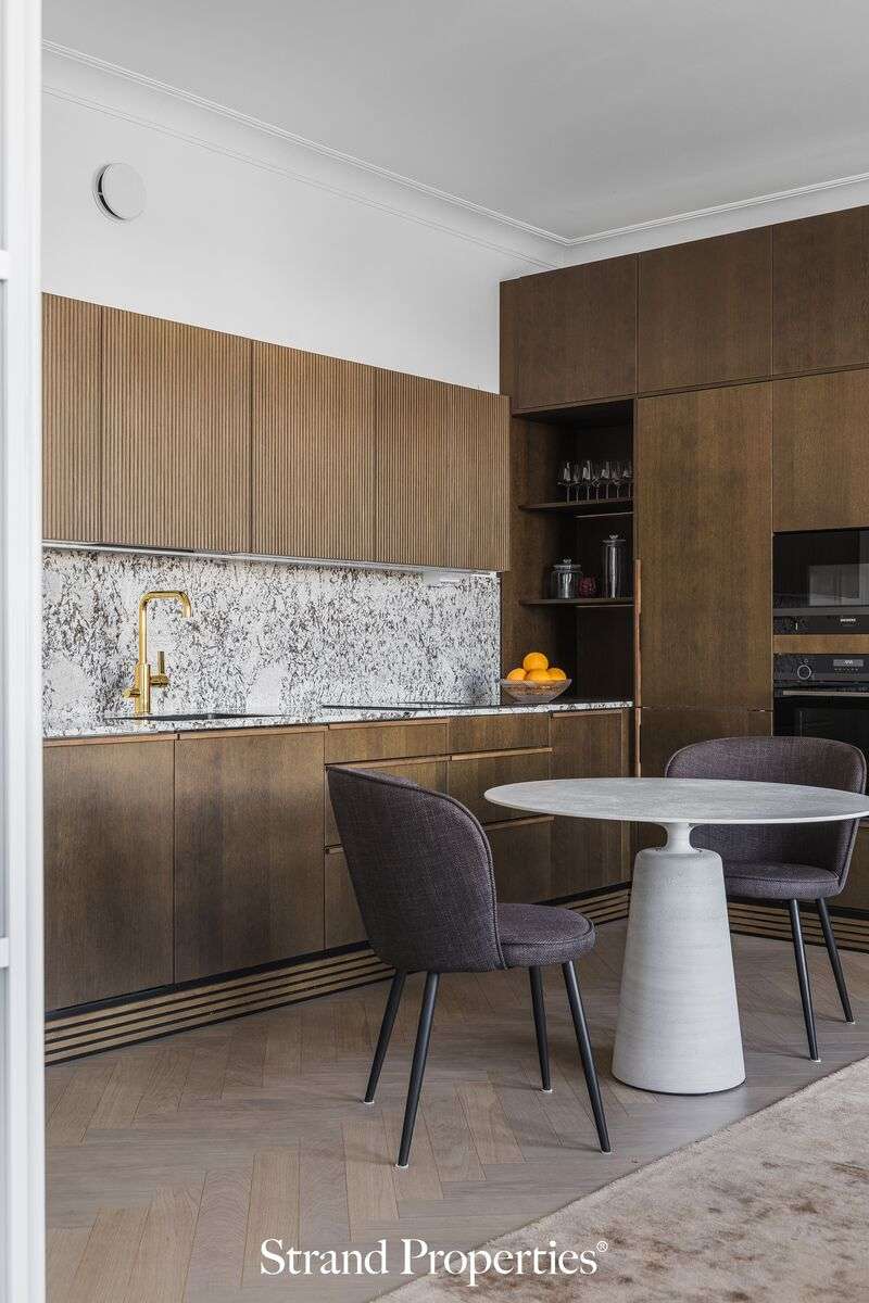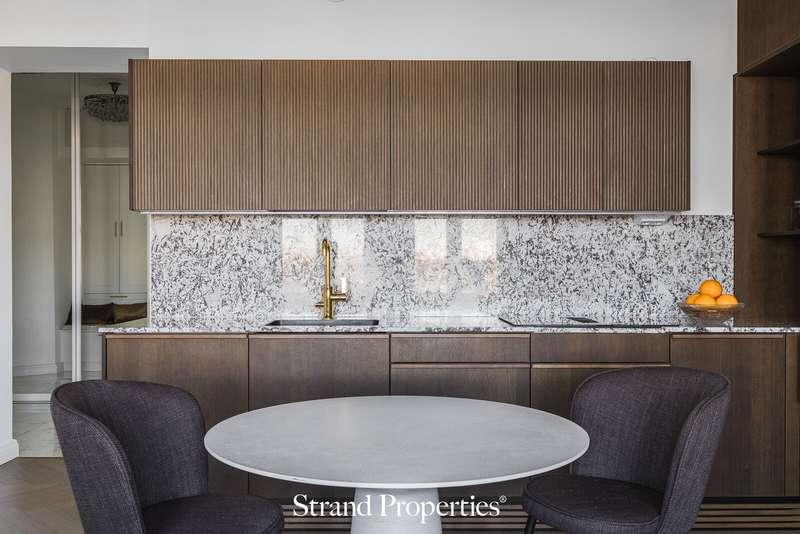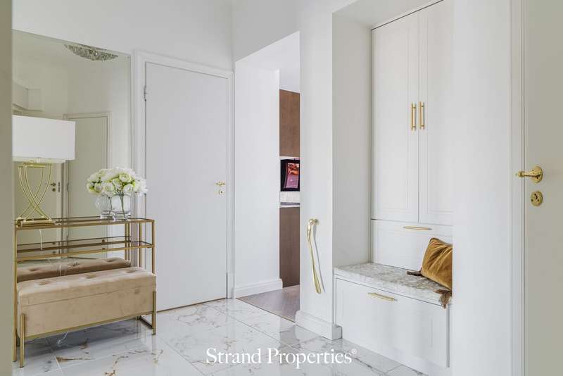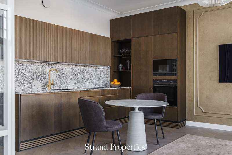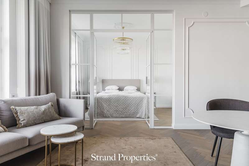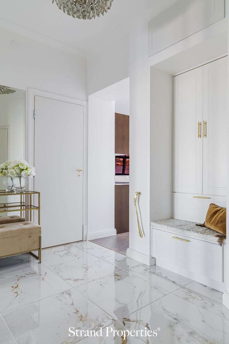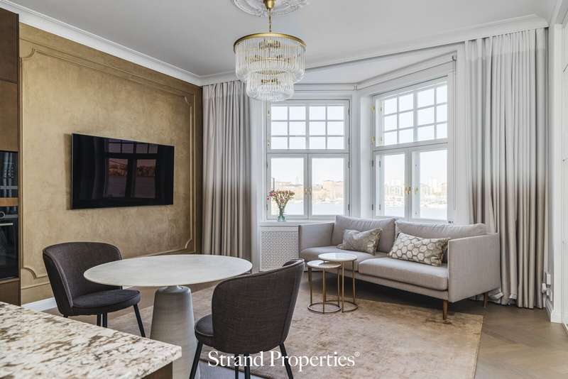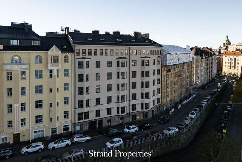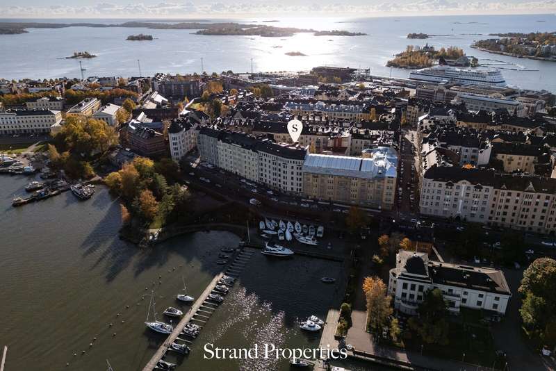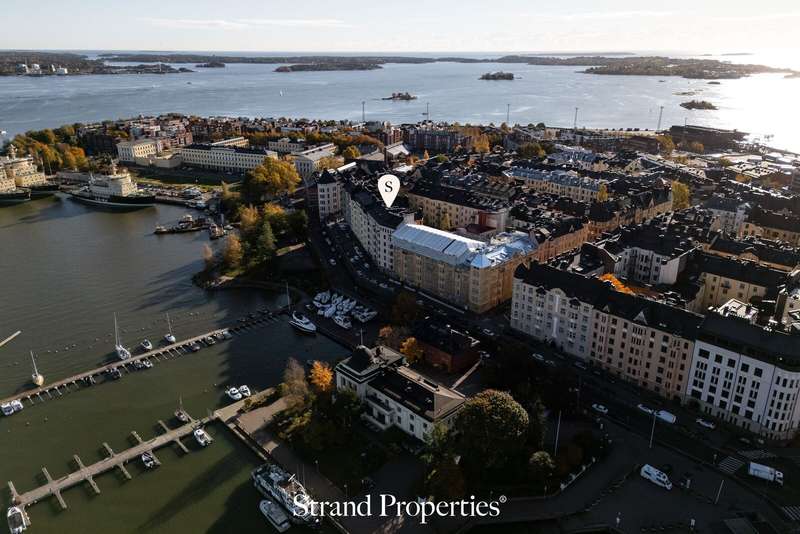 Upea koti meren äärellä Katajanokalla Tämä kaunis jugend-koti sijaitsee keskeisellä mutta rauhallisella Laivastokadulla, vain askeleiden päässä merestä, puistoista ja kaikista Katajanokan palveluista. Sijainti yhdistää täydellisesti arvokkaan kaupunkiasumisen ja rauhallisen ympäristön. Asunto on remontoitu täysin vuonna 2022 erittäin laadukkailla materiaaleilla ja harkituilla yksityiskohdilla. Kauniit kipsikoristeet seinissä ja koristeelliset kattorosetit tuovat ajattoman arvokkuuden, joka nivoutuu saumattomasti moderniin käyttömukavuuteen. Olohuone avautuu kolmella suurella merelle suuntautuvalla ikkunalla, ja erkkeri lisää tilaan näyttävyyttä sekä viihtyisyyttä. Sisääntulo asuntoon on erityisen vaikuttava, jo ensiaskeleella aistii kodin huolitellun ja ylellisen tunnelman. Taloyhtiö on erinomainen: kaikki suuret remontit on tehty, viimeisimpänä linjasaneeraus vuonna 2024.
