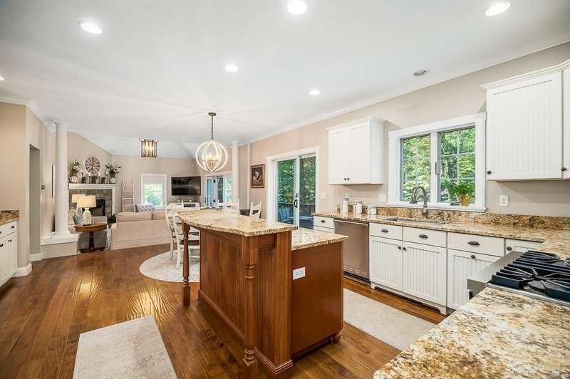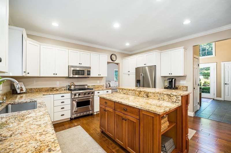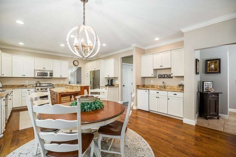 The home’s beautiful façade, professional landscaping, and grand arched entry make a memorable first impression in one of Middleton's most desirable neighborhoods. The main level boasts an inviting foyer with soaring ceilings. The welcoming kitchen features granite countertops, white cabinetry, and a warm wood island that adds both charm and functionality. Stainless steel appliances and hardwood floors complete the space. The kitchen opens to a comfortable, fireplaced family room, perfect for gathering with loved ones, and offers easy access to a large deck for outdoor dining and relaxation. Also included on the 1st level are a formal dining room off the kitchen, a living room & home office. Upstairs, you’ll find a primary with en suite bath, 3 more comfortable bedrooms and a spacious room over the garage that’s ideal for a home gym or flexible bonus space, along with a convenient laundry room. The finished lower level features a custom media room designed for movie nights.