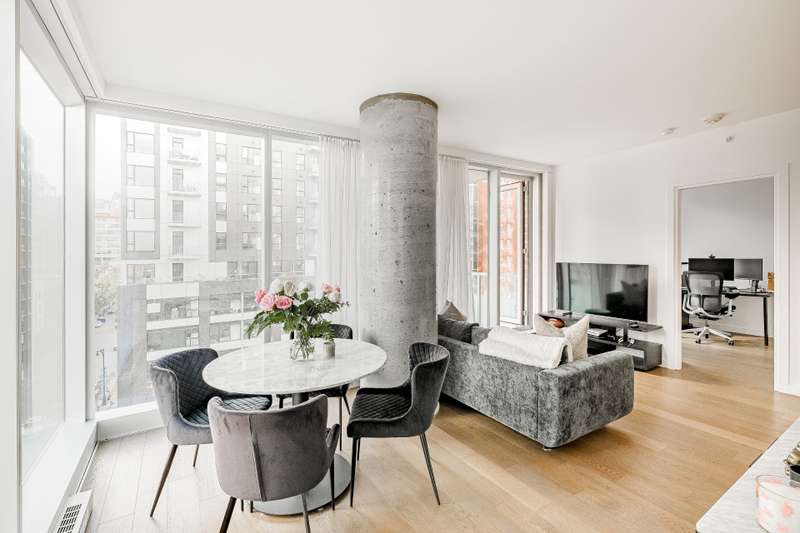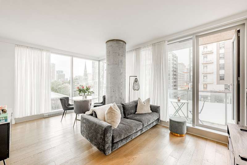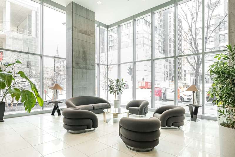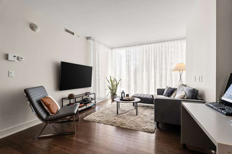 Stylish partially-furnished corner unit at YUL with 2 bedrooms, 1 bathroom, and bright, open living space. Floor-to-ceiling windows flood the unit with natural light and offer dynamic city views. Includes indoor parking and private locker. Enjoy world-class amenities: indoor pool with multiple spas, sauna, steam room, fully equipped gym, sky lounge with BBQ, and a 23,000sft. private garden designed by Armani/Casa. Located just steps from Lucien-L'Allier metro, REM, Concordia, Bell Centre, shopping, dining, and vibrant nightlife. Ideal for investors, students, or professionals seeking luxurious downtown living in a high-end, secure building.