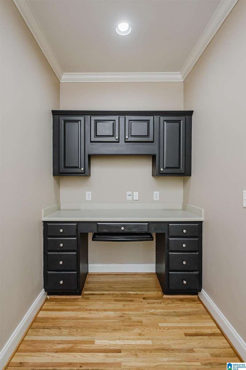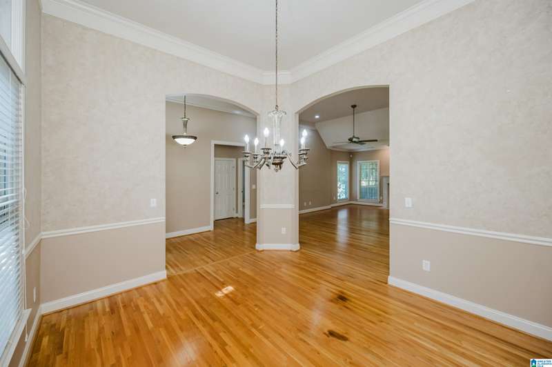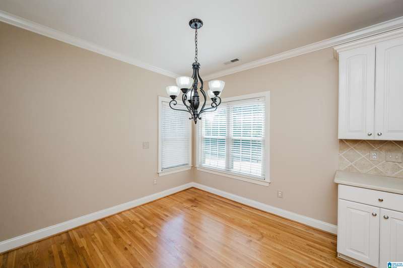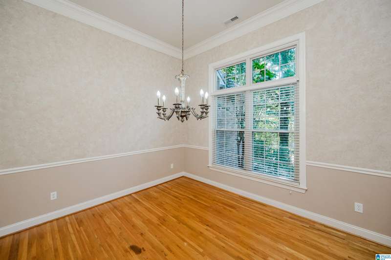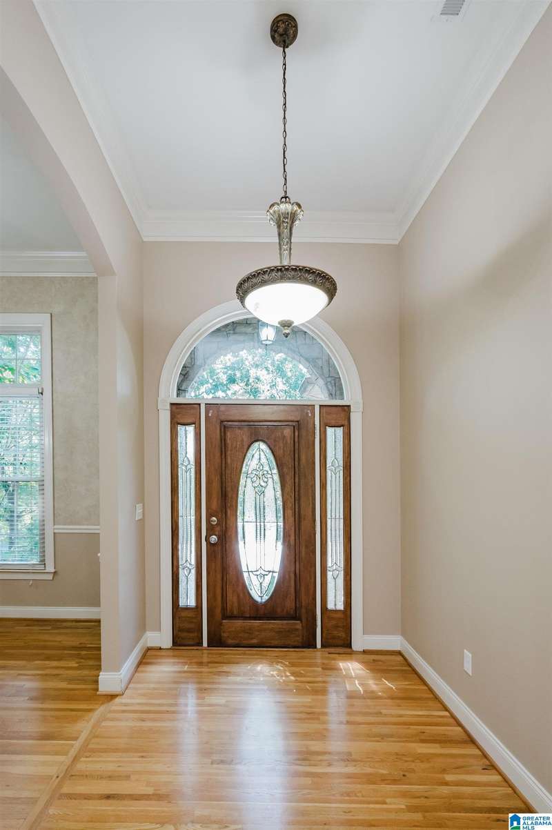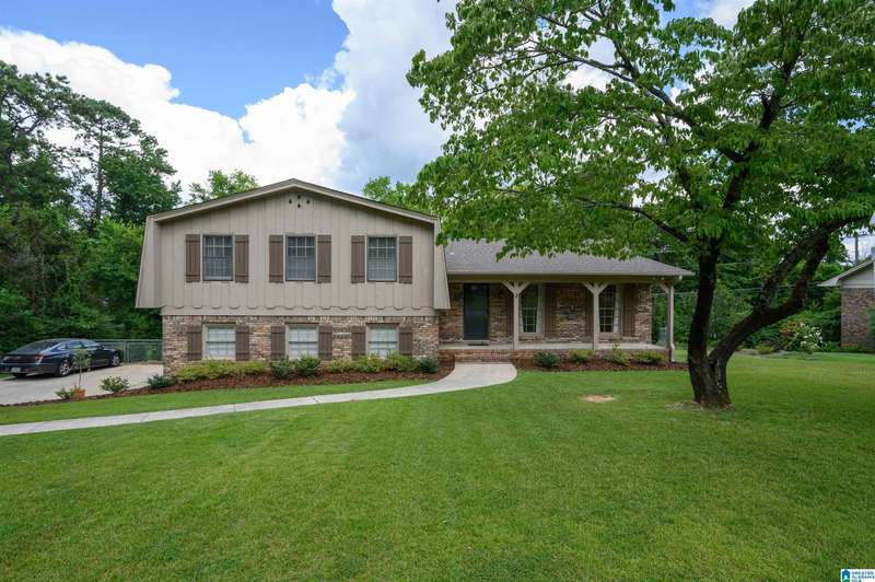 Amazing floorplan with main level living plus versatile spaces upstairs and down. This full brick beauty sits on a half acre lot in the desirable Woodlands of Hoover. The main level includes a 2 car garage, master suite with a sitting area and glamorous bath, kitchen with all the cabinets and counter space you could need, a huge pantry, laundry room with sink, dining room open to the vaulted greatroom, office nook, bedrooms 2 and 3 and a full bath. Off the living area is a spacious screened porch overlooking a very usable yard with privacy and a pretty wooded view past the level landscaped area. You will find a big bonus room up perfect for a craft room, man-cave or bunk room, plus the daylight basement with a den, bedroom and bath-ready for in-laws, guests or teens. Walk right out to the peaceful quiet covered patio with a swing. Quality finishes, gorgeous hardwoods, neighborhood pocket park, streetlights plus a 3rd garage bay down for your workshop & storage. A must see!