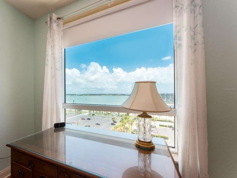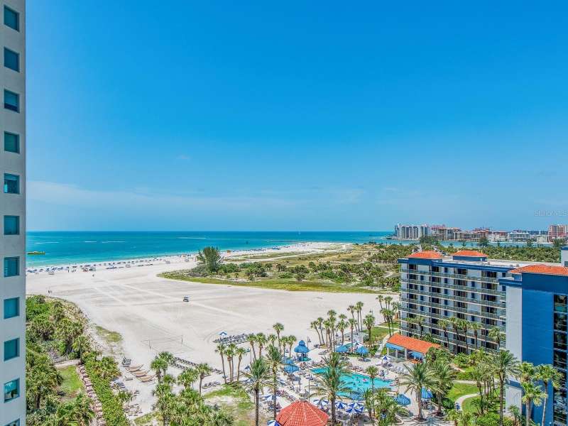 WELCOME to one of the most prestigious BEACH FRONT development located in all of Tampa Bay / Clearwater / St. Pete, The GRANDE on SANDKEY. Experience the pinnacle of coastal elegance in this prestigious Gulf-front condo on Sand Key. Boasting breathtaking panoramic views of the Gulf of Mexico and serene intracoastal waters, this impeccably maintained residence offers the ultimate in sophisticated beach living. This charming and well maintained 2 bedroom, 2 bath, and just under 2,000 sq ft possesses the most spectacular views in the Grande. Unobstructive views ranging from the Northeast (in land and intracoastal waterways to the Northwest (including Clearwater beach and the open waters of the Gulf). Upon entering your home you will quickly understand its value in which your eyes are captured to those amazing views. The interior flooring contains both ceramic and engineer wood in the bedrooms. The living area features a bright, eye appeasing paint scheme, along with crown molding. The Kitchen contains stainless steel appliances, ceramic tile flooring, light brown cabinetry, Corian countertops, and plenty of open views of the surrounding area and intracoastal waterways. The primary bedroom, quite spacious, also includes engineer wooden flooring, large walk-in closet and a separate reach in closet, a full size bath with walk-in shower and a separate garden tub, along with dual sink countertop. An additive bonus to the primary bedroom is an additional balcony that faces the East for those morning sunrises and afternoon shade. The den/office is also flexible to be come a 3rd bedroom (as this unit has displayed) and opens up to the wrap around balcony like that of the living room and kitchen area. Extras include: a full size laundry room, newer AC and water heater, personal environmental controlled storage (garage area) and dedicated parking space (101). The Grande's superb amenities include: two swimming pools, large outdoor spa, cabanas, outdoor pavilion for your grilling pleasure, fitness center, tennis courts, spacious social room for gatherings or events, billiard room, concierge services, and 24 hour security. In In addition, the Sand Key Plaza (directly across the street) houses small boutiques, several restaurants, and Sand Key Realty. Take a tranquil stroll on Sand Key beach, or travel 1 mile North to visit North Americas #1beach. As the day comes to a conclusion, you will witness the most serene and majestic sunsets while relaxing by the pool side or your wrapped around balcony. This exceptional property is more than just a home—it's a lifestyle. Live the dream with the sounds of the waves as your soundtrack and the beauty of the sea as your backdrop.