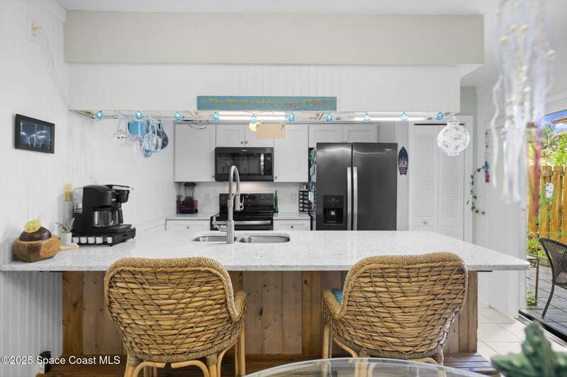 Imagine watching the Christmas Boat Parade right from your community dock! Welcome to this beautifully updated 2 bedroom, 2 bath townhouse in desirable downtown Cocoa Beach! Step inside to discover a modern kitchen featuring cut glass, resin countertops and stainless steel appliances. Tile and wood-look vinyl flooring throughout creates a warm and inviting atmosphere. Both bathrooms have been thoughtfully updated for a fresh, contemporary feel, while a 2022 AC and 2023 water heater ensure comfort and peace of mind. Ea Enjoy the Florida lifestyle by relaxing in your private courtyard or enjoy Banana River access, a private dock, two pools, clubhouse, and convenient kayak storage. Take advantage of the HOA-covered amenities, including roof and structure maintenance, grounds keeping, cable TV, trash, water, and sewer. The community also features a full-time manager and a car wash area. Just a short walk to the beach and close to all that Cocoa Beach has to offer, this home has it all. Just a short walk to the beach and close to shopping, dining, and all that Cocoa Beach has to offer. This townhouse is the perfect blend of comfort, convenience, and coastal living.