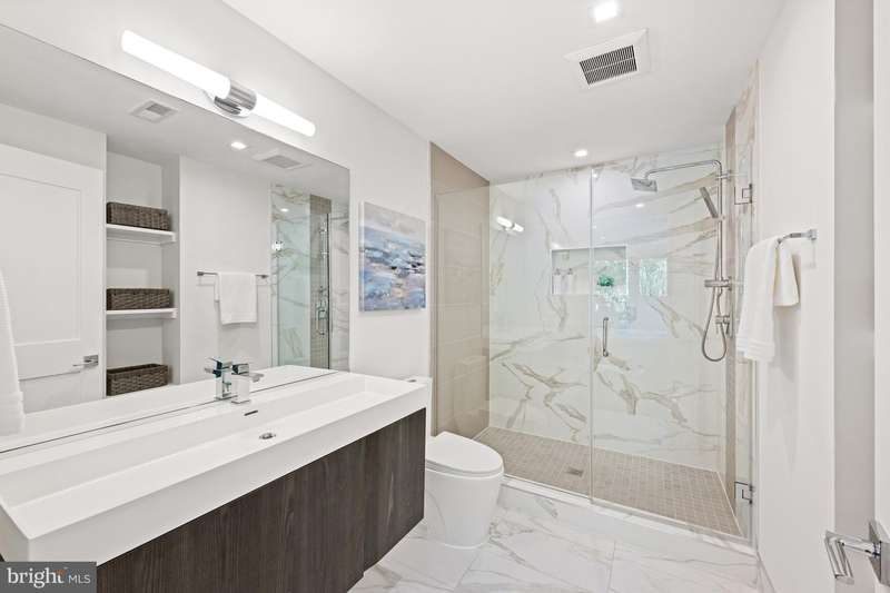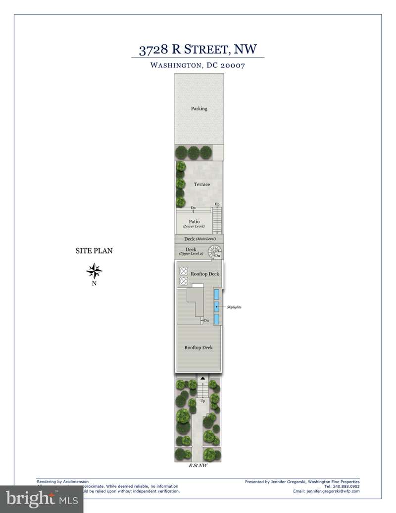 Located in the heart of Burleith, just one block from Georgetown University and minutes from Georgetowns shops and restaurants, 3728 R Street NW is a striking contemporary home offering 4 bedrooms and 4.5 bathrooms across four beautifully finished levels.Sunlight fills the home through large windows and skylights, highlighting the open layout and modern design. The main level features a sleek custom kitchen with JennAir and Bosch appliances, Porcelanosa cabinetry with integrated LED lighting, and a dramatic two-tier quartz island. A full wall of cabinetry in the dining area provides excellent storage while maintaining the homes clean, streamlined aesthetic.Upstairs, two spacious bedrooms each include their own full bath, along with a convenient laundry area. The top floor is devoted entirely to the primary suitea private retreat with two custom California Closets and a spa-inspired bathroom featuring heated floors, dual vanity, glass-enclosed shower, and soaking tub.The walk-out lower level offers flexible living space ideal for guests, an au pair, or entertaining, complete with a kitchenette, full bath, large bedroom, additional laundry, and direct access to the rear patio.Outdoor spaces are a true highlight, including a private flagstone patio separated from the parking area for two cars, multiple decks, and a rooftop terrace with sweeping city views.The sellers have made extensive updates, including a new roof and skylights, a Japanese garden with new fencing and landscaping, new Flagstone patio, California Closet systems, and custom shades throughout the home creating a fully turnkey, low-maintenance home.Some furniture may be available to convey, making the move-in process even easier for the next owner.3728 R Street NW blends modern architecture, abundant natural light, and exceptional walkability in one of Washingtons most desirable neighborhoods!