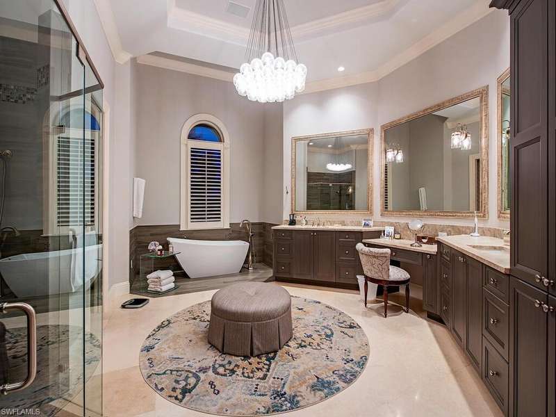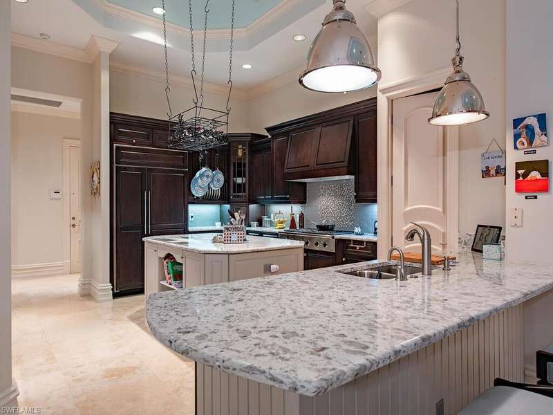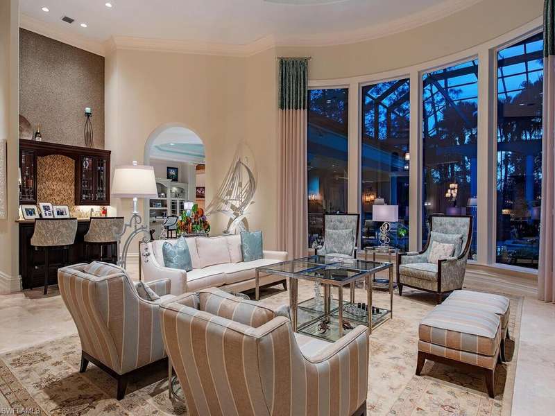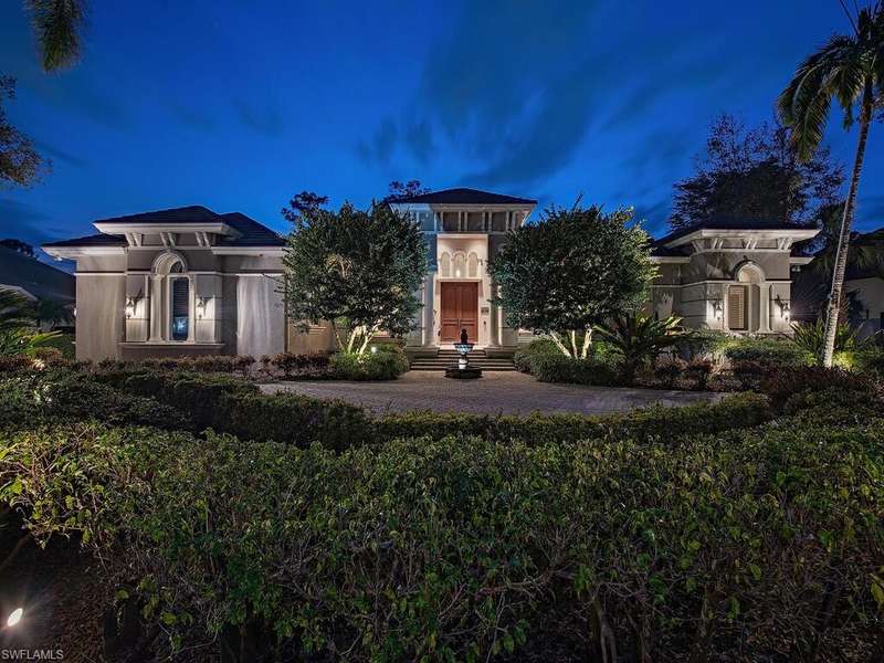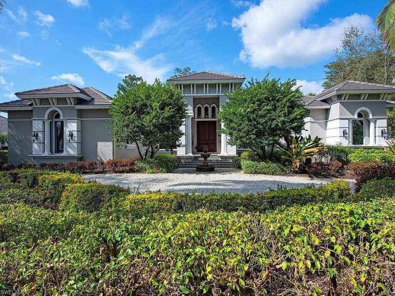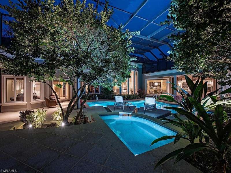 Welcome to Resort Style Living, Welcome to Grey Oaks! Experience luxury living at its finest in this beautifully designed home overlooking the first fairway of the Pine Course in the prestigious Grey Oaks community. This exceptional residence blends timeless elegance with modern comfort, offering expansive indoor and outdoor living spaces ideal for entertaining and relaxation. A striking pool and spa with cascading water features anchor the screened lanai, surrounded by lush landscaping for privacy. Zero-corner pocketing sliders open the living areas completely to the outdoors, creating seamless flow and stunning views from every angle. Inside, high ceilings, wide-plank flooring, and oversized windows fill the home with natural light. The formal dining area leads into a sophisticated living room with a gas fireplace perfect for gatherings or quiet evenings. The chef s kitchen is equipped with a Wolf gas cooktop, large center island, and breakfast bar, all open to a bright and spaci