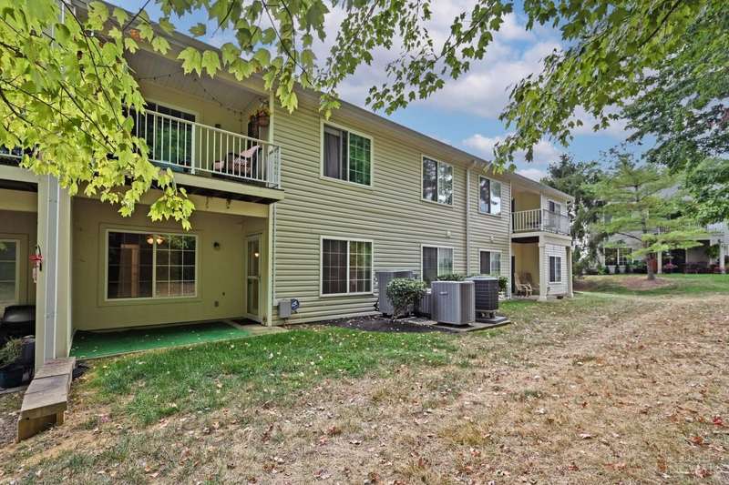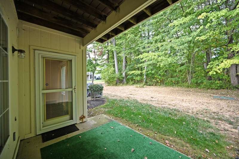 No steps! Ground level unit with private entry, backs up to woods with inside access to the garage! Family room walks out to the patio overlooking the trees. Vinyl flooring throughout and carpet in the primary suite. Walk in closet in the primary suite and an oversized shower. 2 beds 2 bath. Come see!