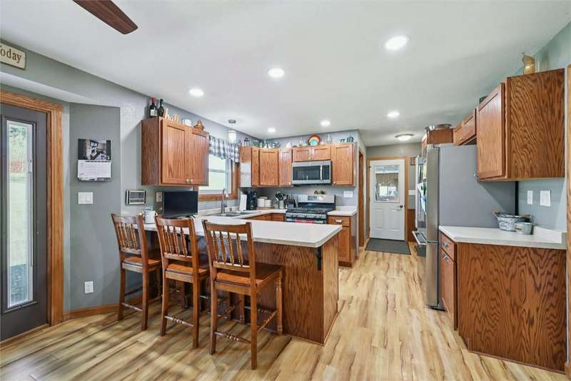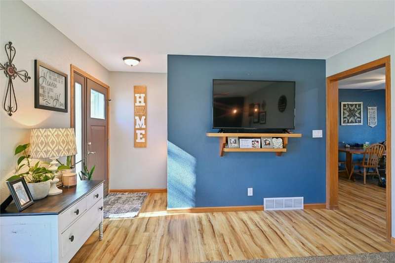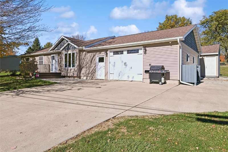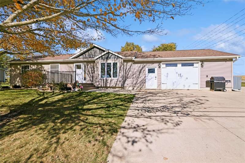 Main level living at this very nicely updated ranch thats right by the swimming pool, frisbee golf course and also super close to the junior/high school & elementary schools! 3 bedrooms, 2 full bathrooms, 1st floor laundry, VERY spacious attached garage, lots of parking spaces outside, 0.40 acre yard! Inviting living room w/ a wonderful south facing picture window, breakfast bar in the kitchen, ample space for a dining table, very classic style cabinetry in the kitchen, all appliances included. The hallway bathroom has a nice tiled shower w/ an extra wide and deep tub. So much has been done in the home! Siding & windows in 2021, roof 2023, gutters 2021, spray foam insulation in the crawl space, garage is 26 x 26 w/ new sheetrock & loft storage w/ dropdown ladder access! The home is hard wired w/ 3 security cameras & the seller is offering a one-year home warranty for a buyer! This one wont last long! Set up your showing today!!