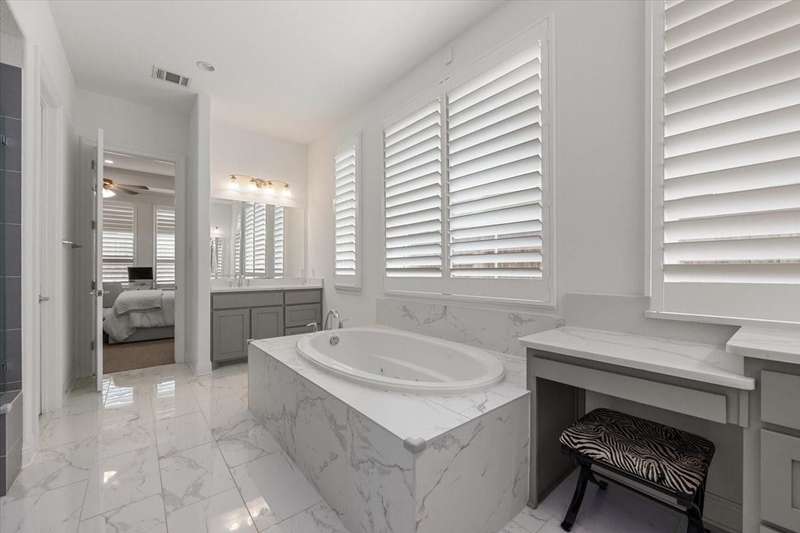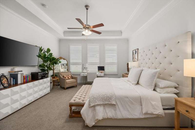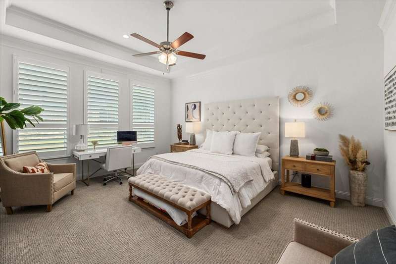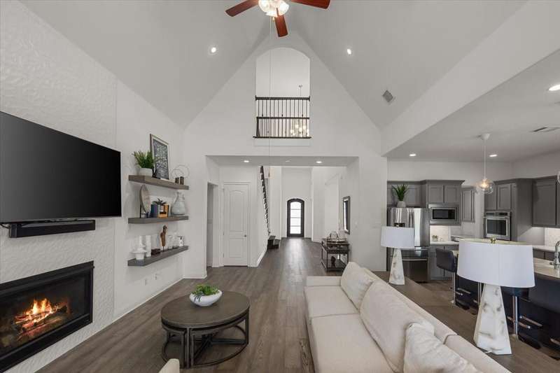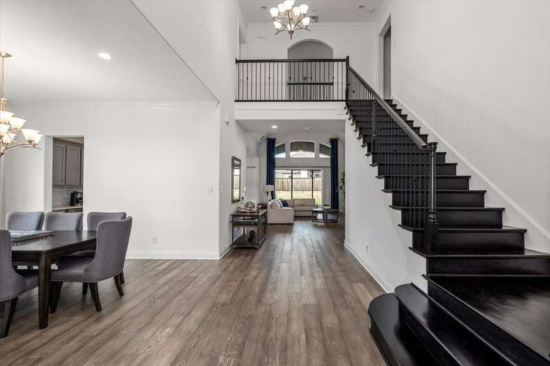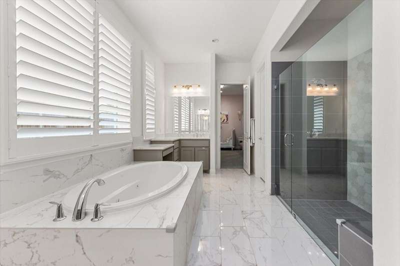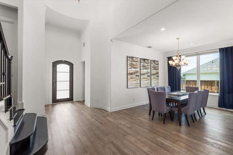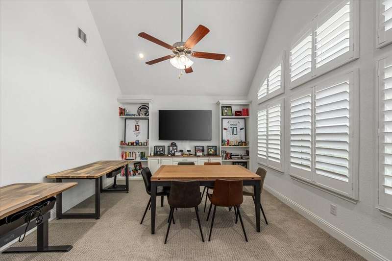 Stunning Toll Brothers home in Walsh Ranch featuring 4 bedrooms, 3.5 bathrooms, and multiple bonus spaces. Located within walking distance to the market, Walsh Elementary, and community amenities. The unique floor plan includes a large entry with soaring ceilings, an open living room with a 30+ ft ceiling and fireplace, and a chefs kitchen with an oversized island with seating for 6, walk-in pantry, bar area, and formal dining. The primary suite offers a sitting area, luxurious ensuite bathroom with dual vanities, makeup station, huge walk-in closet, and an attached flex roomideal for a nursery, office, or exercise room. Upstairs features two large bedrooms, two full baths, and a spacious media or game room. Glass sliders lead to a covered patio and an expansive backyard, perfect for entertaining or adding a pool. Plantation shutters throughout and automatic shades on first-floor windows. Enjoy Walsh Ranch amenities: high-speed internet, front yard maintenance, pool, parks, fitness center, basketball, tennis and pickleball courts, dog parks, trails, makerspace, gas station, market, and more.