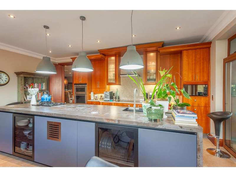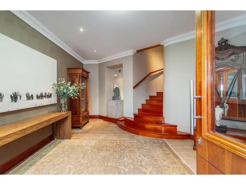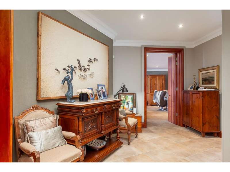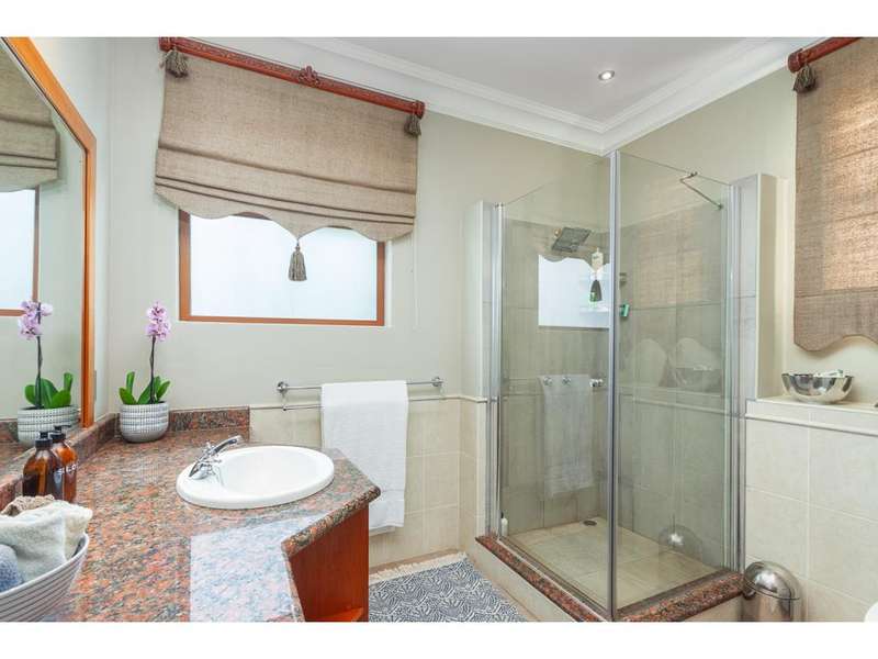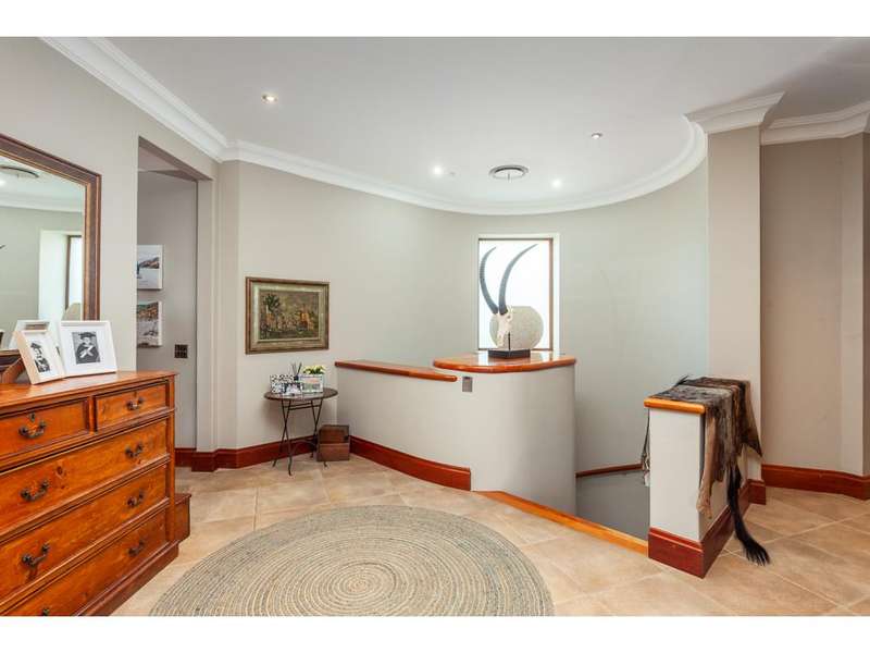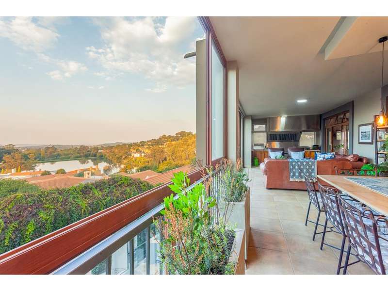 Iconic Waterkloof Village Villa with Spectacular Views EXCLUSIVE SOLE MANDATE This architectural multi-level masterpiece, expertly designed to encompass glorious north-facing views, is simply astounding. The spacious dining and TV/family area flows out to the impressive wrap-around enclosed patio (with built-in gas braai and extraction system), providing full access to the unimpeded panoramic views. An elegant lounge, also with access to the patio, lies alongside a beautifully fitted study. A stunning bespoke kitchen, with an eye-catching porcelain topped centre island, is an absolute delight. Generous cupboard space along with numerous work areas and a family friendly breakfast area at the picture window contribute to a wonderful cooking experience. Large separate scullery and laundry. On the upper level, the magnificent main bedroom has a gorgeous en-suite bathroom and a substantial dressing room. Three further bedrooms share two lovely bathrooms. The main plus 2 of the other bedrooms have access to a large open patio. Also on this level is a convenient hobby/playroom. The lower level comprises a double automated garage, covered parking for 4 vehicles, gym room with bathroom and extra storerooms. Lift provides convenient access to each level. Full solar system includes 21 monocrystalline panels, 3 x 8kW hybrid inverters and 5 x 5.5kW lithium-ion batteries. Whole house water treatment system with state-of-the-art filtration and a 1.1kW pressure pump. Holding tanks with a capacity of 7600 litres. Security ?Çô 11 Wired cameras backing up to a 4TB hard drive, wireless DSC alarm system with 13 PIRs and 6 outdoor beams. Underfloor heating throughout along with air-conditioners on the middle floor and a shaft air-conditioning system for the upper level. A wonderful opportunity to enjoy a fabulous lifestyle in one of Pretoria?ÇÖs premier estates.