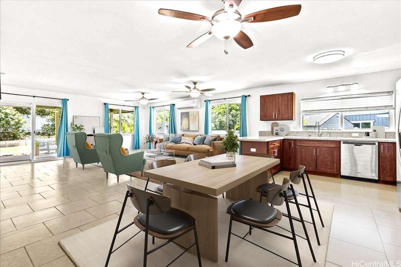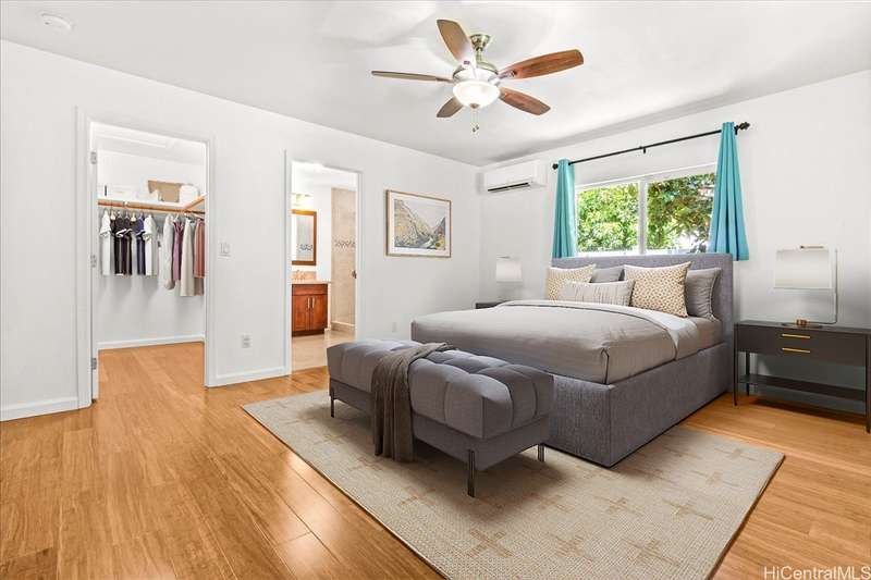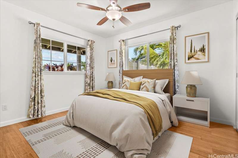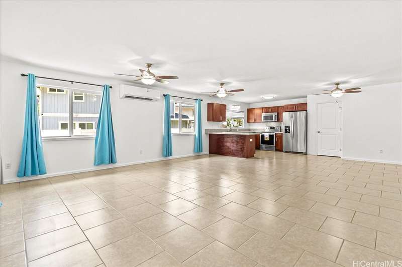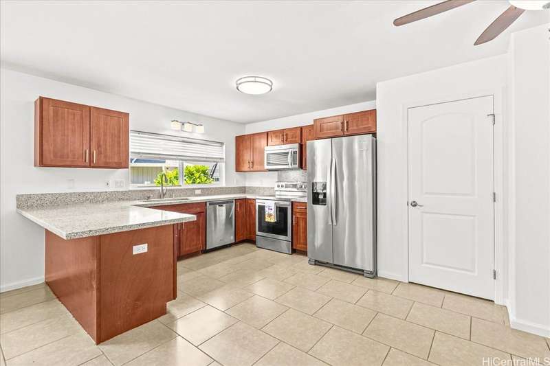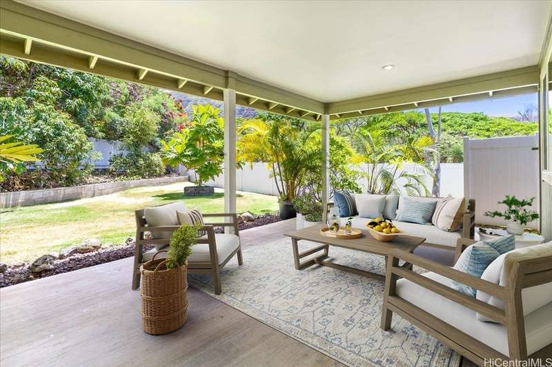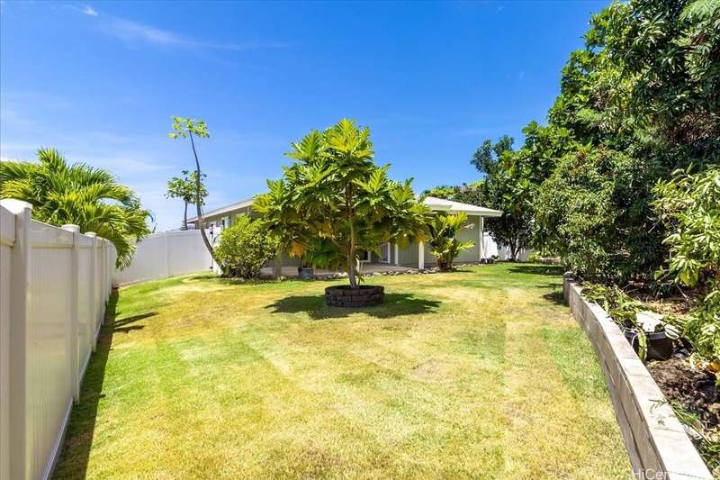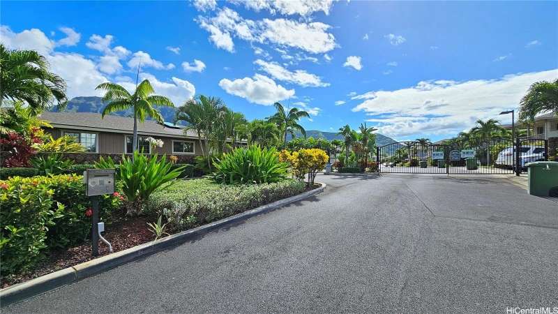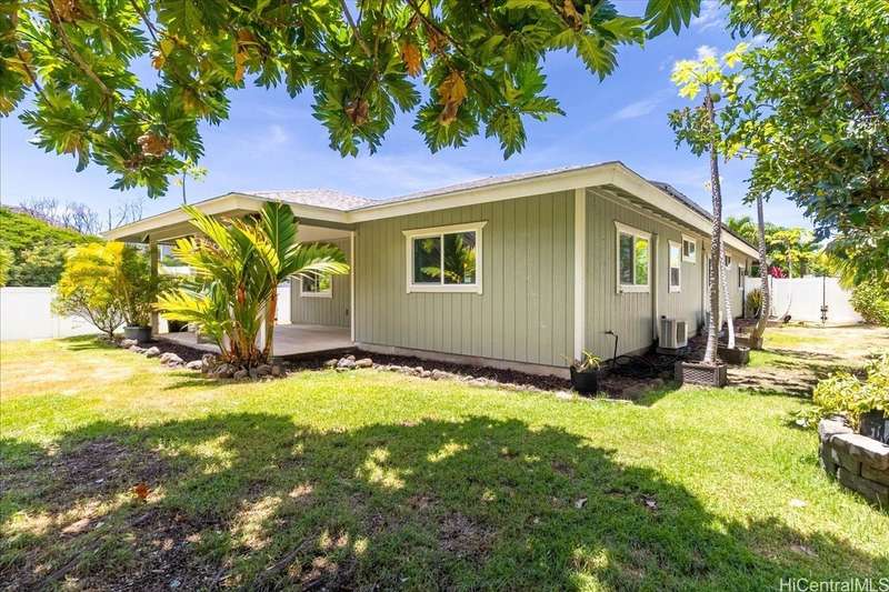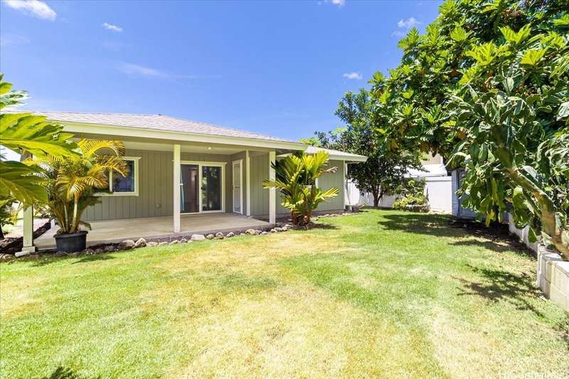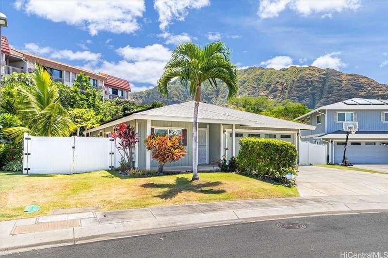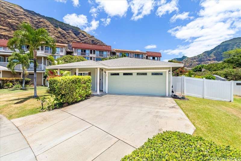 Welcome to the beautiful gated community of Makaha Oceanview Estates! Enjoy the serenity of island living with nicely maintained roads, lush landscaping, and breathtaking mountain and ocean views. This desired Malia model is located on an impressively large single-level of 8,475 sq ft with 3 bedrooms and 2 full bathrooms. The open-concept floor plan offers spacious living and dining areas, ceramic tile flooring, a gorgeous primary bedroom with large walk-in closet, covered patio, new interior paint, 424 sf enclosed 2-car garage, EV charger & Hydrawise sprinkler control system installed in 2020, fully fenced private backyard with abundant fruit trees. Solar heater & 19 lease Yingli solar PV panels. Pet friendly (verify). Additional guest parking is located nearby. Low maintenance fees. Located minutes from world famous Makaha Beach with crystal clear waters and world class surfing, snorkeling, whale watching, dreamy sunsets, and more. Makaha Valley Country Club and a resort championship golf course is right nearby. Great hiking trails, down the road from secluded Lahilahi Turtle Beach. This unique gated community of 76 homes offers ocean and island activities year-round.
