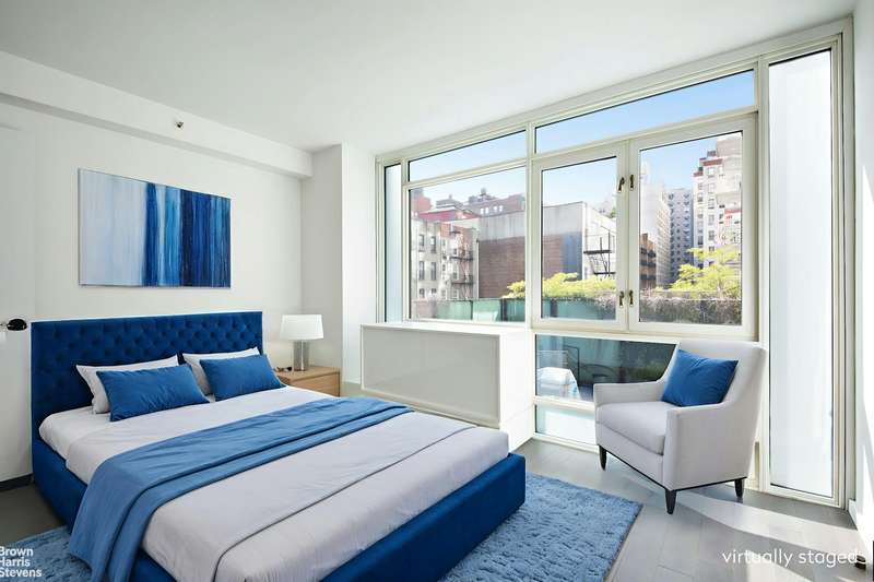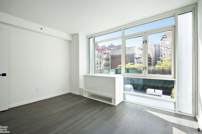 The building offers a full suite of amenities, including a 24-hour doorman, live-in super, private landscaped terrace, resident lounge, fitness centerand a large, landscaped roof terrace with panoramic views.